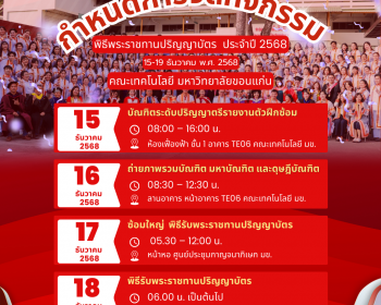 คณะเทคโนโลยี มหาวิทยาลัยขอนแก่น ขอประกาศข่าวดีสำหรับนักศึกษาที่สนใจสร้างอาชีพในประเทศญี่ปุ่น! เราร่วมมือกับ Global Edge Careers จัดโครงการฝึกอบรมภาษาญี่ปุ่นออนไลน์ เริ่มต้นในปี 2569 รายละเอียดโครงการ: โปรแกรมเรียนด้วยตนเอง N5 E-Try: กุมภาพันธ์ – เมษายน 2569 Online class (หลักสูตร A2/N4): สิงหาคม 2569 – พฤษภาคม 2570 ตารางเรียน: จันทร์และพฤหัสบดี เวลา 19:30-21:45 น.(online) สิทธิพิเศษ: โอกาสฝึกงานและทำงานในญี่ปุ่น สิ่งที่นักศึกษาต้องเตรียมตัว: นักศึกษาต้องอุทิศเวลาเรียนอย่างน้อย 2 ชั่วโมงต่อวันเป็นเวลา 90 วัน (รวมอย่างน้อย 180 ชั่วโมง) ในช่วงการเรียนด้วยตนเอง ผู้สมัครทุกคนจะต้องผ่านการสัมภาษณ์แบบตัวต่อตัวก่อนลงทะเบียน กำหนดส่งรายชื่อ: 12 มกราคม 2569 โครงการนี้เป็นโอกาสทองสำหรับนักศึกษาที่ฝันอยากทำงานในญี่ปุ่น นักศึกษาที่สนใจสามารถติดต่อสอบถามข้อมูลเพิ่มเติมและลงทะเบียนได้ที่หัวหน้าภาควิชา […]