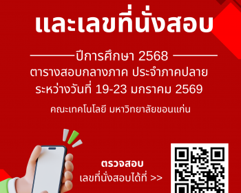 ขอเชิญผู้ประกอบการร้านค้าเข้าร่วมพิธีมอบเกียรติบัตร วันจันทร์ที่ 26 มกราคม พ.ศ. 2569 เวลา 13.00 – 15.00 น. ณ ห้องเฟื่องฟ้า คณะเทคโนโลยี มหาวิทยาลัยขอนแก่น