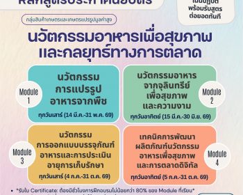 พลิกโฉมธุรกิจอาหารด้วยนวัตกรรม เปิดรับสมัครหลักสูตร Non-degree “นวัตกรรมอาหารเพื่อสุขภาพและกลยุทธ์ทางการตลาด” สาขาวิชาเทคโนโลยีการอาหาร ชวนคุณมาอัปเกรดทักษะสู่อุตสาหกรรมอาหารแห่งอนาคตกับหลักสูตรเน้นการเรียนแบบผสมผสาน (Hybrid Learning) ที่คุณจะได้ลงมือทำจริงจากโจทย์จริง รับคำปรึกษาจากผู้เชี่ยวชาญโดยตรง พร้อมปูพื้นฐานทฤษฎีสำคัญ ชวนมาเป็น “บัณฑิตพันธุ์ใหม่” ที่ตอบโจทย์โลกยุค 2026 เรียนรู้ครบวงจรตั้งแต่กระบวนการผลิตจนถึงการปั้นแบรนด์ให้ติดตลาด กับ 4 โมดูลเข้มข้น Module 1: นวัตกรรมการแปรรูปอาหารจากพืช (Plant-based Innovation) เทรนด์ Plant-based ที่ทั่วโลกต้องการ Module 2: จุลินทรีย์เพื่อสุขภาพและความงาม (Probiotics & Beauty Food) เจาะลึก Probiotics และ Beauty Food Module 3: การออกแบบบรรจุภัณฑ์และการยืดอายุการเก็บรักษา ยืดเวลาสดใหม่ เพิ่มมูลค่าด้วยดีไซน์ Module 4: เทคนิคการพัฒนาผลิตภัณฑ์และการตลาดดิจิทัล ปั้นไอเดียให้เป็นสินค้าที่ขายได้จริงบนโลกออนไลน์ สัมผัสประสบการณ์เรียนรู้ – เรียนบรรยายควบคู่การ ฝึกปฏิบัติจริงในห้องปฏิบัติการและโรงงานต้นแบบ […]