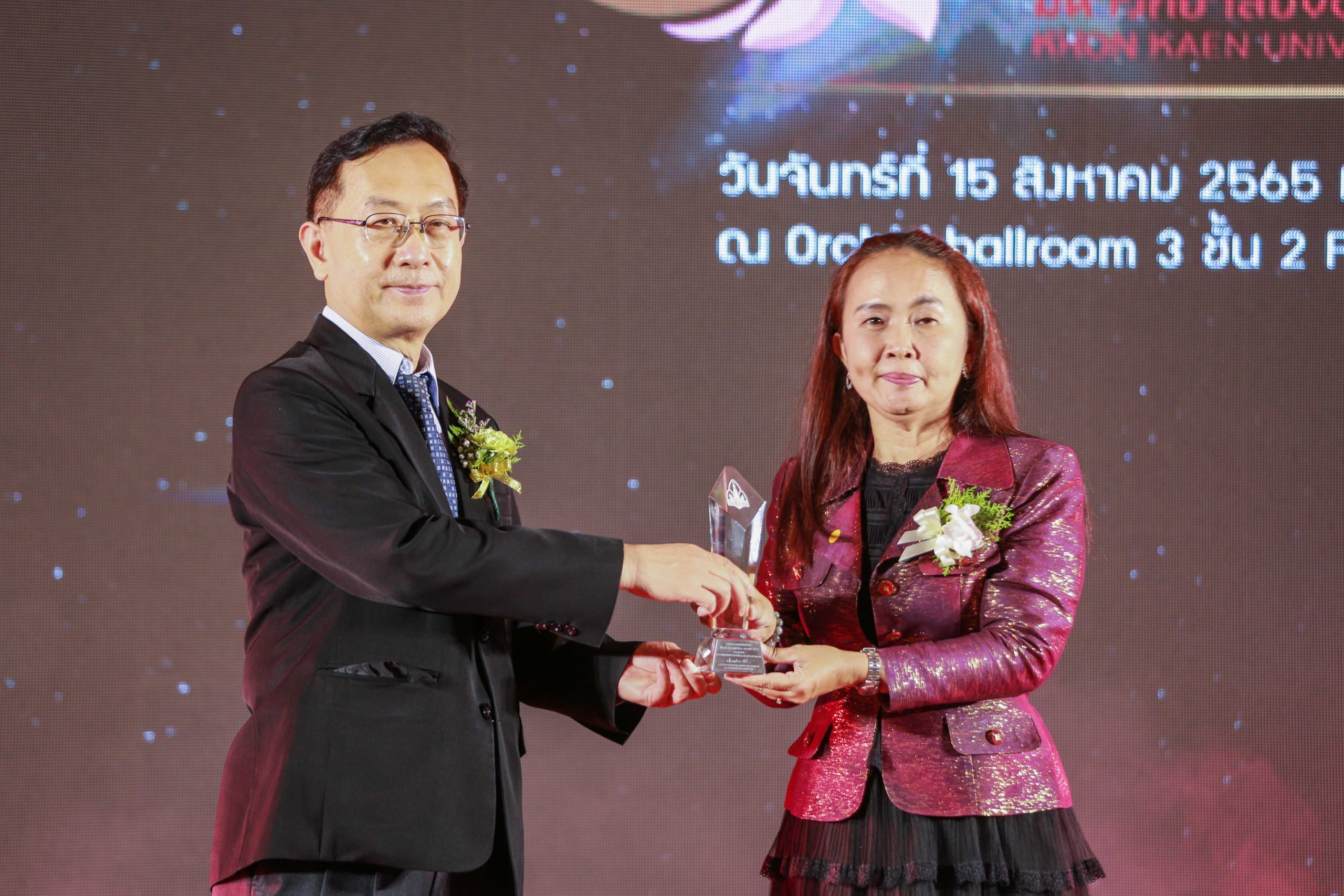 เมื่อวันจันทร์ที่ 15 สิงหาคม 2565 ฝ่ายวิจัย และ บริการวิชาการ โดยกองบริหารงานวิจัย มหาวิทยาลัยขอนแก่น จัดพิธีมอบรางวัลนักวิจัยดีเด่นและนักวิจัยเกียรติคุณสารสิน ประจำปี 2564 โดยมี ศ.มนต์ชัย ดวงจินดา รองอธิการบดีฝ่ายวิจัยและบัณฑิตศึกษา มหาวิทยาลัยขอนแก่น กล่าวรายงาน รศ. นพ. ชาญชัย พานทองวิริยะกุล อธิการบดีมหาวิทยาลัยขอนแก่น กล่าวเปิด ในการนี้ มีนักวิจัยที่ได้รับรางวัลเข้าร่วมพิธี ผู้บริหารมหาวิทยาลัย และ ผู้ร่วมแสดงความยินดี เข้าร่วมพิธีเป็นจำนวนมาก ณ ออคิดบอลรูม 3 ชั้น 2 โรงแรมพูลแมน ขอนแก่น โดย คณะเทคโนโลยี มีคณาจารย์ได้รับนักวิจัยดีเด่นและนักวิจัยเกียรติคุณสารสิน ประจำปี 2564 ในครั้งนี้ได้แก่ รองศาตราจารย์ผกาวดี แก้วกานเนตร รางวัลนักวิจัยดีเด่นระดับเงิน และ ศาสตราจารย์ลักขณา เหล่าไพบูลย์ รางวัลนักวิจัยดีเด่นระดับทอง