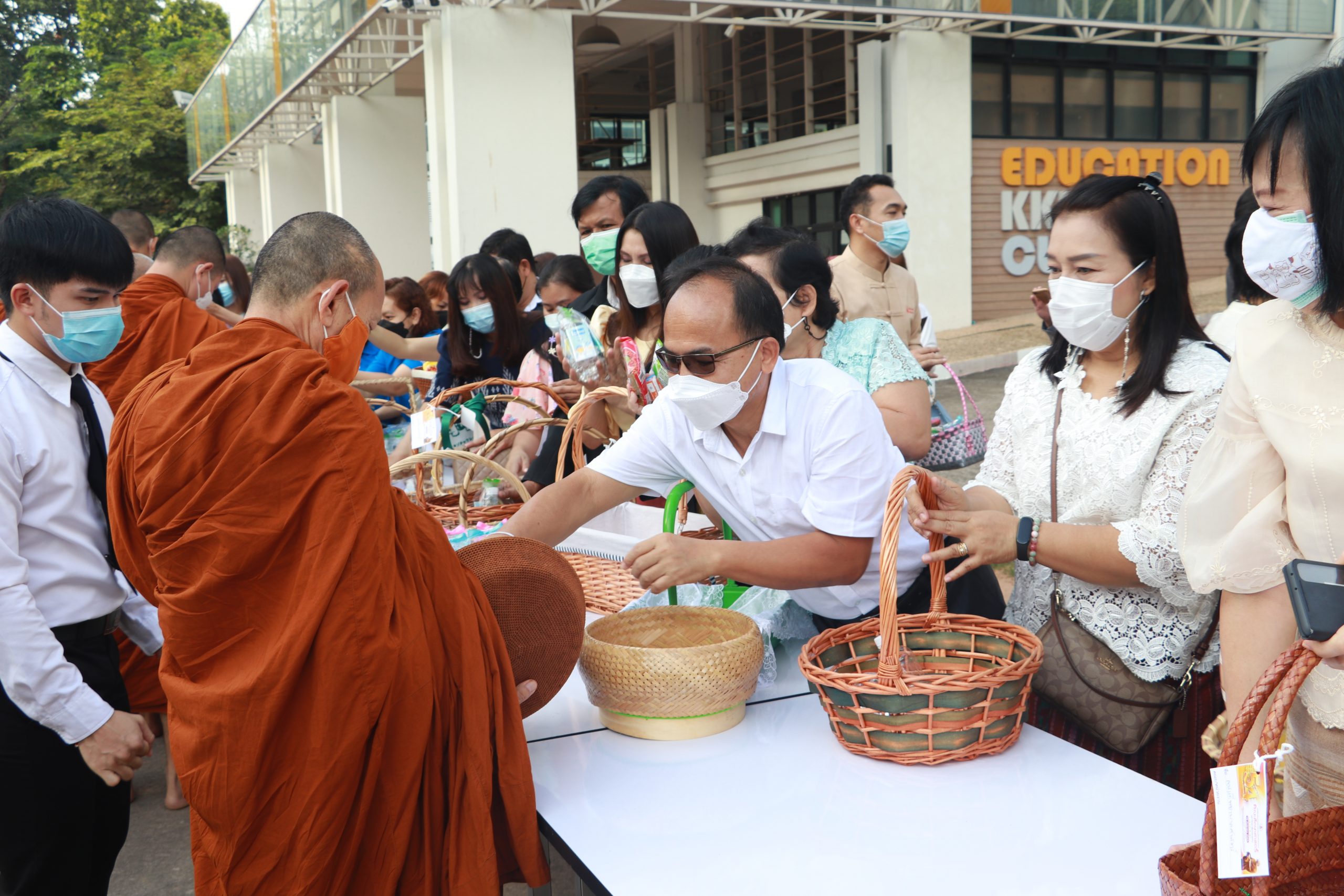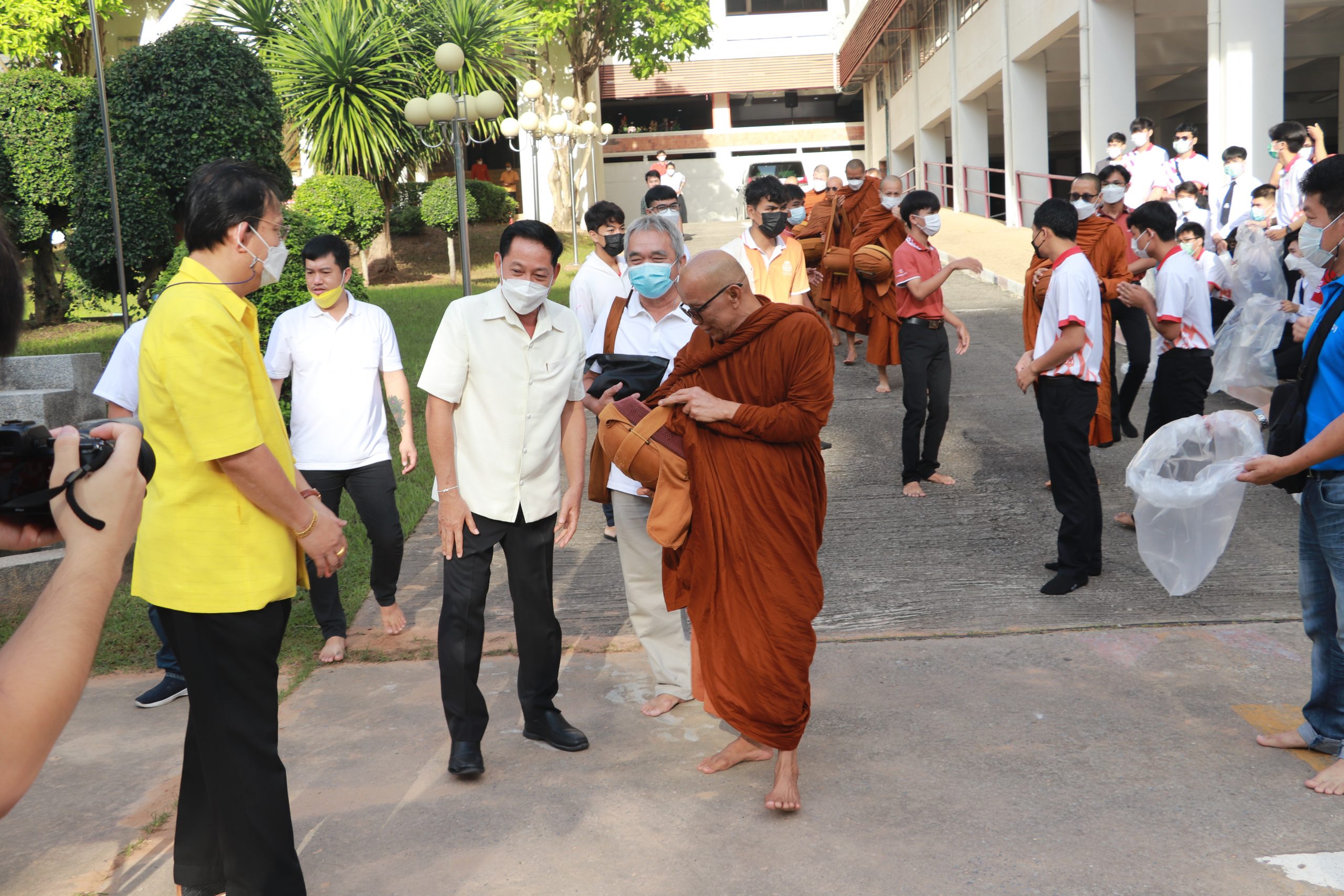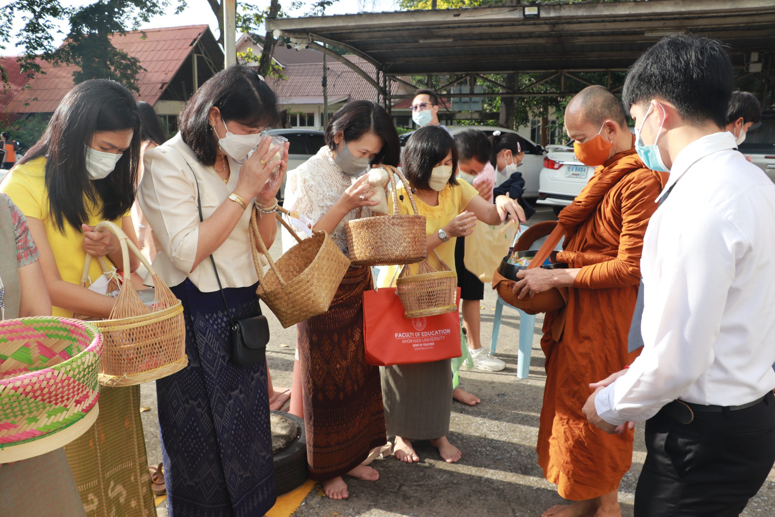 เมื่อวันจันทร์ที่ 19 กันยายน พ.ศ.2565 เวลา 07.00 น. โดย ผศ.ดร.อารยา เชาว์เรืองฤิทธิ์ คณบดีคณะเทคโนโลยี ผศ.นุศรา สุระโคตร รองคณบดีฝ่ายวิชาการและศิษย์เก่าสัมพันธ์ พร้อมด้วย บุคลากรคณะเทคโนโลยี เข้าร่วมแสดงความยินดีกับคณะศึกษาศาสตร์ เนื่องในโอกาสสถาปนา ครบรอบ 54 ปี ในการนี้ ผศ.ดร.อารยา เชาว์เรืองฤิทธิ์ คณบดีคณะเทคโนโลยี และ บุคลากรคณะเทคโนโลยี ได้เข้ามอบแจกันดอกไม้ กับ รศ.ดร.สุมาลี ชัยเจริญ คณบดีคณะศึกษาศาสตร์ เพื่อแสดงความยินดีและรับของที่ระลึกพร้อมถ่ายภาพร่วมกัน จากนั้น ได้ร่วมใส่บาตรเช้า โดยทางคณะศึกษาศาสตร์ได้นิมนต์ หลวงพ่อสายทอง เตชะธัมโม และพระภิกษุสงฆ์ จำนวน 7 รูป จากวัดป่าห้วยกุ่ม อ.เกษตรสมบูรณ์ จ.ชัยภูมิ (บริเวณลานจอดรถหน้าคณะศึกษาศาสตร์)