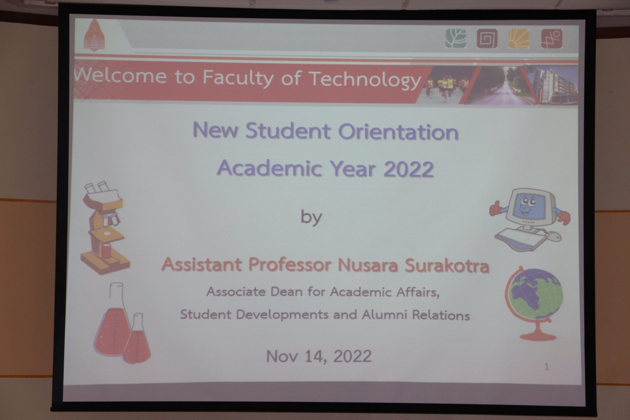 เมื่อวันจันทร์ที่ 14 พฤศจิกายน พ.ศ.2565 เวลา 13.05 น. โดย ผศ.ดร.อารยา เชาว์เรืองฤทธิ์ คณบดีคณะเทคโนโลยี ผศ.นุศรา สุระโคตร รองคณบดีฝ่ายวิชาการ พัฒนานักศึกษาและศิษย์เก่าสัมพันธ์ คุณพัชรี พงศ์พัสนันท์ นักวิชาการศึกษา ชำนาญการ คุณรสรินทร์ บางใบ นักวิชาการศึกษา ปฏิบัติการ พร้อมด้วย คณาจารย์ประจำหลักสูตรสาขาวิชา และ นักศึกษาระดับบัณฑิตศึกษา เข้าร่วมกิจกรรมปฐมนิเทศนักศึกษาใหม่ระดับบัณฑิตศึกษา ในการนี้ ผศ.ดร.อารยา เชาว์เรืองฤทธิ์ คณบดีคณะเทคโนโลยี ได้ให้โอวาทการสำเร็จการศึกษาตามแผนการเรียนและความพากเพียร ความอดทน ความพยายาม เพื่อให้ได้มาในการสำเร็จการศึกษา หลังจาก ผศ.นุศรา สุระโคตร รองคณบดีฝ่ายวิชาการและศิษย์เก่าสัมพันธ์ ได้แนะนำข้อมูลเกี่ยวกับการศึกษา การติดต่อประสานงานกับงานสนับสนุนวิชาการ การตีพิมพ์วารสาร และ งานสนับสนุนการวิจัยและบริการวิชาการ เพื่อให้นักศึกษาสามารถติดต่อประสานงานเป็นไปตามลำดับที่ถูกต้อง