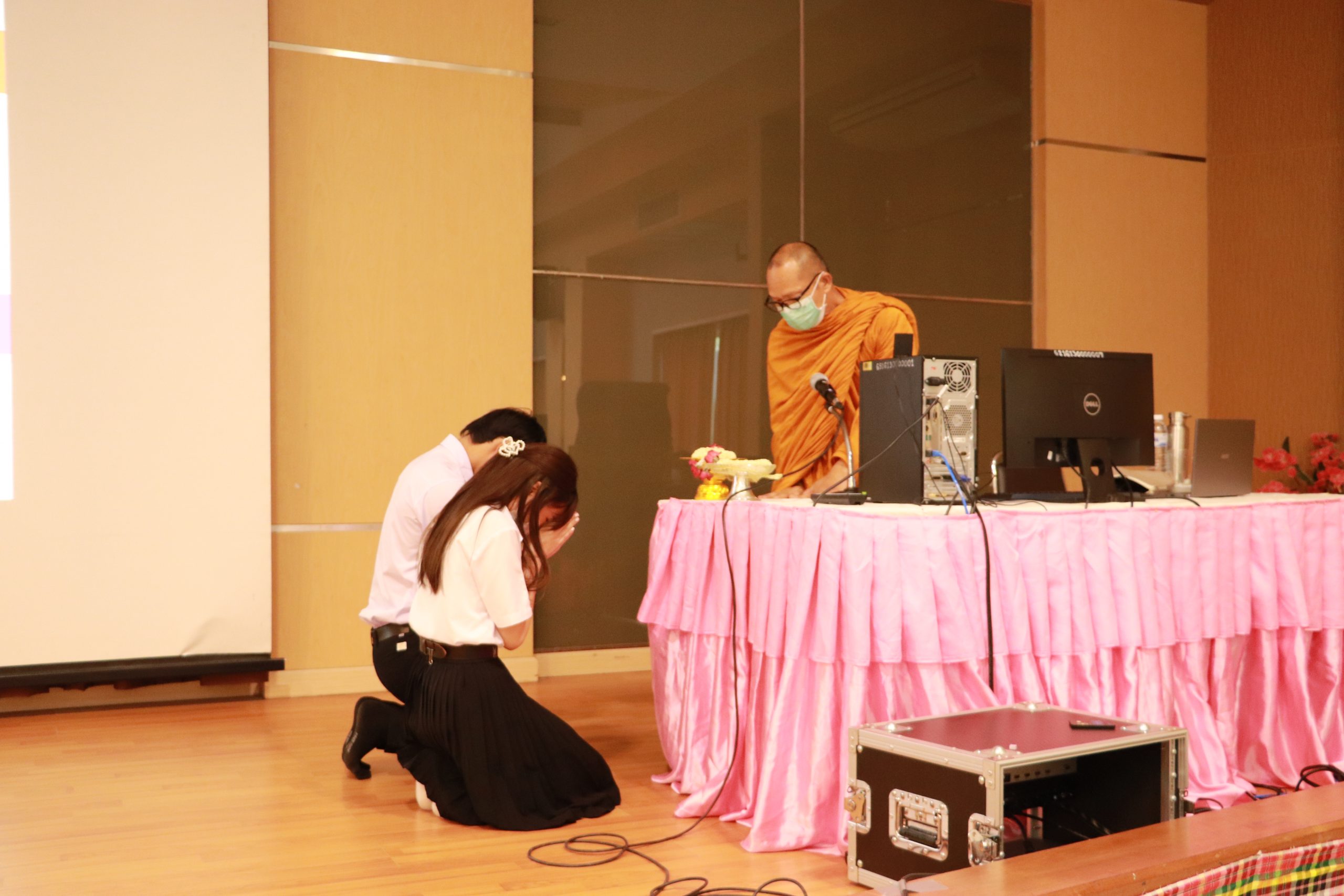 วันพฤหัสบดที่ 19 มกราคม พ.ศ.2566 เวลา 13.00 น. นำโดย ผศ.ดร.อารยา เชาว์เรืองฤทธิ์ คณบดีคณะเทคโนโลยี มข พร้อมด้วยศิษยนุศิษย์และสาธุชน นักศึกษาคณะเทคโนโลยี มข. ร่วมถวายการต้อนรับและฟังธรรมะบรรยาย จาก พระราชปัญญาวชิโรดม, ดร. เจ้าคณะอำเภอจอมทอง (ธ) เจ้าอาวาสวัดเทพเจติยาจารย์ อ.จอมทอง จ.เชียงใหม่ สถาบันพลังจิตตานุภาพ สาขา ๗๘ มหาวิทยาลัยขอนแก่นร่วมกับรายวิชาสามาธิเพื่อพัฒนาชีวิต สำนักวิชาศึกษาทั่วไป มหาวิทยาลัยขอนแก่น ในการนี้ได้ธรรมะบรรยายและการฝึกสมาธิ ณ ห้องเฟื่องฟ้า คณะเทคโนโลยี มข.