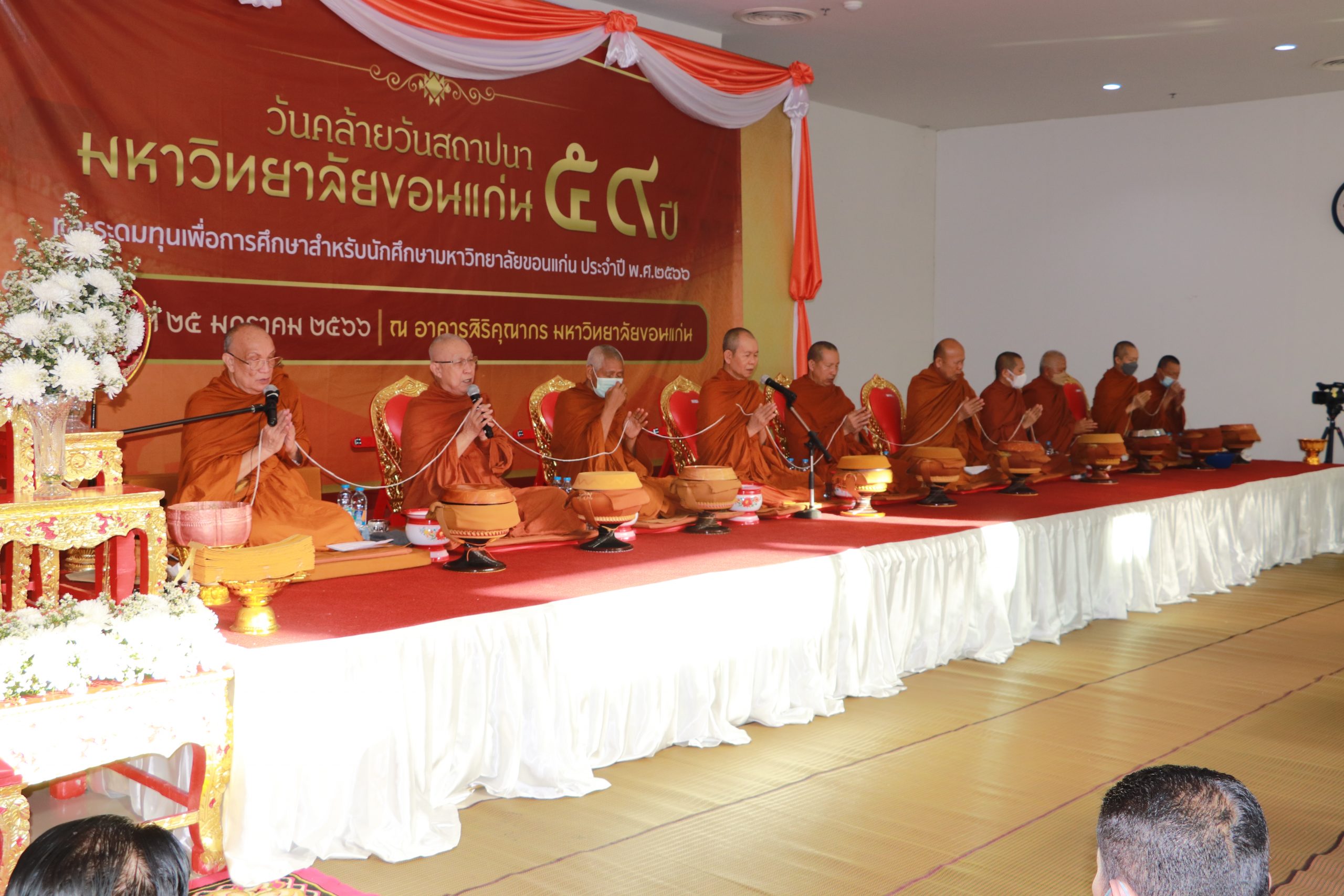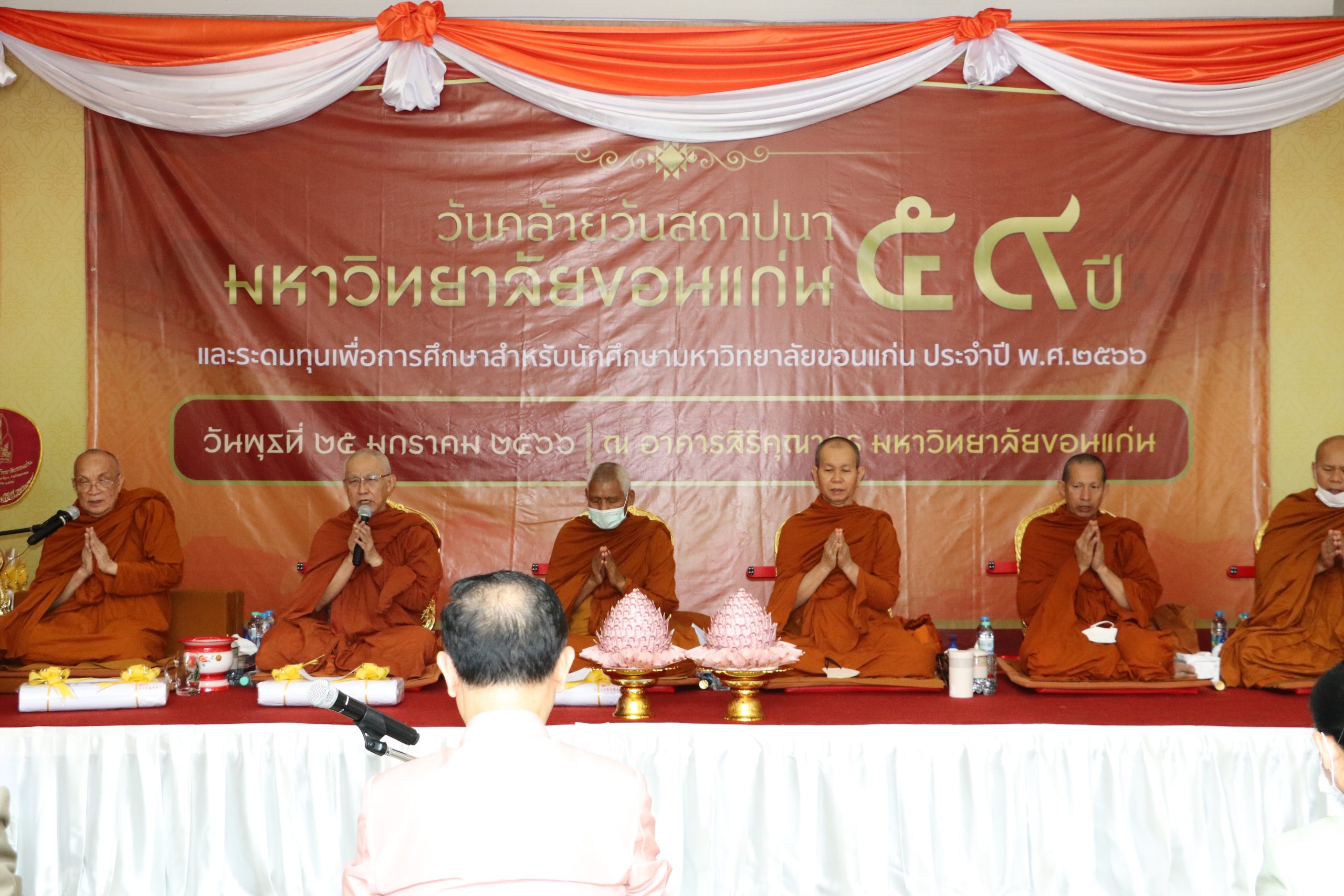 เมื่อวันพุธที่ 25 มกราคม พ.ศ.2566 เวลา 07.00 น. โดย ผศ.ดร.อารยา เชาว์เรืองฤทธิ์ คณบดีคณะเทคโนโลยี มข. พร้อมด้วย ผศ.นุศรา สุระโคตร รองคณบดีฝ่ายวิชาการ พัฒนานักศึกษาและศิษย์เก่าสัมพันธ์ และบุคลากรคณะเทคโนโลยี มข. เข้าร่วมงานวันคล้ายสถาปนามหาวิทยาลัยขอนแก่น 59 ปี ทำบุญตักบาตรและเจริญพระพุทธมนต์ ณ อาคารสิริคุณากร มหาวิทยาลัยขอนแก่น พร้อมพิธีทอดผ้าป่าสำหรับทุนการศึกษา ณ โถงชั้น 1 อาคารสิริคุณากรโดยมีรายนามพระสงฆ์ และได้ทำโรงทานของคณะเทคโนโลยี มข. ณ บริเวรสะพานขาว (ข้างสระพลาสติก) เพื่อให้บุคคลทั่วไปได้รับประทานอาหารและเครื่องดื่มที่มาร่วมงานในครั้งนี้