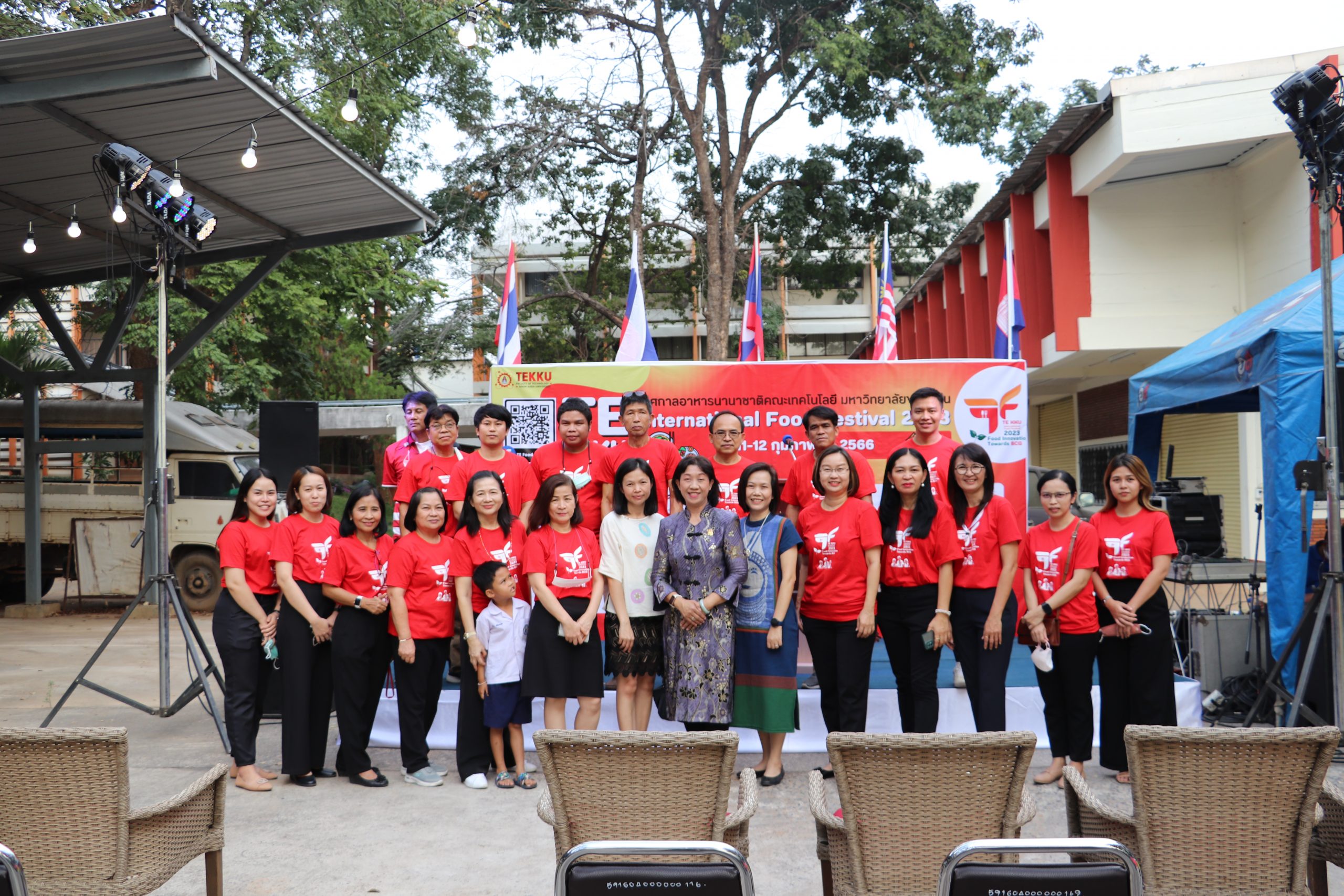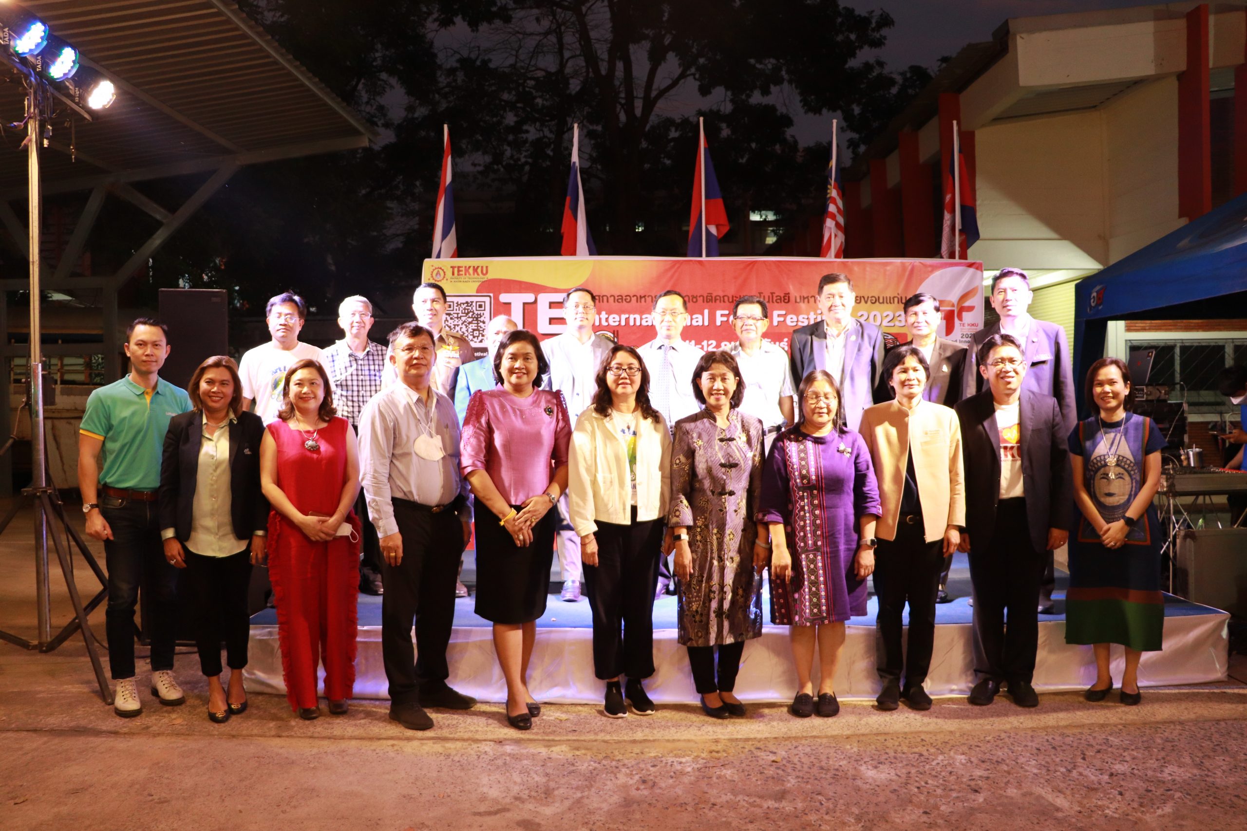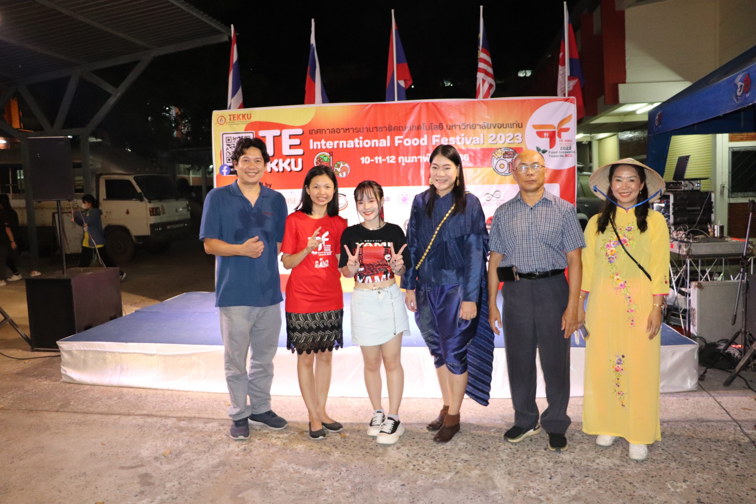 เมื่อวันศุกร์ที่ 10 กุมภาพันธ์ 2566 เวลา 17.30 น. นำโดย ผศ.ดร.อารยา เชาว์เรืองฤทธิ์ คณบดีคณะเทคโนโลยี มข. พร้อมด้วย ผศ.นุศรา สุรโคตระ รองคณบดีฝ่ายวิชาการ พัฒนานักศึกษาและศิษย์เก่าสัมพันธ์ ศ.ดร.อลิศรา เรืองแสง รองคณบดีฝ่ายวิจัย และวิเทศสัมพันธ์ ผศ.ดร.อัมพร แซ่เอียว รองคณบดีฝ่ายบริการวิชาการและนวัตกรรมเพื่อสังคม อาจารย์ ณัฐวุฒิ หอมทอง ผู้ช่วยคณบดีฝ่ายดิจิทัลและประกันคุณภาพ คณาจารย์และบุคลากรคณะเทคโนโลยี มข. ร่วมกันจัดงาน TE KKU Internationl Food Festival 2023 ในการนี้ได้รับเกียรติจาก รศ.นพ.ชาญชัย พานทองวิริยะกุล อธิการบดีมหาวิทยาลัยขอนแก่น เป็นประธานในงาน