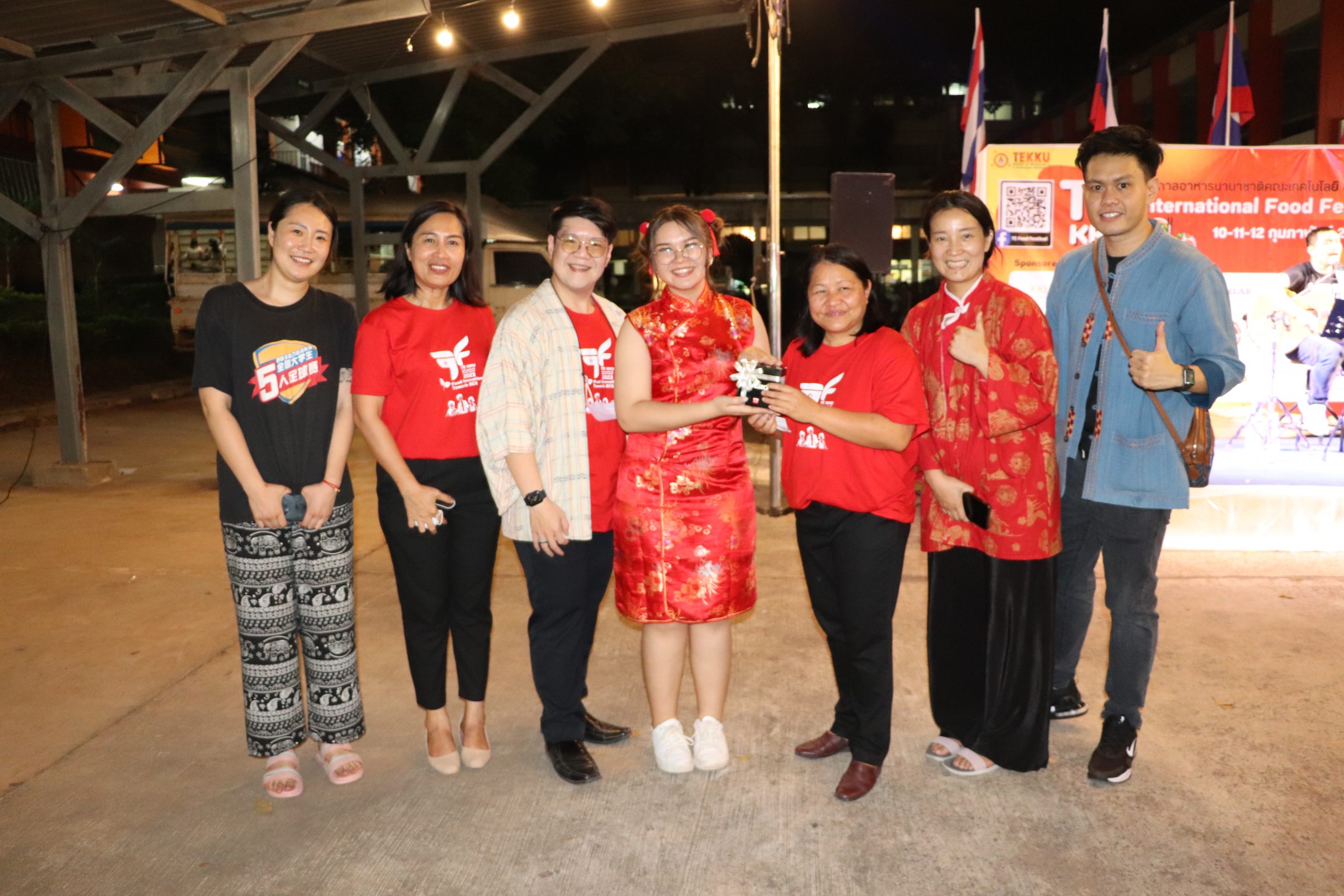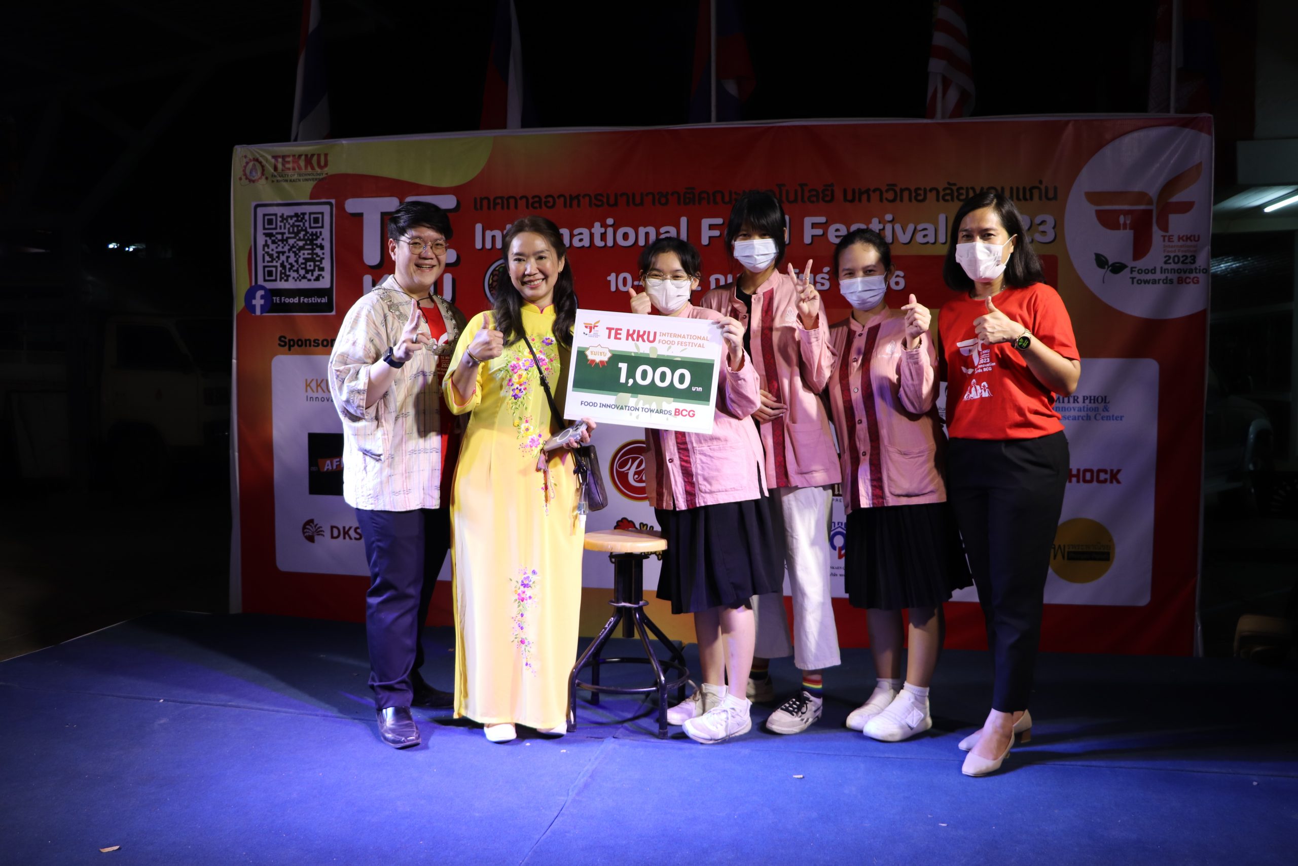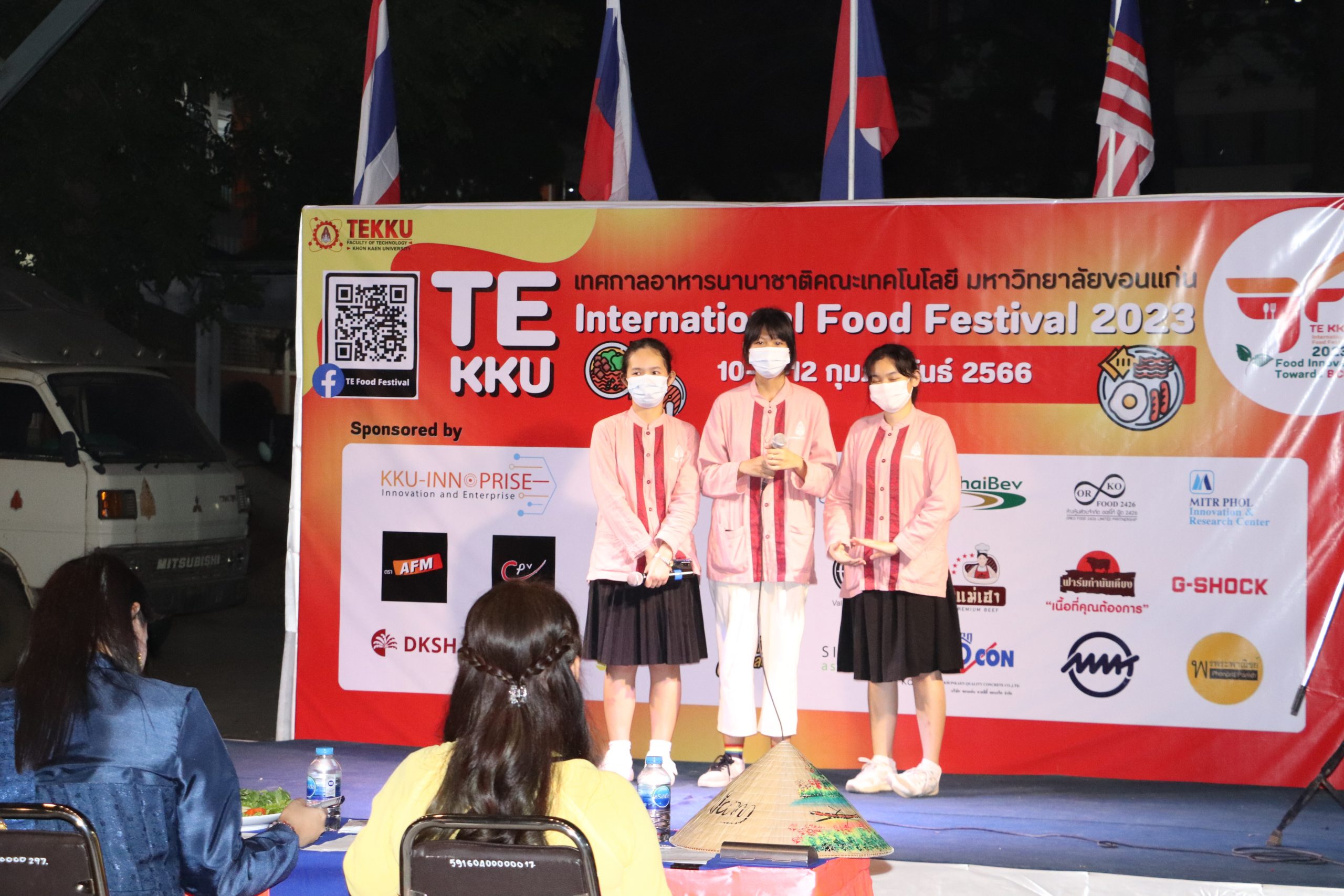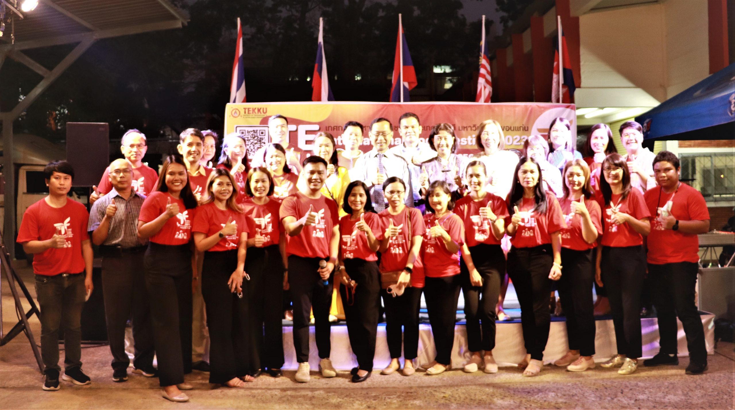เมื่อวันศุกร์ที่ 10 กุมภาพันธ์ 2566 เวลา 17.30 น. นำโดย ผศ.ดร.อารยา เชาว์เรืองฤทธิ์ คณบดีคณะเทคโนโลยี มข. พร้อมด้วย ผศ.นุศรา สุรโคตระ รองคณบดีฝ่ายวิชาการ พัฒนานักศึกษาและศิษย์เก่าสัมพันธ์ ศ.ดร.อลิศรา เรืองแสง รองคณบดีฝ่ายวิจัย และวิเทศสัมพันธ์ ผศ.ดร.อัมพร แซ่เอียว รองคณบดีฝ่ายบริการวิชาการและนวัตกรรมเพื่อสังคม อาจารย์ ณัฐวุฒิ หอมทอง ผู้ช่วยคณบดีฝ่ายดิจิทัลและประกันคุณภาพ คณาจารย์และบุคลากรคณะเทคโนโลยี มข. ร่วมกันจัดงาน TE KKU Internationl Food Festival 2023 ในการนี้ได้รับเกียรติจาก รศ.นพ.ชาญชัย พานทองวิริยะกุล อธิการบดีมหาวิทยาลัยขอนแก่น เป็นประธานในงาน