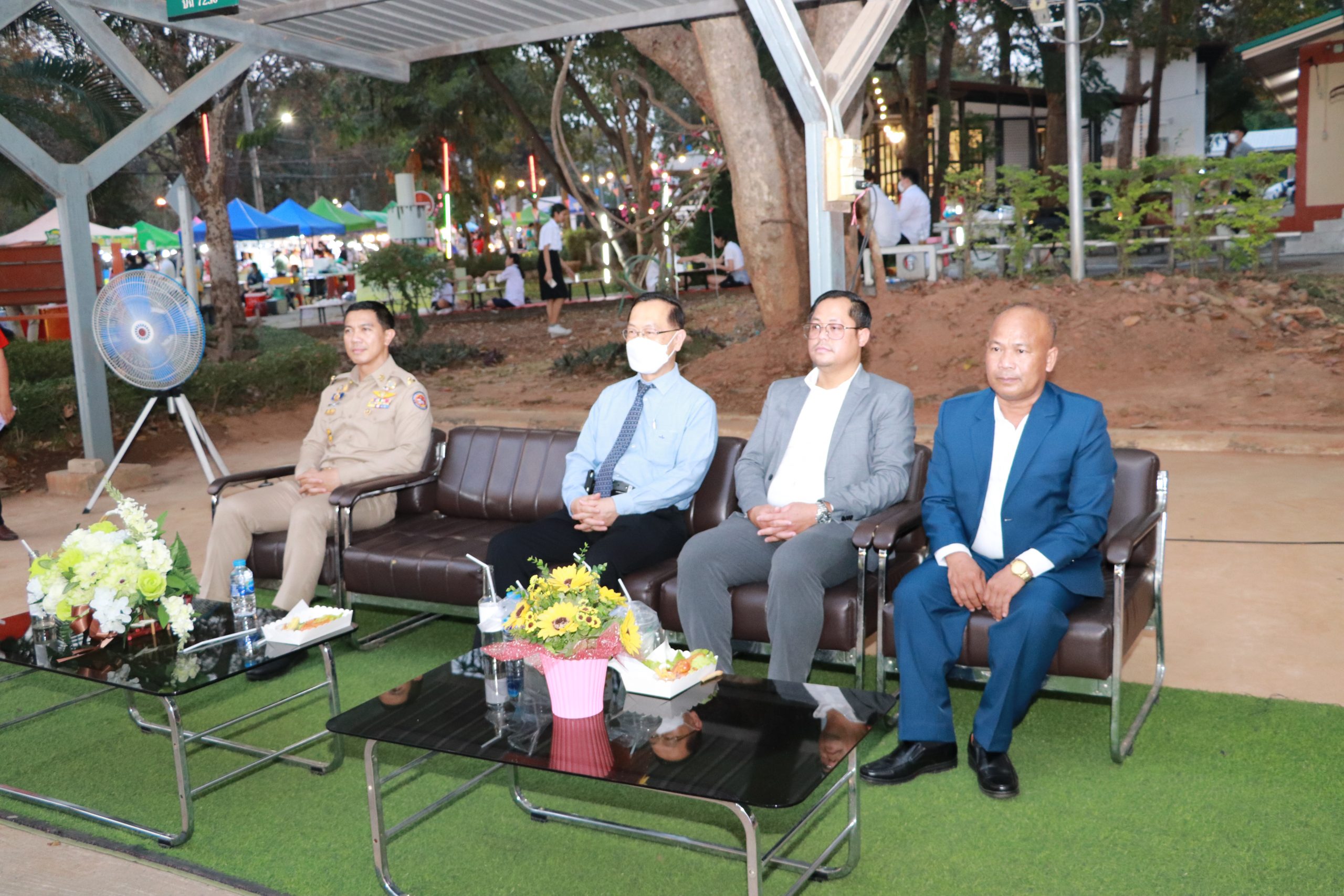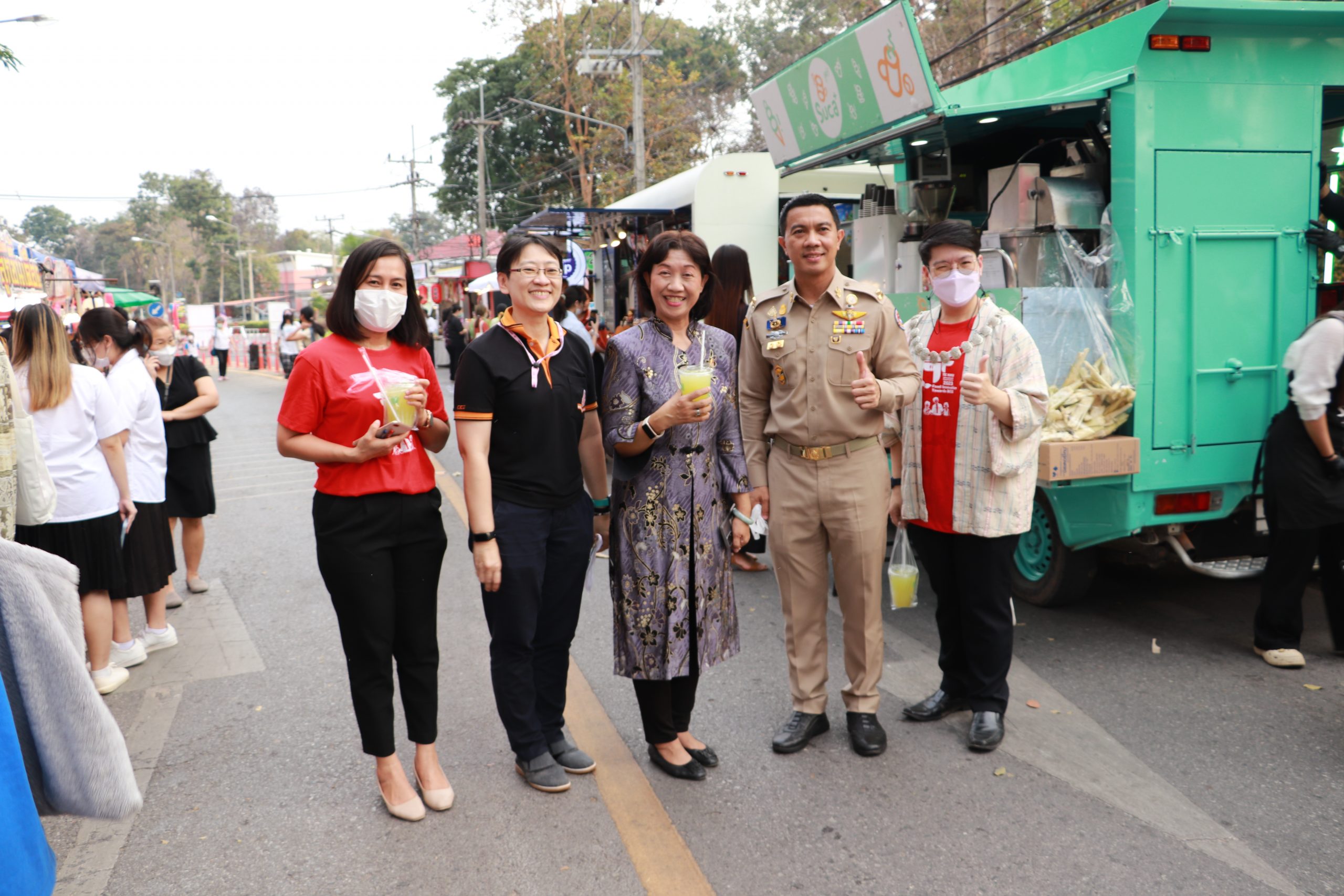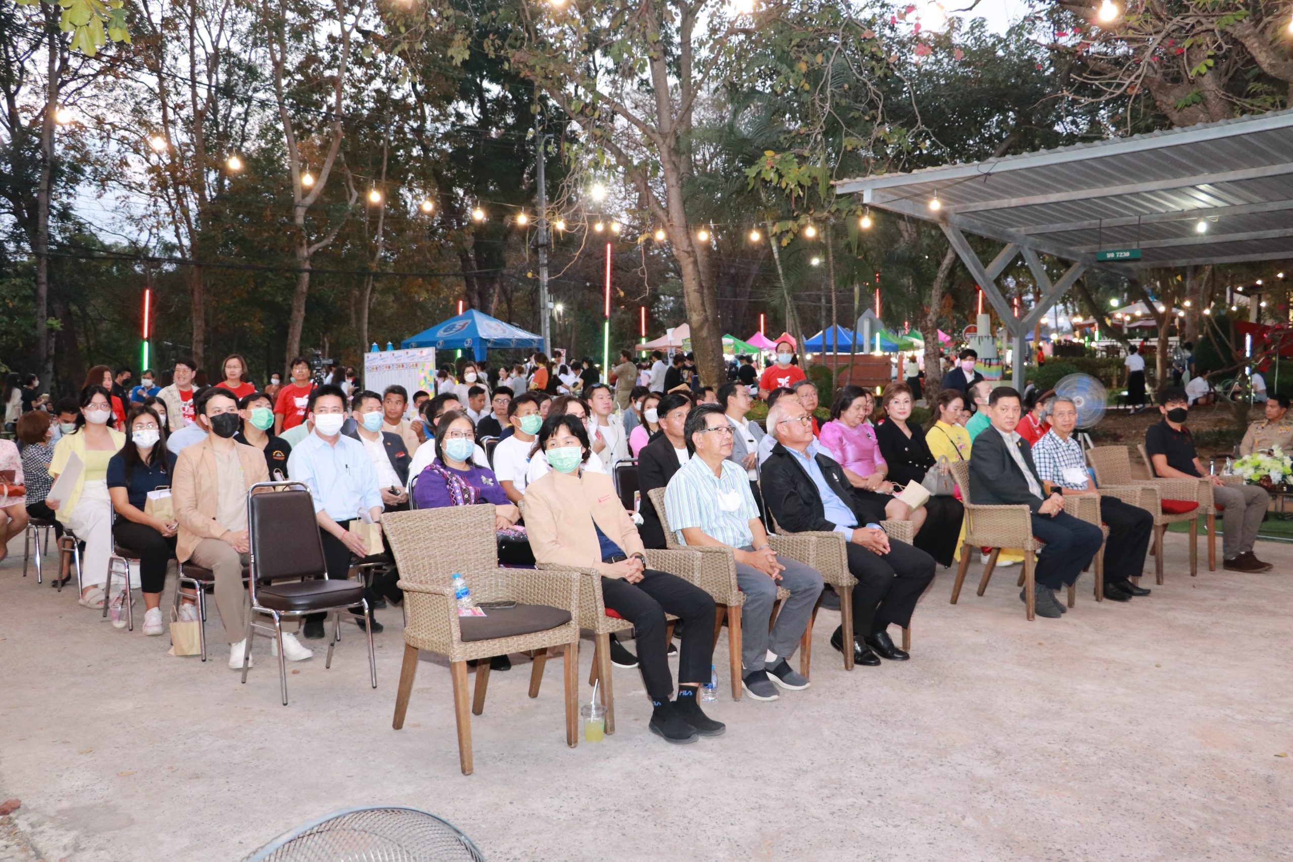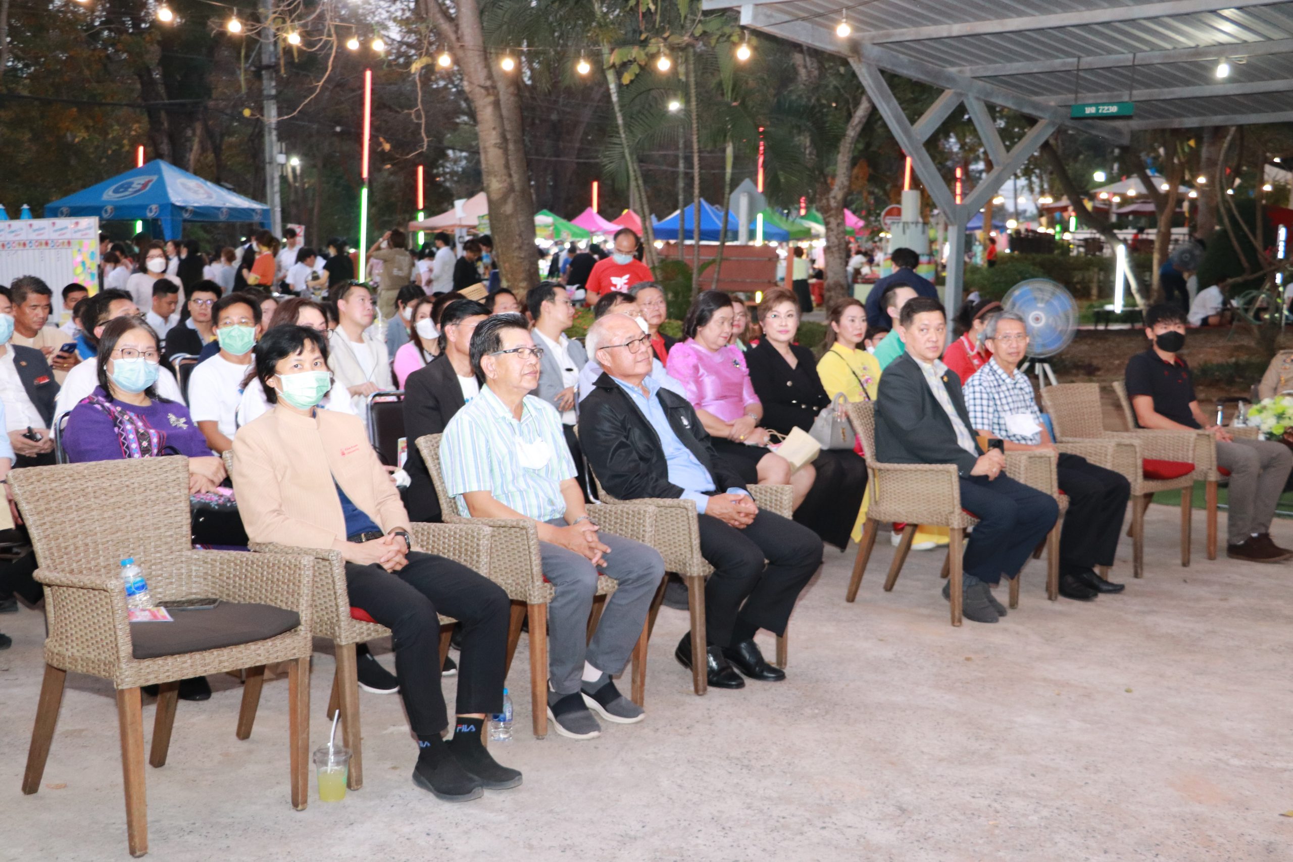 และแขกผู้เกียรติ ท่านวงพะจัน สุวรรณรังสี รองกงสุลใหญ่แห่งสาธารณรัฐประชาธิปไตยประชาชนลาว ประจำจังหวัดขอนแก่น ท่านบุนเนือง เกดแก้ว รองกงสุลใหญ่แห่งสาธารณรัฐประชาธิปไตยประชาชนลาว ประจำจังหวัดขอนแก่น นายสุกิจ ศิรินรกุล ประธานคณะกรรมการส่งเสริมกิจการมหาวิทยาลัย นายเฉลิมชัย วงษ์นาคเพ็ชร์ ที่ปรึกษาคณะกรรมการส่งเสริมกิจการมหาวิทยาลัย ดร.ทวีสันต์ วิชัยวงษ์ ประธานสภาอุตสาหกรรมจังหวัดขอนแก่น รองศาสตราจารย์สุภาพ ณ นคร สถาบันการสอนวิชาศึกษาทั่วไป มหาวิทยาลัยขอนแก่น คุณเปรม ทรัพย์บุญเลิศมา ผู้จัดการแผนกสนับสนุนและพัฒนาชุมชนโลตัสภาคตะวันออกเฉียงเหนือ(ช่วยปฏิบัติงานสำนักงานใหญ่) ศ.ดร.ธิดารัตน์ บุญมาศ รองอธิการบดีฝ่ายนวัตกรรมและวิสาหกิจ มข. ผศ.ณัฐพัชญ์ อนันต์ธีระกุล ผู้ช่วยอธิการบดีฝ่ายการศึกษาและบริการวิชาการ มข. ผศ.ดร.สมพงษ์ สิทธิพรหม ผู้ช่วยอธิการบดีฝ่ายความรักษาความปลอดภัย มข. รศ.เพียรศักดิ์ ภักดี รองอธิการบดีฝ่ายพัฒนานักศึกษาและศิษย์เก่าสัมพันธ์ มข. ผศ.ดร.อัจฉราวรรณ โตภาคงาม ผู้ช่วยอธิการบดีฝ่ายต่างประเทศ มข. รศ.ดร.รัชพล สันติวรากร คณบดีคณะวิศวกรรมศาสตร์ มข. รศ.ดร.ชูพงษ์ ทองคำสมุทร คณบดีสถาปัตยกรรม มข. รศ.ดร.สิทธิภัทร เชี่ยวชาญวัฒนา คณบดีวิทยาลัยการคอมพิวเตอร์ มข. ศ.ดร.วงศา เล้าหศิริวงศ์ คณบดีสาธารณสุขศาสตร์ มข. ผศ.ดร.สิริมนพร ทิพสิงห์ คณบดีวิทยาลัยนานาชาติ มข. ดร.ศักดิ์ชัย เจริญศิริพรกลุ คณบดีวิทยาลัยบัณฑิตวิทยาลัยการจัดการ มข. ผศ.ดร.ปิยวัฒน์ สายพันธุ์ ผู้อำนวยการบริหารและพัฒนาวิชาการ มข. และอาจารย์บุคลากรเกษียณอายุ ผศ.ดร. วิชัย ลีลาวัชรมาศ รศ.สิรินดา ยุ่นฉลาด พร้อมด้วยสื่อมวลชนที่ได้มาร่วมเปิดงาน TE KKU Internationl Food Festival 2023 ในครั้งนี้