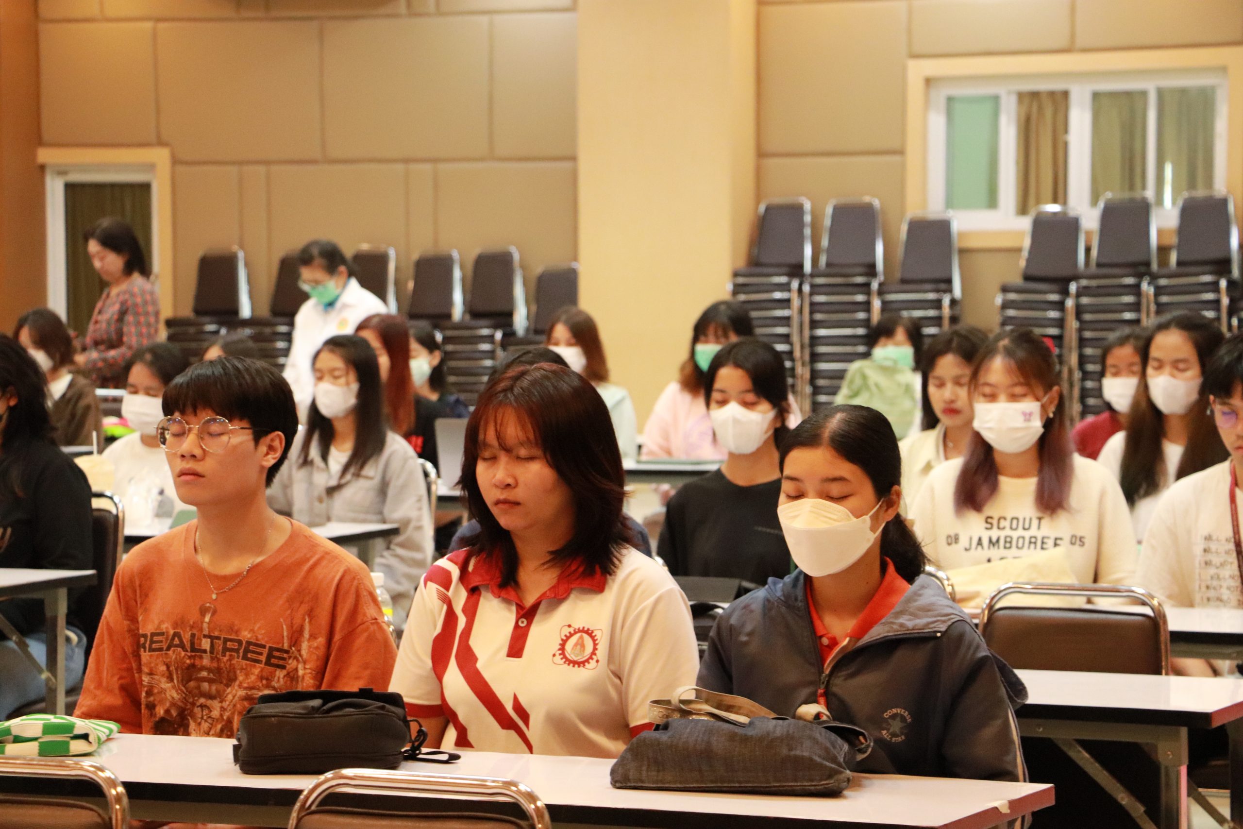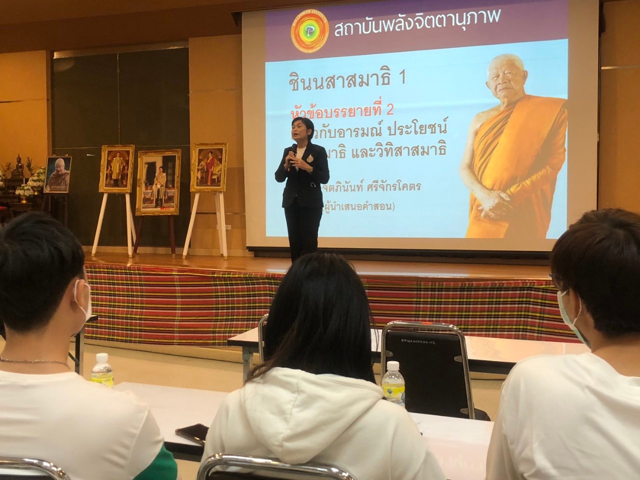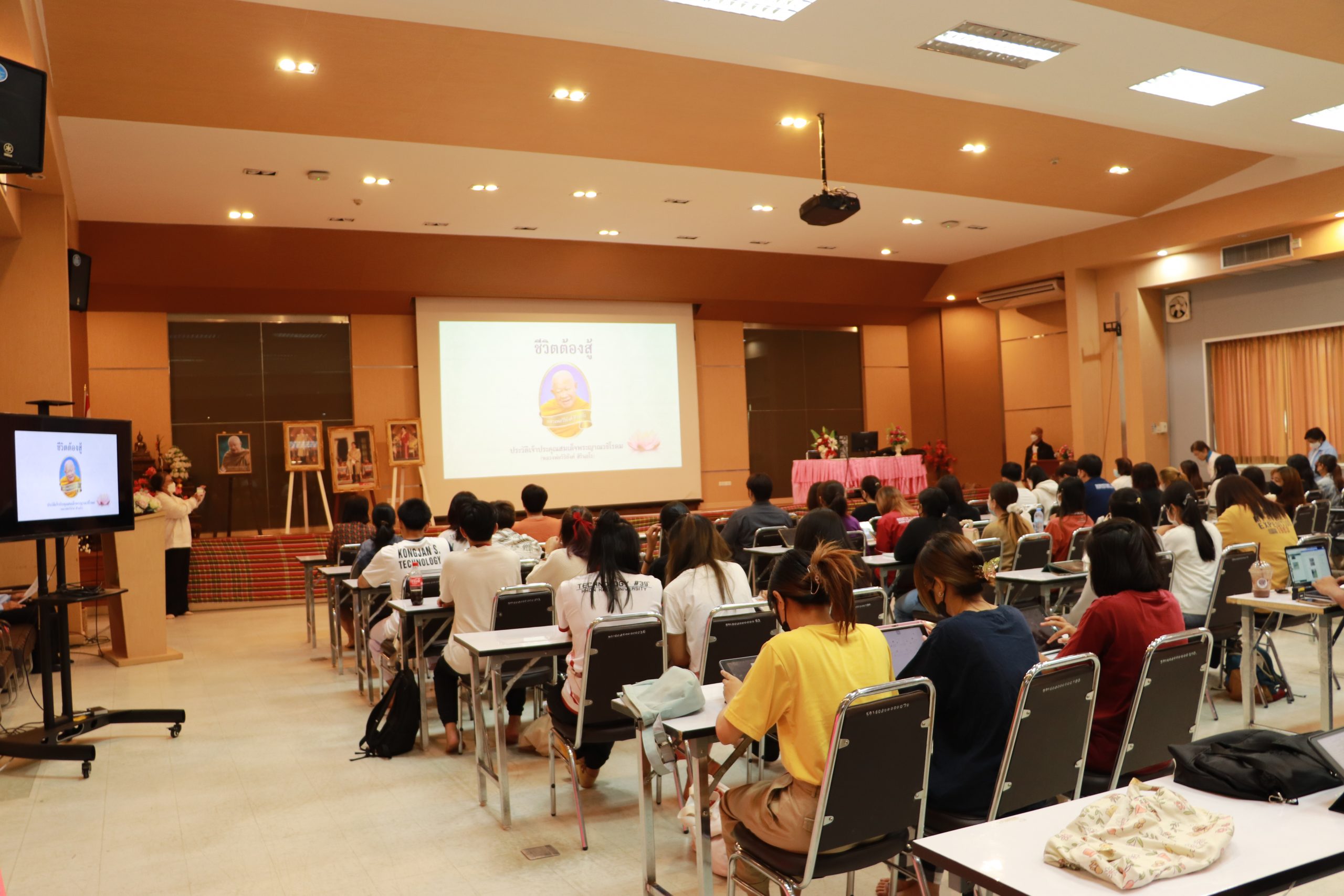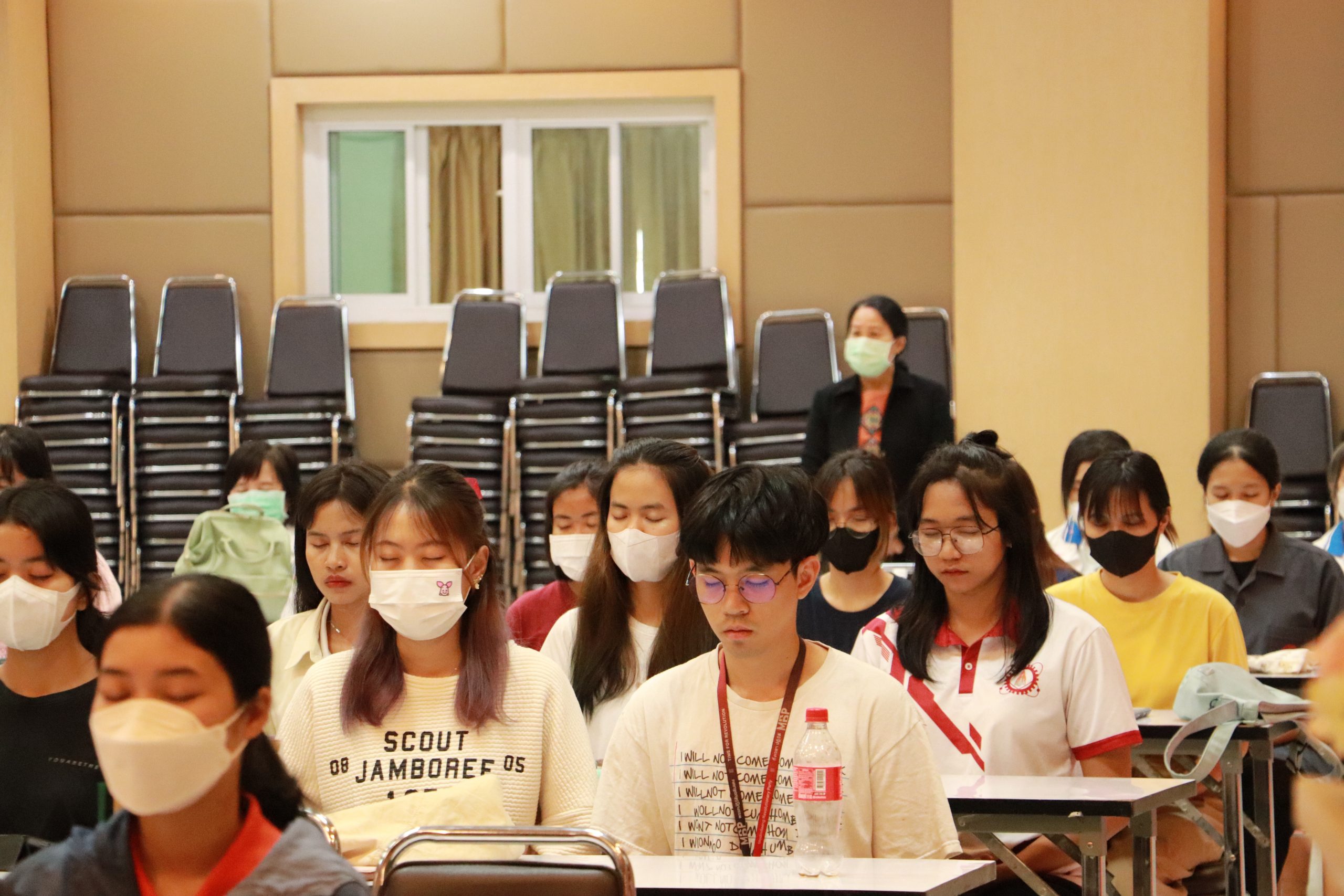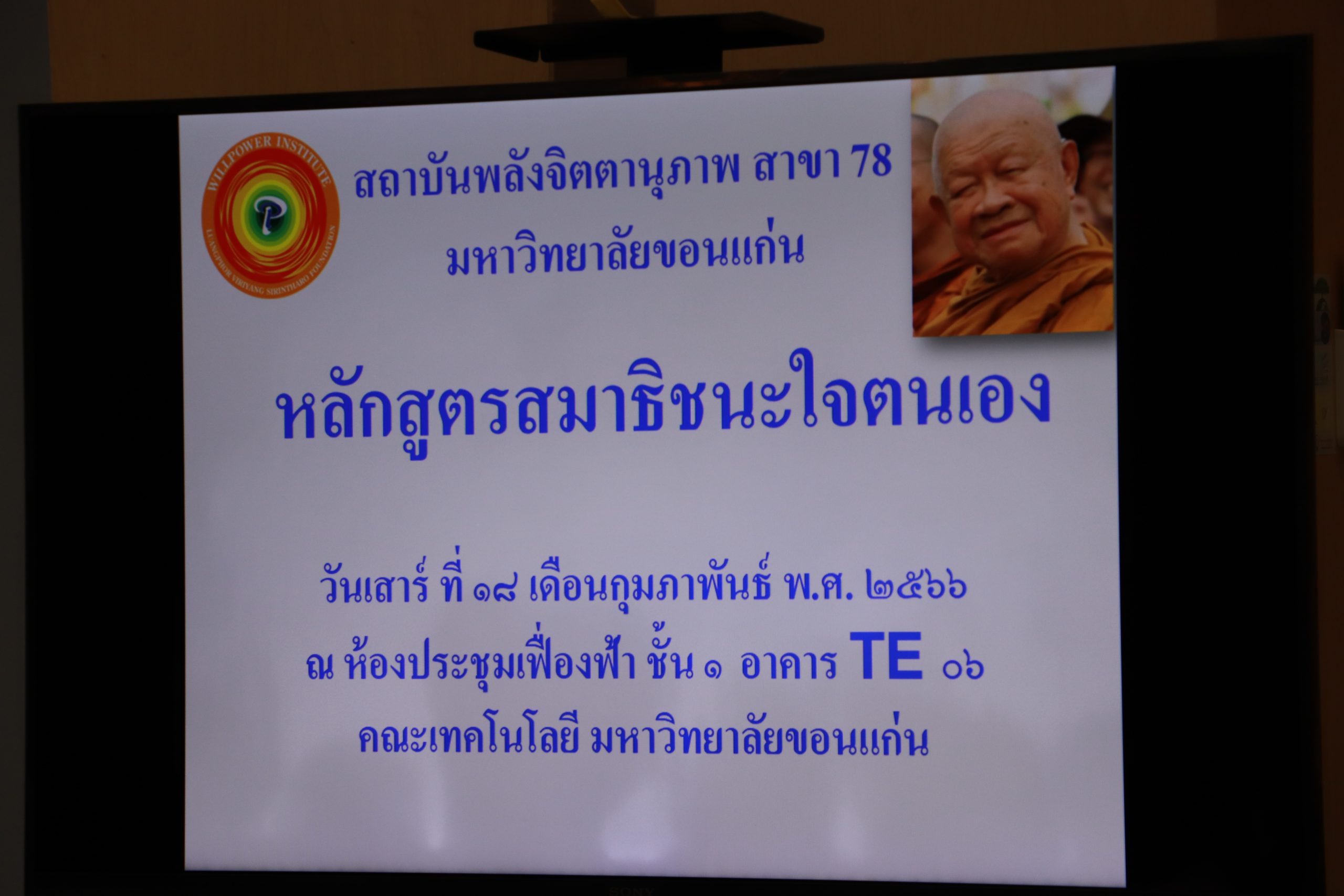 เมื่อวันเสาร์ที่ 18 กุมภาพันธ์ 2566 นำโดย ผศ.ดร.อารยา เชาวเรืองฤทธิ์ คณบดีคณะเทคโนโลยี มข. ผศ.นุศรา สุระโคตร รองคณบดีฝ่ายวิชาการ พัฒนานักศึกษาและศิษย์เก่าสัมพันธ์ และ คุณนภสร สิกขา หัวหน้างานสนับสนุนวิชาการ ได้จัดอบรมเพื่อพัฒนาทักษะด้านวิชาการสำหรับนักศึกษาคณะเทคโนโลยี มข. ประจำปีการศึกษา 2566 ในการนี้ได้รับเกียรติจากคณะครูสมาธิจากสถาบันพลังจิตตานุภาพ สาขา 78 มหาวิทยาลัยขอนแก่น อาจารย์จินตนา บุญจันทร์ อาจารย์อุมารินทร์ ตุลารักษ์ อาจารย์จิตภินันท์ ศรีจักรโคตร และ อาจารย์จันทร์หอม ทองนำ ได้ถ่ายทอดความรู้และการปฏิบัติสมาธิ การมีทักษะทางสังคม การรู้จักอารมณ์ตนเอง การควบคุมอารมณ์ การทำสมาธิมาเพื่อพัฒนาตนเอง การมีสมาธิมีสติเพื่อให้เกิดปัญญา เป็นผู้ที่มีความรับผิดชอบ รู้จักมีเหตุผล ทำให้เกิดมีความเมตตาขึ้น และประโยชน์ของสมาธิช่วยลดความเครียดส่งผลให้เกิดความสุข ของหลักสูตรสมาธิชนะใจตนเองให้กับนักศึกษาคณะเทคโนโลยี มข.