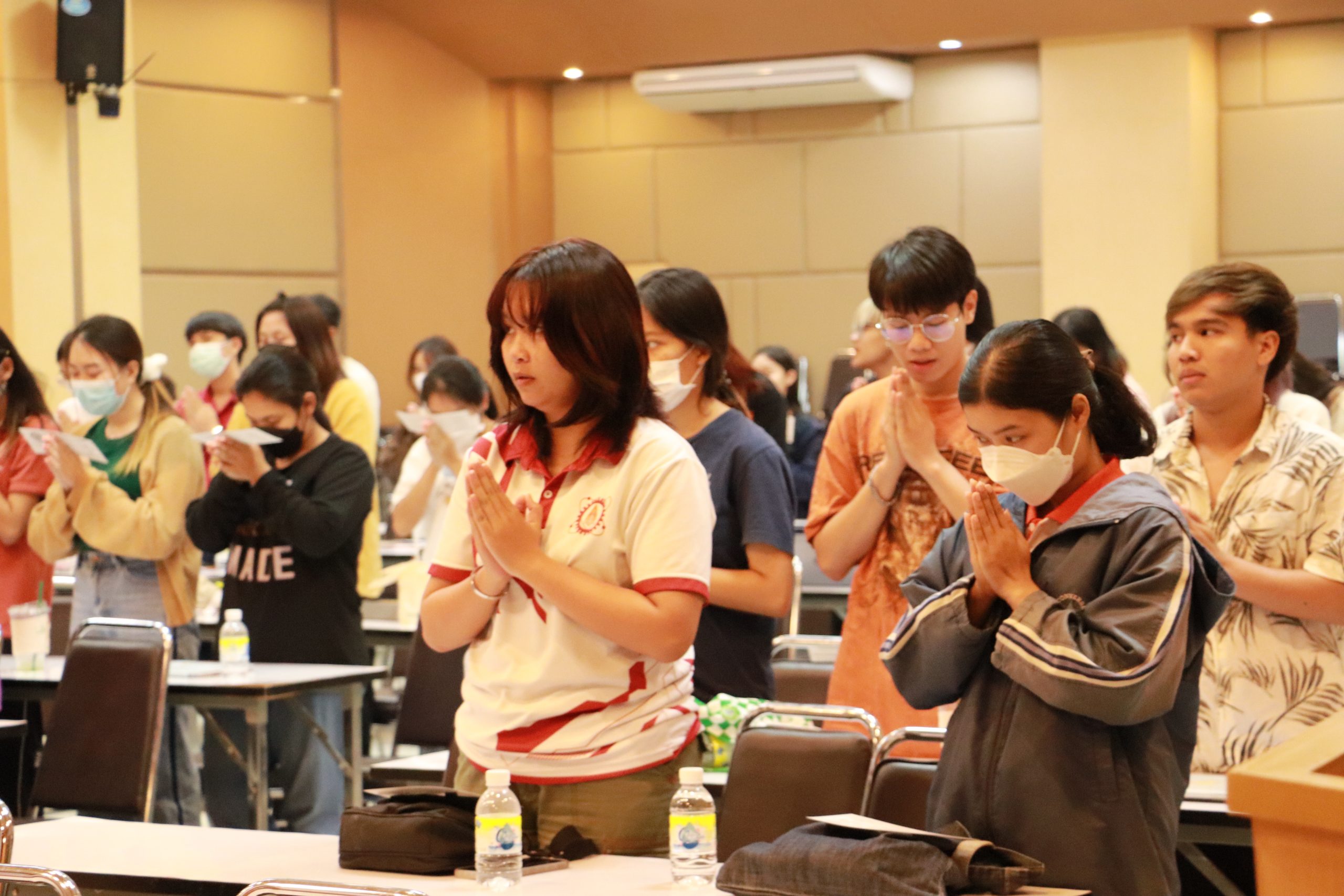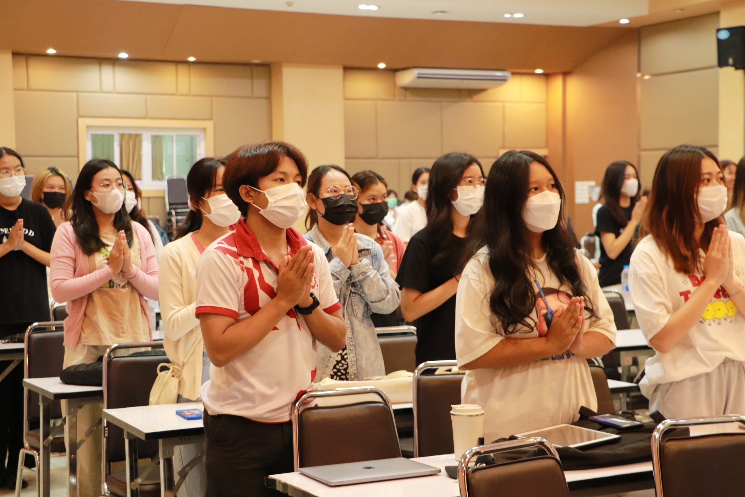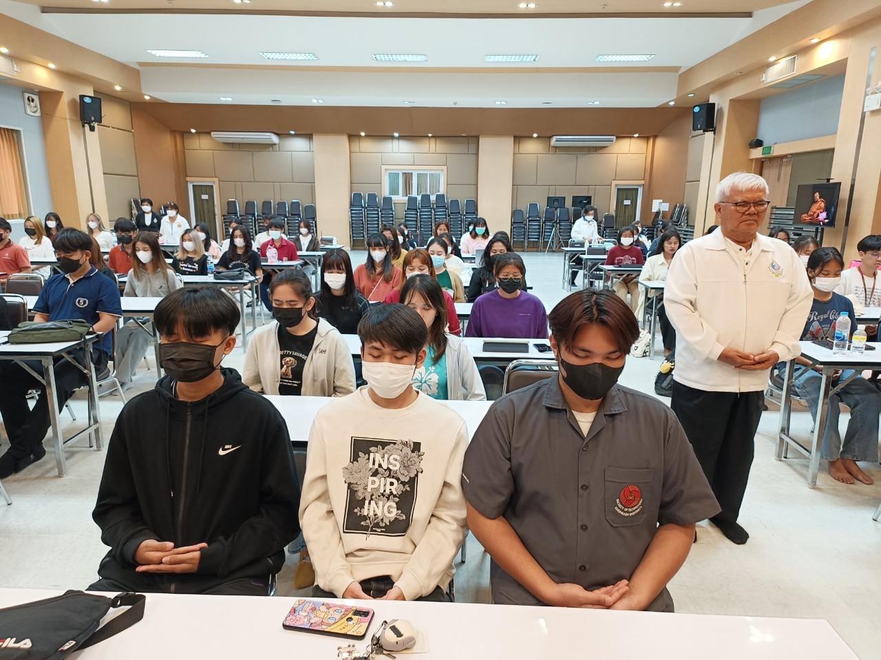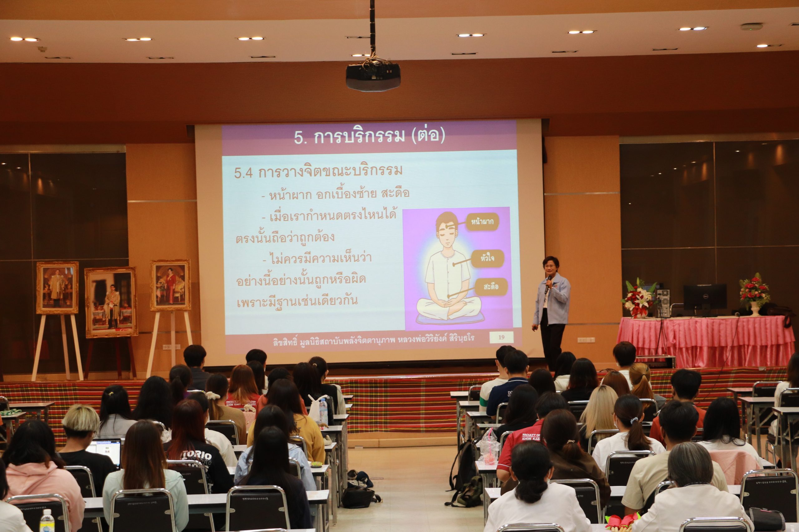เมื่อวันเสาร์ที่ 18 กุมภาพันธ์ 2566 นำโดย ผศ.ดร.อารยา เชาวเรืองฤทธิ์ คณบดีคณะเทคโนโลยี มข. ผศ.นุศรา สุระโคตร รองคณบดีฝ่ายวิชาการ พัฒนานักศึกษาและศิษย์เก่าสัมพันธ์ และ คุณนภสร สิกขา หัวหน้างานสนับสนุนวิชาการ ได้จัดอบรมเพื่อพัฒนาทักษะด้านวิชาการสำหรับนักศึกษาคณะเทคโนโลยี มข. ประจำปีการศึกษา 2566 ในการนี้ได้รับเกียรติจากคณะครูสมาธิจากสถาบันพลังจิตตานุภาพ สาขา 78 มหาวิทยาลัยขอนแก่น อาจารย์จินตนา บุญจันทร์ อาจารย์อุมารินทร์ ตุลารักษ์ อาจารย์จิตภินันท์ ศรีจักรโคตร และ อาจารย์จันทร์หอม ทองนำ ได้ถ่ายทอดความรู้และการปฏิบัติสมาธิ การมีทักษะทางสังคม การรู้จักอารมณ์ตนเอง การควบคุมอารมณ์ การทำสมาธิมาเพื่อพัฒนาตนเอง การมีสมาธิมีสติเพื่อให้เกิดปัญญา เป็นผู้ที่มีความรับผิดชอบ รู้จักมีเหตุผล ทำให้เกิดมีความเมตตาขึ้น และประโยชน์ของสมาธิช่วยลดความเครียดส่งผลให้เกิดความสุข ของหลักสูตรสมาธิชนะใจตนเองให้กับนักศึกษาคณะเทคโนโลยี มข.