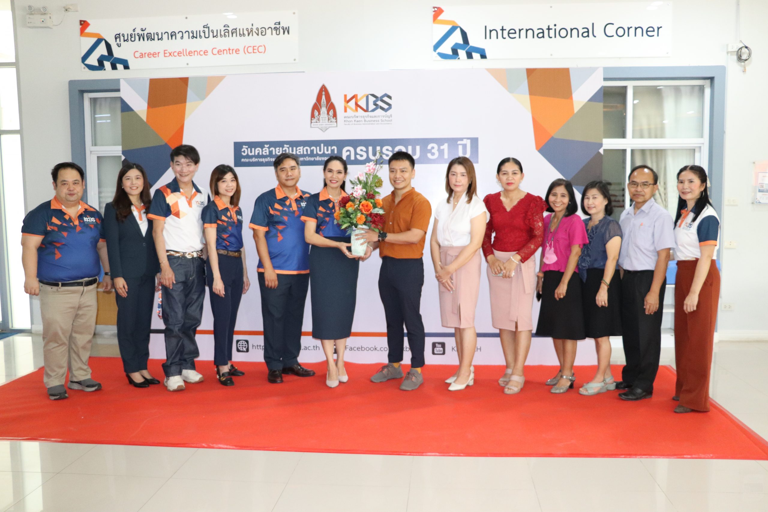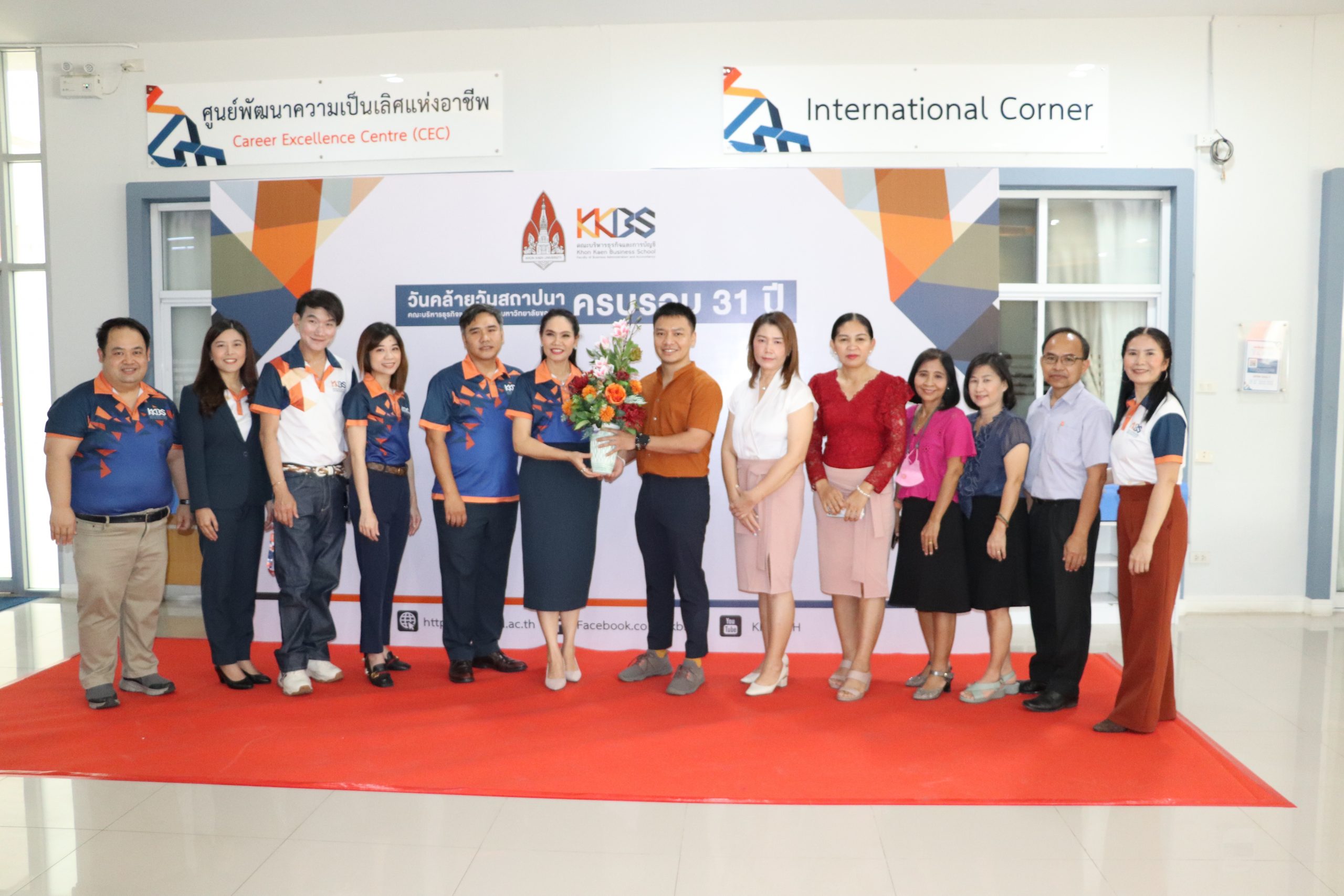 วันศุกร์ที่ 21 เมษายน พ.ศ.2566 เวลา 10.00 น. โดย อาจารย์ณัฐวุฒิ หอมทอง ผู้ช่วยคณบดีฝ่ายดิจิทัลและประกันคุณภาพ คุณสมคิด พลตื้อ ผู้อำนวยการกองบริหารงานคณะเทคโนโลยี มข. คุณศรีสวรรค์ ใจลึก หัวหน้างานบริหารงานทั่วไป คุณเฉลิมภรณ์ ป้านภูมิ รักษาการหัวหน้างานสนับสนุนการวิจัยและบริการวิชาการ คุณรังรอง รัตนะ นักวิชาการแผนและสารสนเทศ และ คุณนฤมล พิมพ์พงษ์ต้อน นักจัดการงานทั่วไป ชำนาญการ เข้ามอบช่อดอกไม้แสดงความยินดีกับ รศ. ดร.เพ็ญศรี เจริญวานิช คณบดีคณะบริหารธุรกิจและการบัญชี มข. เนื่องในโอกาสวันคล้ายวันสถาปนาครบรอบ 31 ปี คณะบริหารธุรกิจและการบัญชี มข.