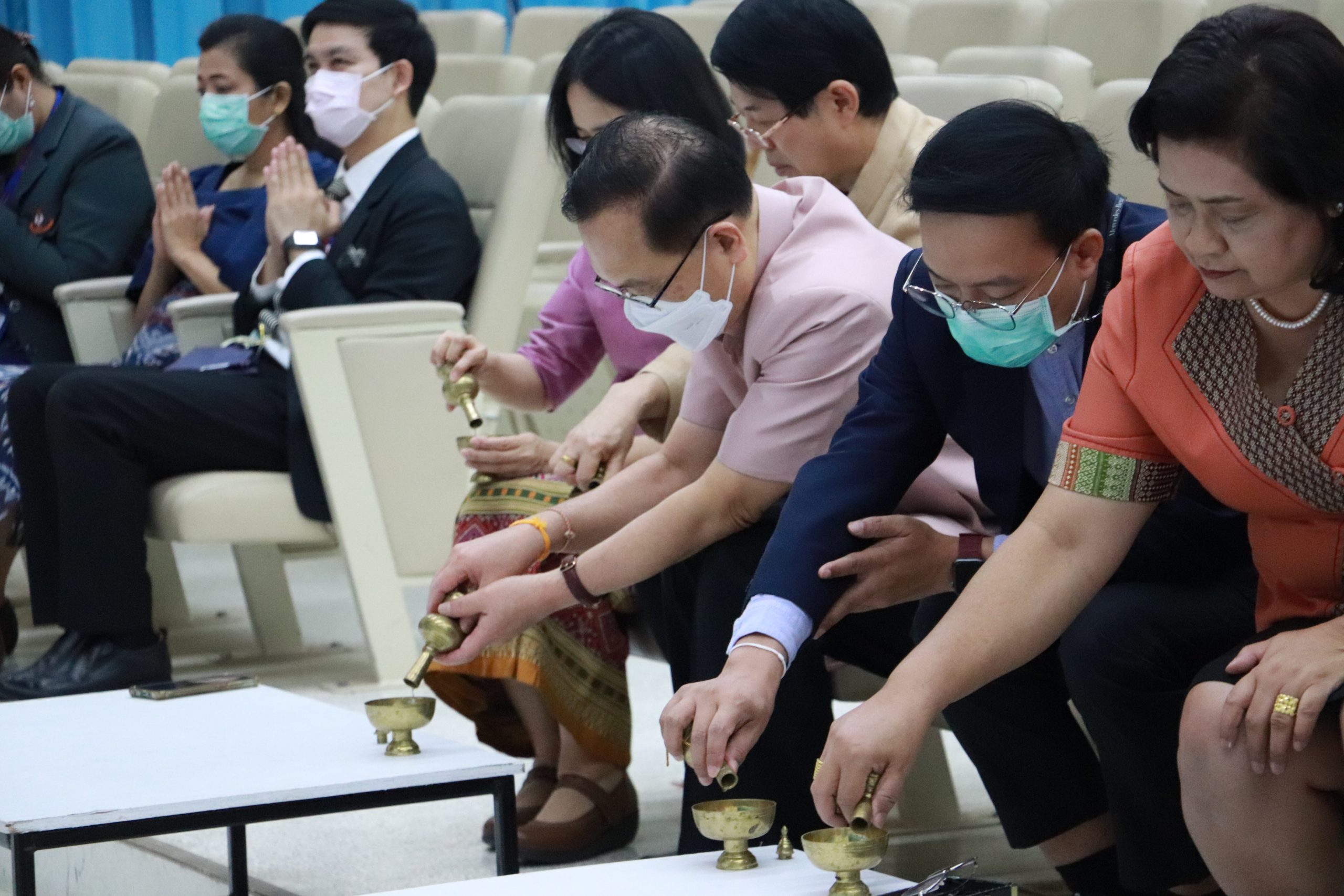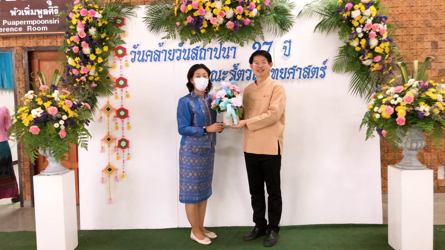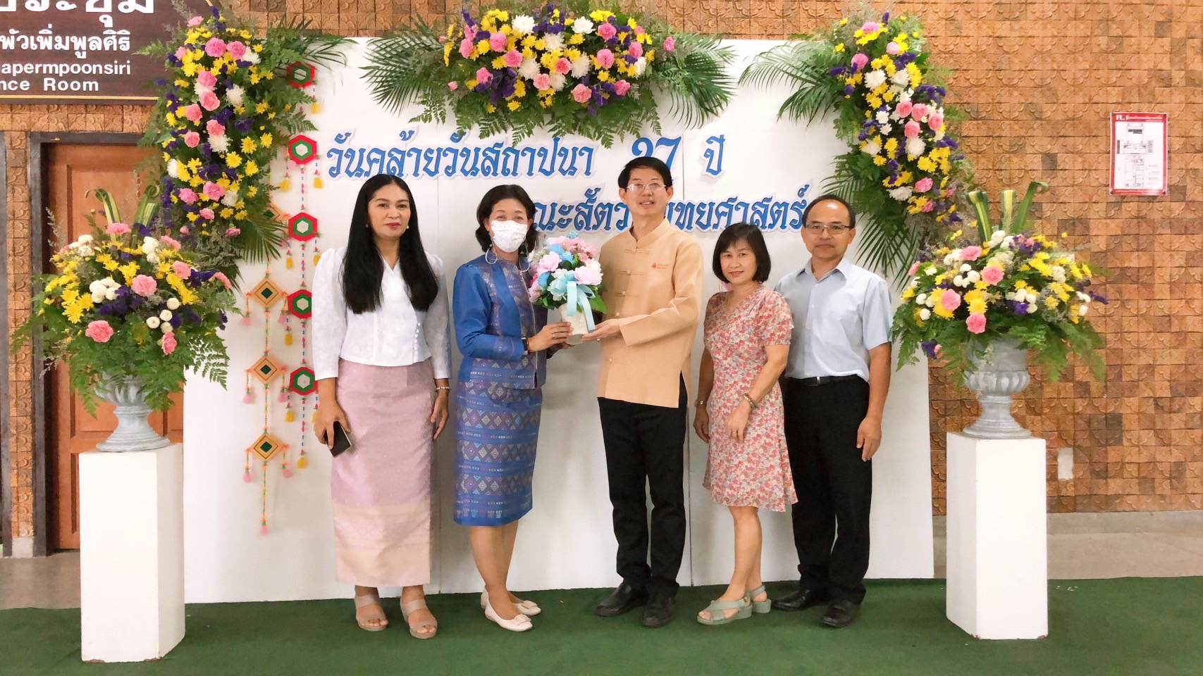 วันอังคารที่ 9 พฤษภาคม พ.ศ.2566 เวลา 07.00 น. นำโดย ผศ.ดร.อารยา เชาว์เรืองฤทธิ์ คณบดีคณะเทคโนโลยี มข. คุณสมคิด พลตื้อ ผู้อำนวยการกองบริหารงานคณะเทคโนโลยี มข. คุณศรีสวรรค์ ใจลึก หัวหน้างานบริหารงานทั่วไป คุณเฉลิมภรณ์ ป้านภูมิ รักษาการหัวหน้างานสนับสนุนการวิจัยและบริการวิชาการ และ คุณนฤมล พิมพ์พงษ์ต้อน นักจัดการงานทั่วไป ชำนาญการ เข้ามอบช่อดอกไม้แสดงความยินดีกับ ศาสตราจารย์ น.สพ.ดร.บัณฑิตย์ เต็งเจริญสกุล คณบดีคณะสัตวแพทยศาสตร์ มข. เนื่องในโอกาสวันคล้ายวันสถาปนา 37 ปี คณะสัตวแพทยศาสตร์ มข. ในการนี้ได้รับเกียรติจาก รศ.นพ.ชาญชัย พานทองวิริยะกุล อธิการบดีมหาวิทยาลัยขอนแก่น ประธานในงาน หลังจากนั้นร่วมพิธีทางพุทธศาสนา ทำบุญตักบาตรเช้า ถวายสังฆทาน ถวายภัตตาหาร และพระสงฆ์พรมน้าพระพุทธมนต์