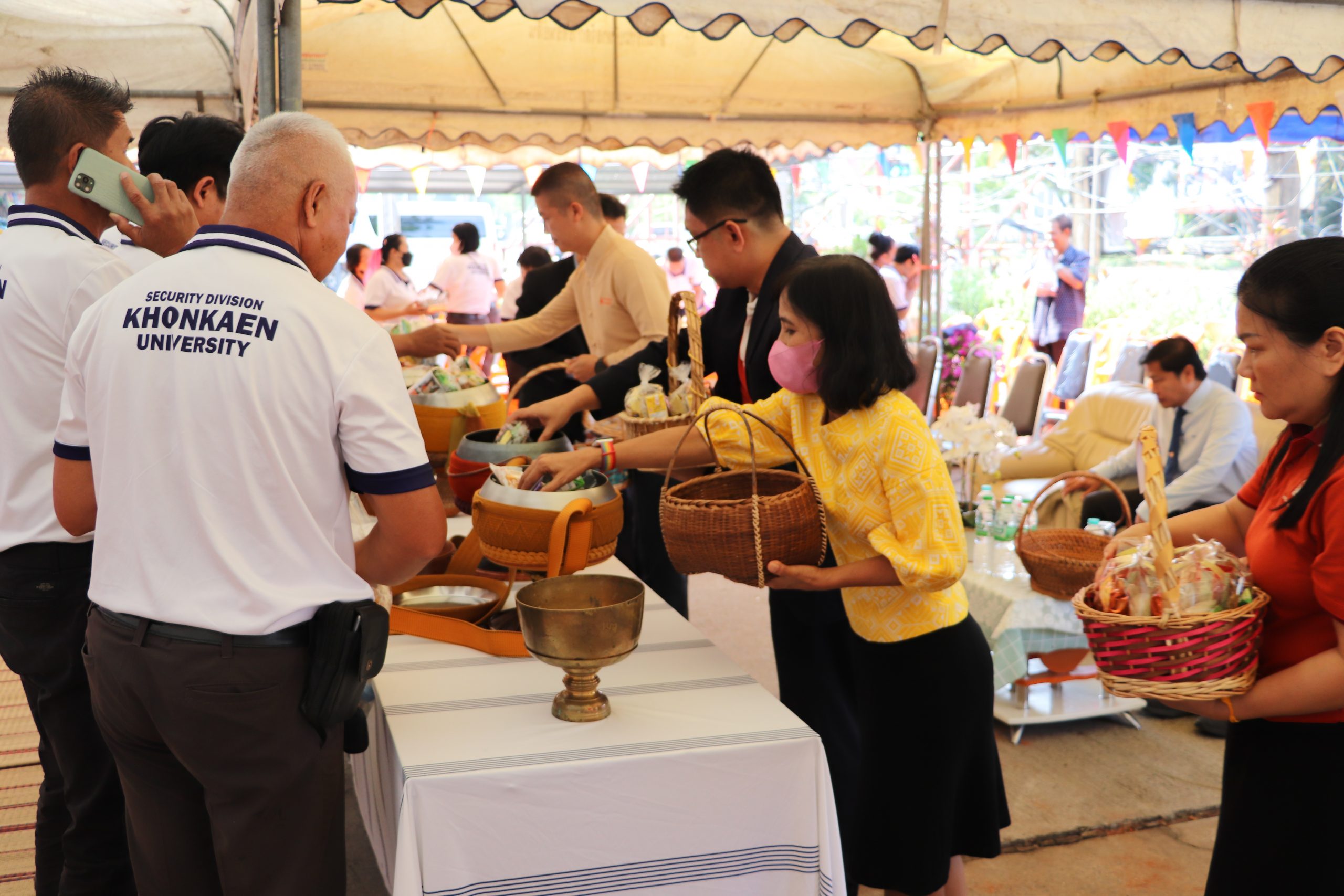 วันจันทร์ที่ 15 พฤษภาคม พ.ศ.2566 เวลา 07.00 น. คณะเทคโนโลยี มหาวิทยาลัยขอนแก่น นำโดย ผศ.ดร.อารยา เชาว์เรืองฤทธิ์ คณบดีคณะเทคโนโลยี มข. คุณสมคิด พลตื้อ ผู้อำนวยการกองบริหารงานคณะเทคโนโลยี มข. คุณเฉลิมภรณ์ ป้านภูมิ รักษาการหัวหน้างานสนับสนุนการวิจัยและบริการวิชาการ และ คุณนฤมล พิมพ์พงษ์ต้อน นักจัดการงานทั่วไป ชำนาญการ เข้ามอบช่อดอกไม้แสดงความยินดีกับ ผู้ช่วยศาสตราจารย์ ดร. สมพงษ์ สิทธิพรม ผู้ช่วยอธิการบดีฝ่ายรักษาความปลอดภัย มข. เนื่องในโอกาสวันคล้ายวันสถาปนากองป้องกันและรักษาความปลอดภัย มข. 34 ปี ในการนี้ได้ร่วมพิธีทางพุทธศาสนา ทำบุญตักบาตรเช้า ถวายสังฆทานและพระสงฆ์พรมน้าพระพุทธมนต์
