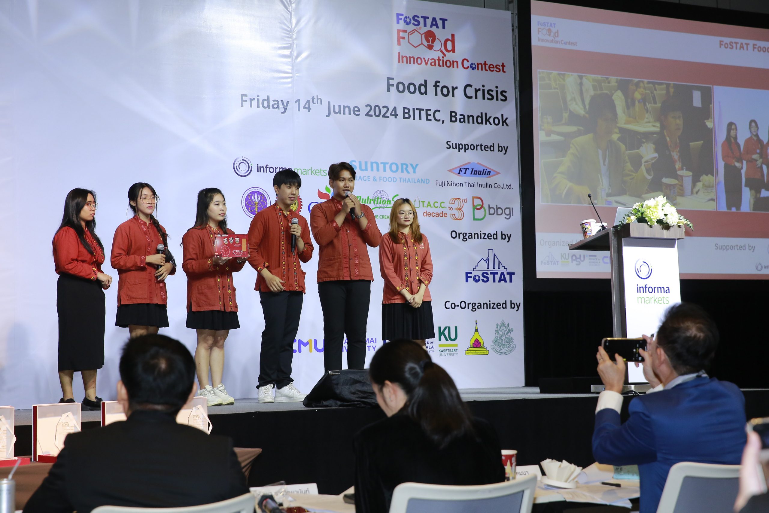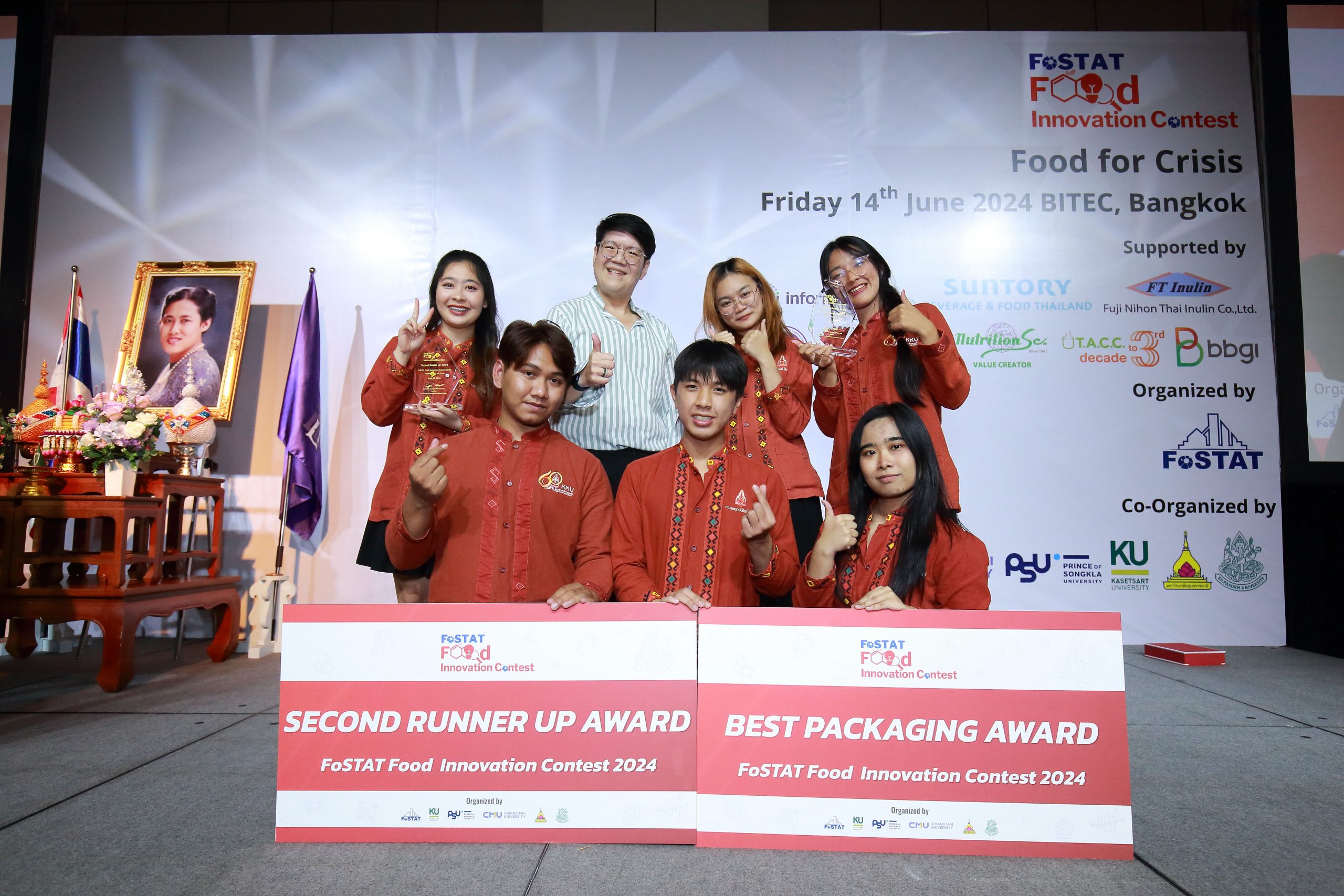 เมื่อวันที่ 14 มิถุนายน 2567 สาขาวิชาเทคโนโลยีการอาหาร คณะเทคโนโลยี มหาวิทยาลัยขอนแก่น นำโดย ดร.นัฐวงค์ เฟื่องไพบูลย์ ได้เข้าร่วมการแข่งขัน FoSTAT Food Innovation Contest 2024 รอบชิงชนะเลิศระดับประเทศ ในหัวข้อ “Food for Crisis” จัดโดยสมาคมวิทยาศาสตร์และเทคโนโลยีทางอาหารแห่งประเทศไทย (FoSTAT) ภายในงาน Food Innovation Asia Conference 2024
