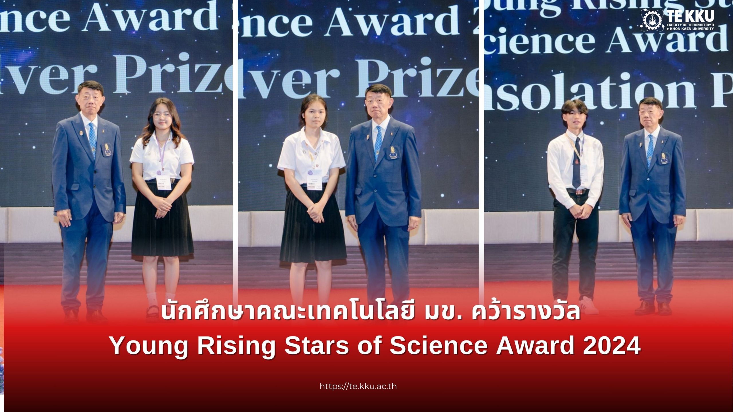 ในการนี้ได้รับการสนับสนุนจาก ผศ.ดร.อารยา เชาว์เรืองฤทธิ์ คณบดีคณะเทคโนโลยี มหาวิทยาลัยขอนแก่น คณะเทคโนโลยี มหาวิทยาลัยขอนแก่น ขอแสดงความยินดีกับนักศึกษาทุกท่านที่ได้รับรางวัล และหวังว่านักศึกษาจะต่อยอดความสำเร็จสู่การเป็นนักวิทยาศาสตร์และนักเทคโนโลยีที่มีศักยภาพในอนาคต
