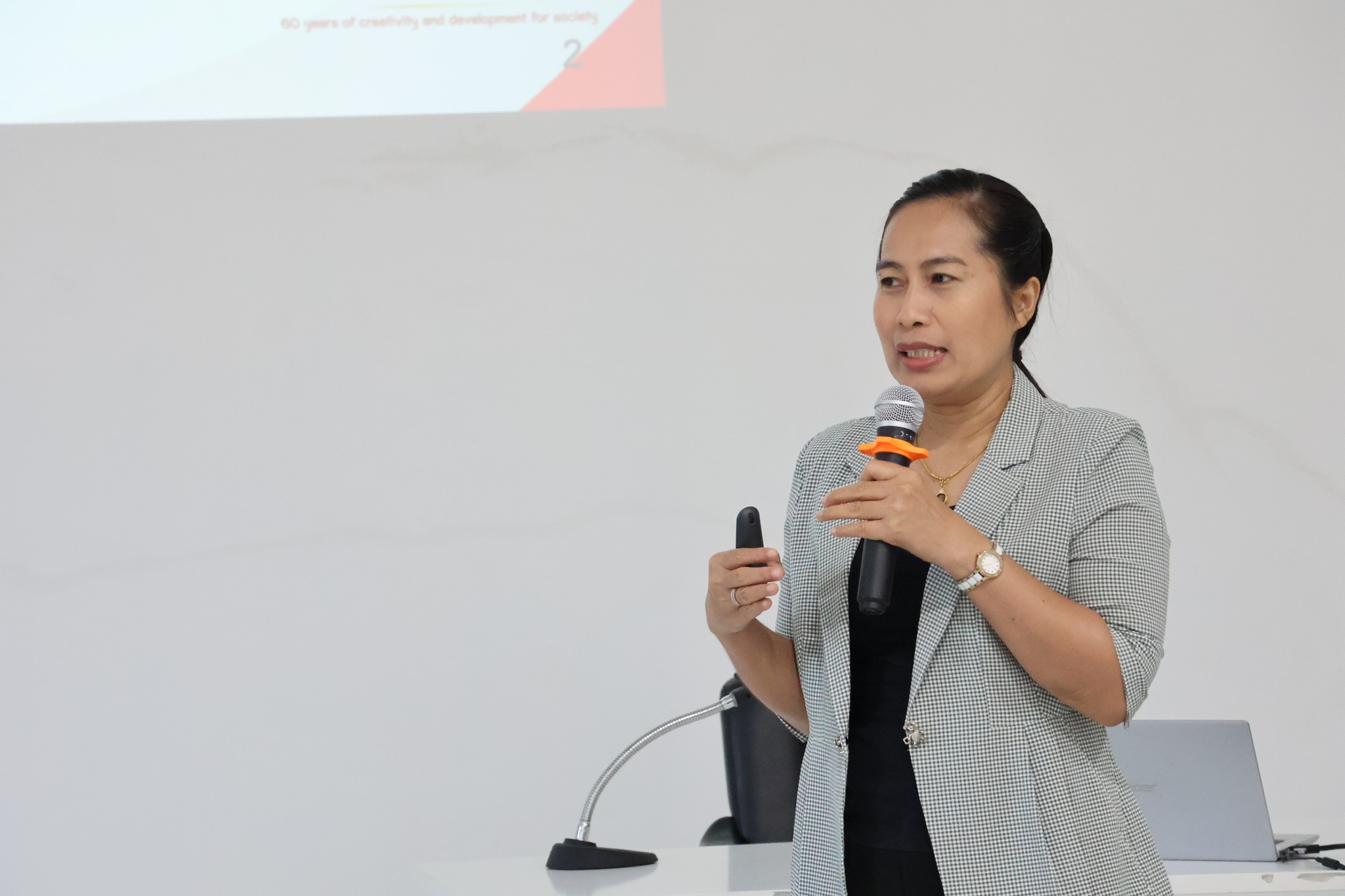 รศ.ดร.จันทิมา ภูงามเงิน ได้บรรยายหัวข้อ “การพัฒนาผลิตภัณฑ์ต้นแบบจากทรัพยากรท้องถิ่น” ซึ่งได้รับความสนใจจากผู้เข้าร่วมอบรม และกระตุ้นให้เกิดการคิดค้นและพัฒนาผลิตภัณฑ์ที่เหมาะสมกับพื้นที่ของตน
