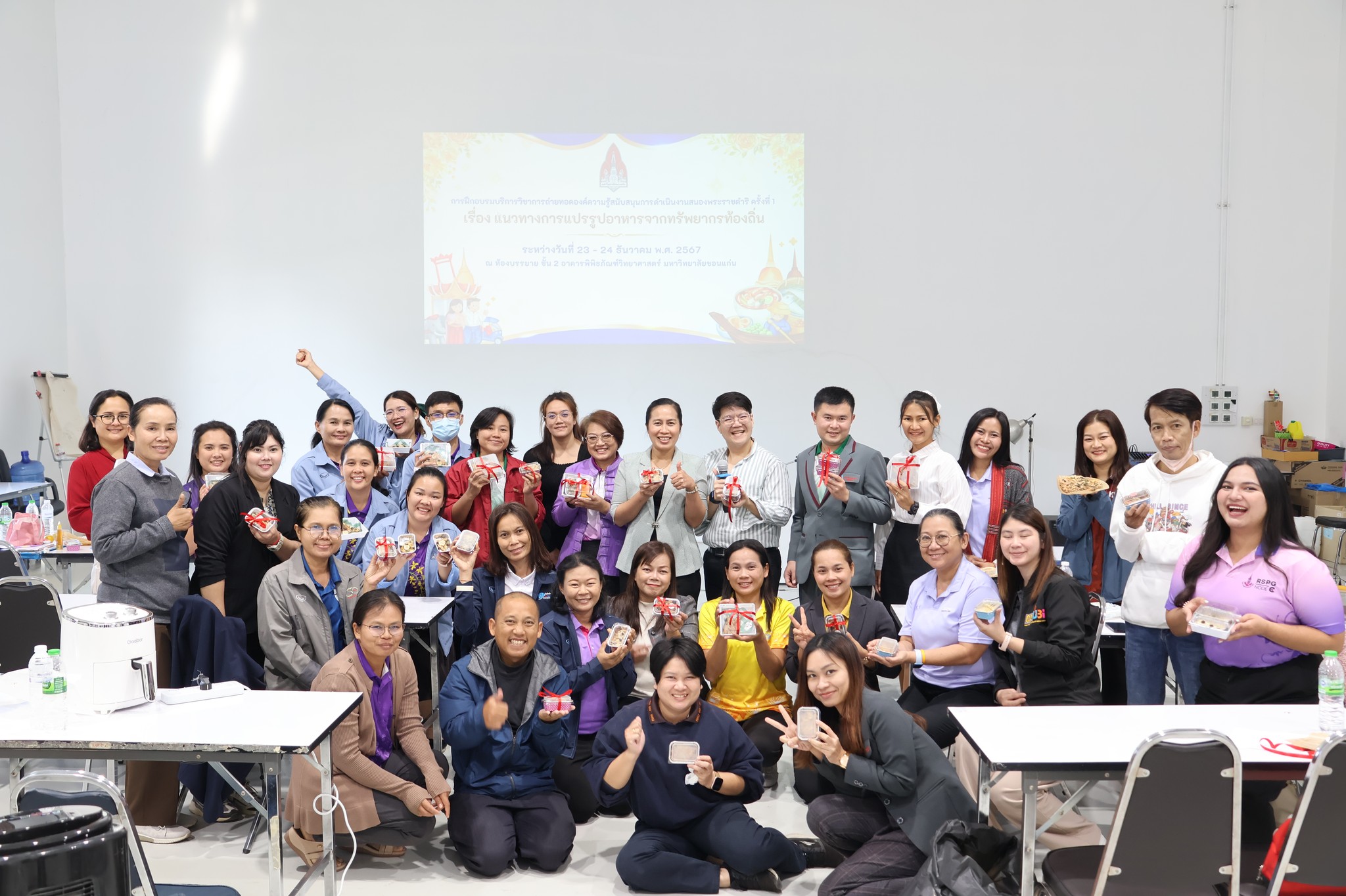 เมื่อวันที่ 24 ธันวาคม พ.ศ. 2567 สาขาวิชาเทคโนโลยีการอาหาร คณะเทคโนโลยี มหาวิทยาลัยขอนแก่น โดย รศ.ดร.จันทิมา ภูงามเงิน และ อ.ดร.นัฐวงค์ เฟื่องไพบูลย์ อาจารย์ประจำสาขาวิชาเทคโนโลยีการอาหาร ได้ร่วมเป็นวิทยากรในการอบรมเชิงปฏิบัติการเรื่อง “แนวทางการแปรรูปอาหารจากทรัพยากรท้องถิ่น” ภายใต้โครงการบริการวิชาการถ่ายทอดองค์ความรู้สนับสนุนการดำเนินงานสนองพระราชดำริ ครั้งที่ 1 ณ ห้องบรรยาย ชั้น 2 อาคารพิพิธภัณฑ์วิทยาศาสตร์ มหาวิทยาลัยขอนแก่น โดยมีผู้เข้าร่วมงานจากองค์กรปกครองส่วนท้องถิ่น บุคลากรทางการศึกษา สมาชิกสวนพฤกษศาสตร์โรงเรียนในพื้นที่รับผิดชอบ และประชาชนผู้สนใจเข้าร่วมอย่างคับคั่ง