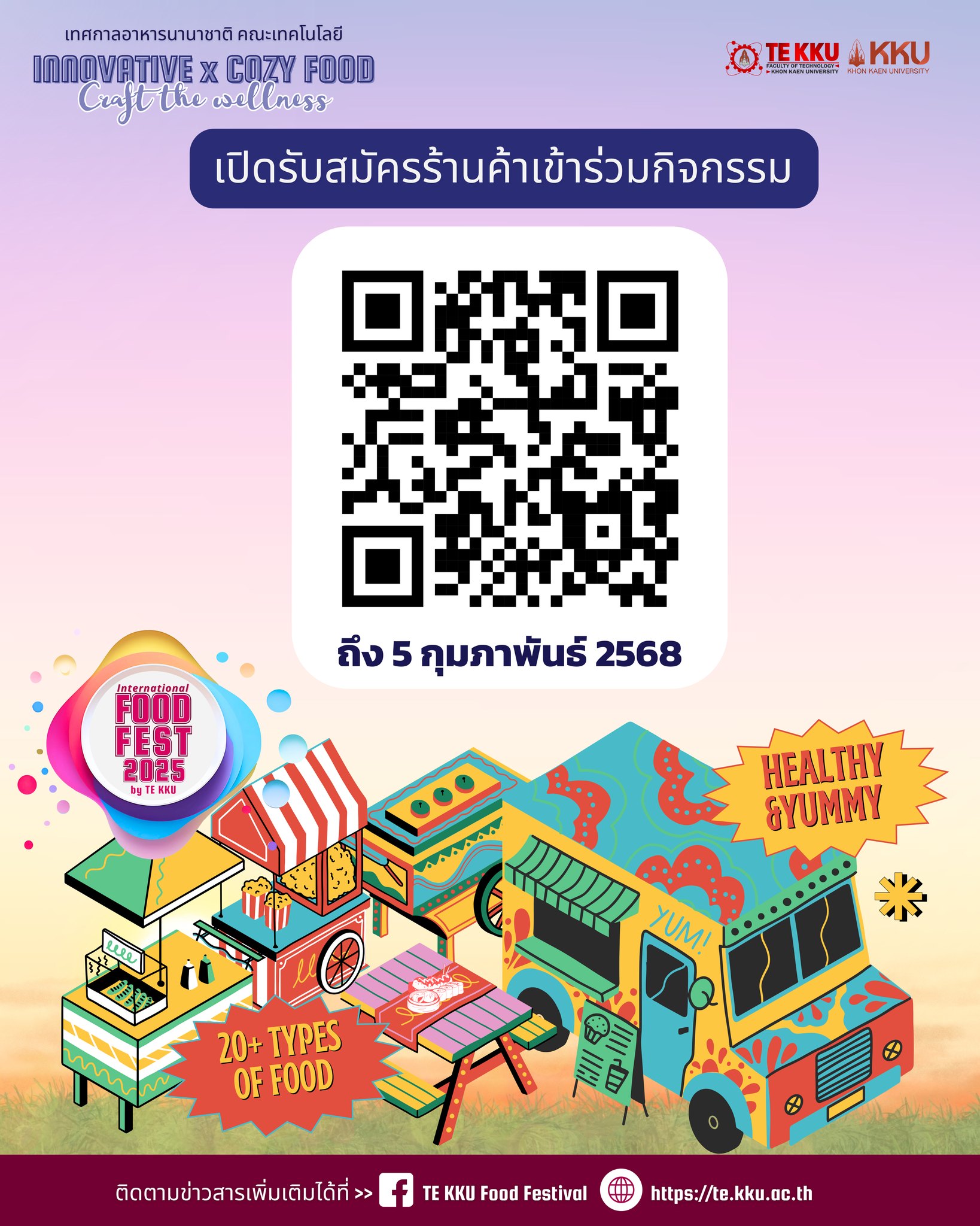 เปิดรับสมัครร้านค้าเข้าร่วมกิจกรรมเทศกาลอาหารนานาชาติ International Food Fest by TEKKU 2025 29 January 202529 January 2025 Prateep Tewongsa ข่าวประชาสัมพันธ์ 16 – – เปิดรับสมัครร้านค้าเข้าร่วมกิจกรรมเทศกาลอาหารนานาชาติ International Food Fest by TEKKU 2025 – ระยะเวลารับสมัคร: วันนี้ – 5 กุมภาพันธ์ 2568 ลงทะเบียนได้ที่: https://kku.world/zca3w8 หรือสแกน QR Code – สอบถามรายละเอียดงาน และติดตามเราได้ที่ FB: https://www.facebook.com/tefoodfestival Prateep Tewongsa