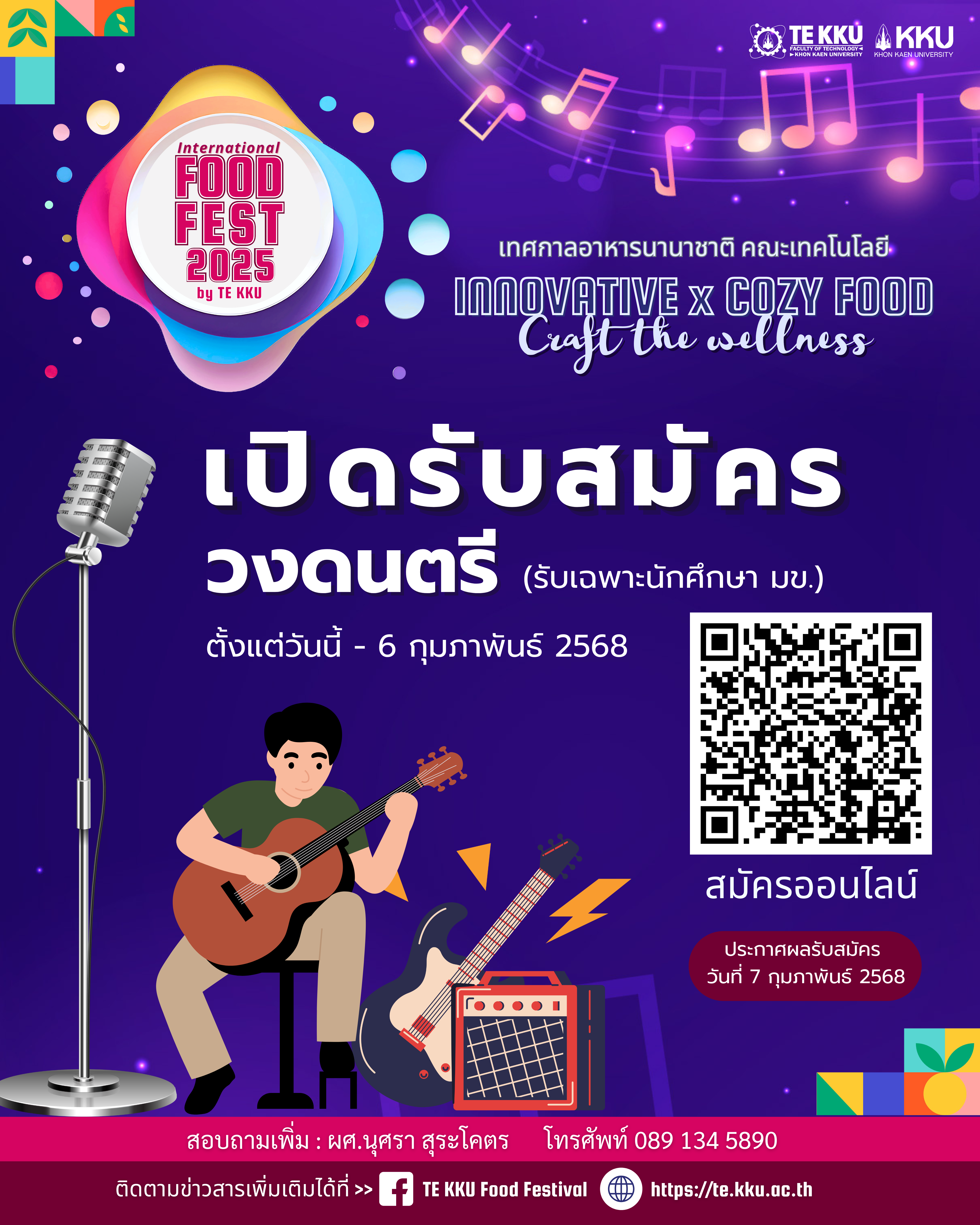 2. ประกาศผลการคัดเลือกวันที่ 7 กุมภาพันธ์ 2568 ผ่าน Facebook Page: TE KKU Food Festival