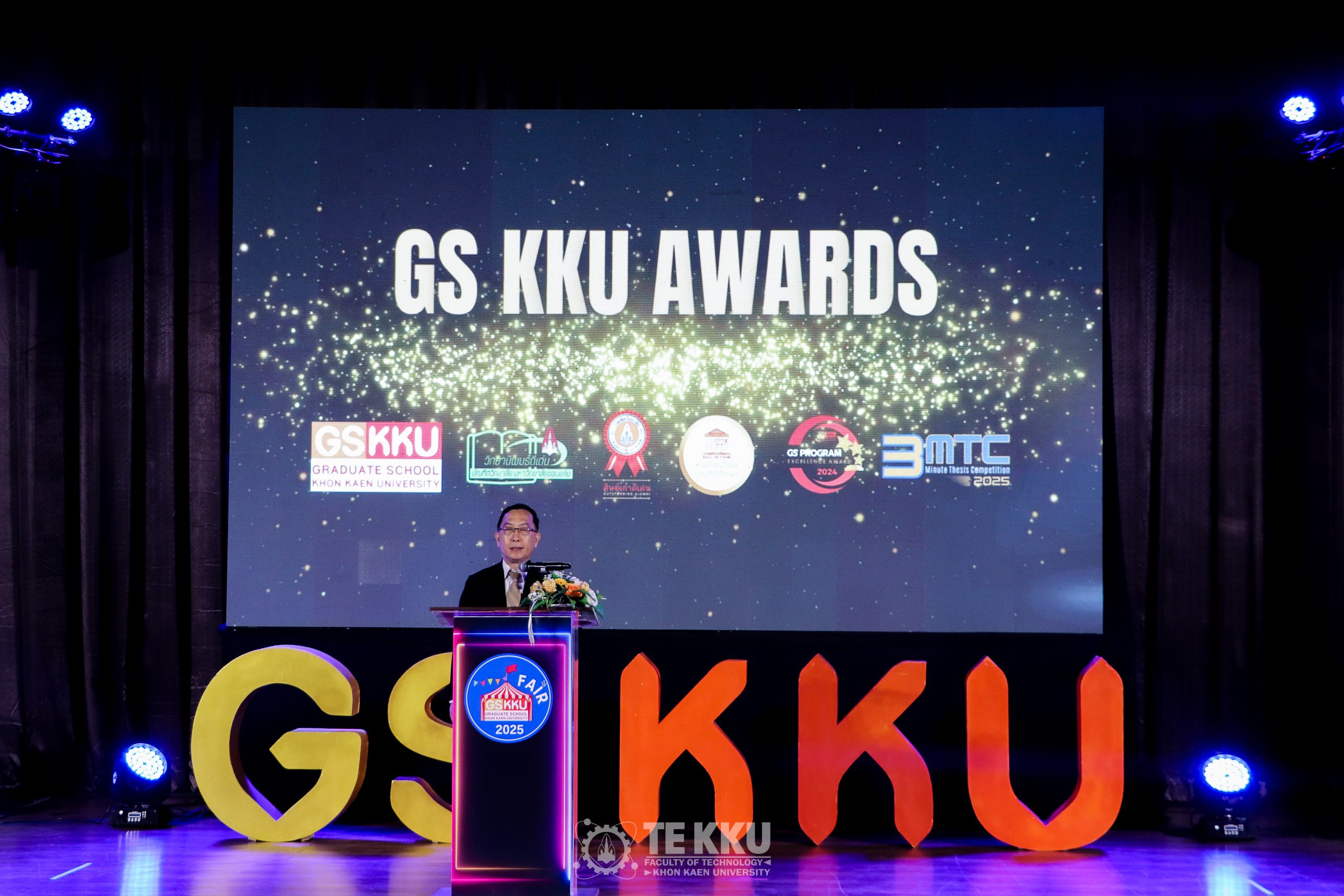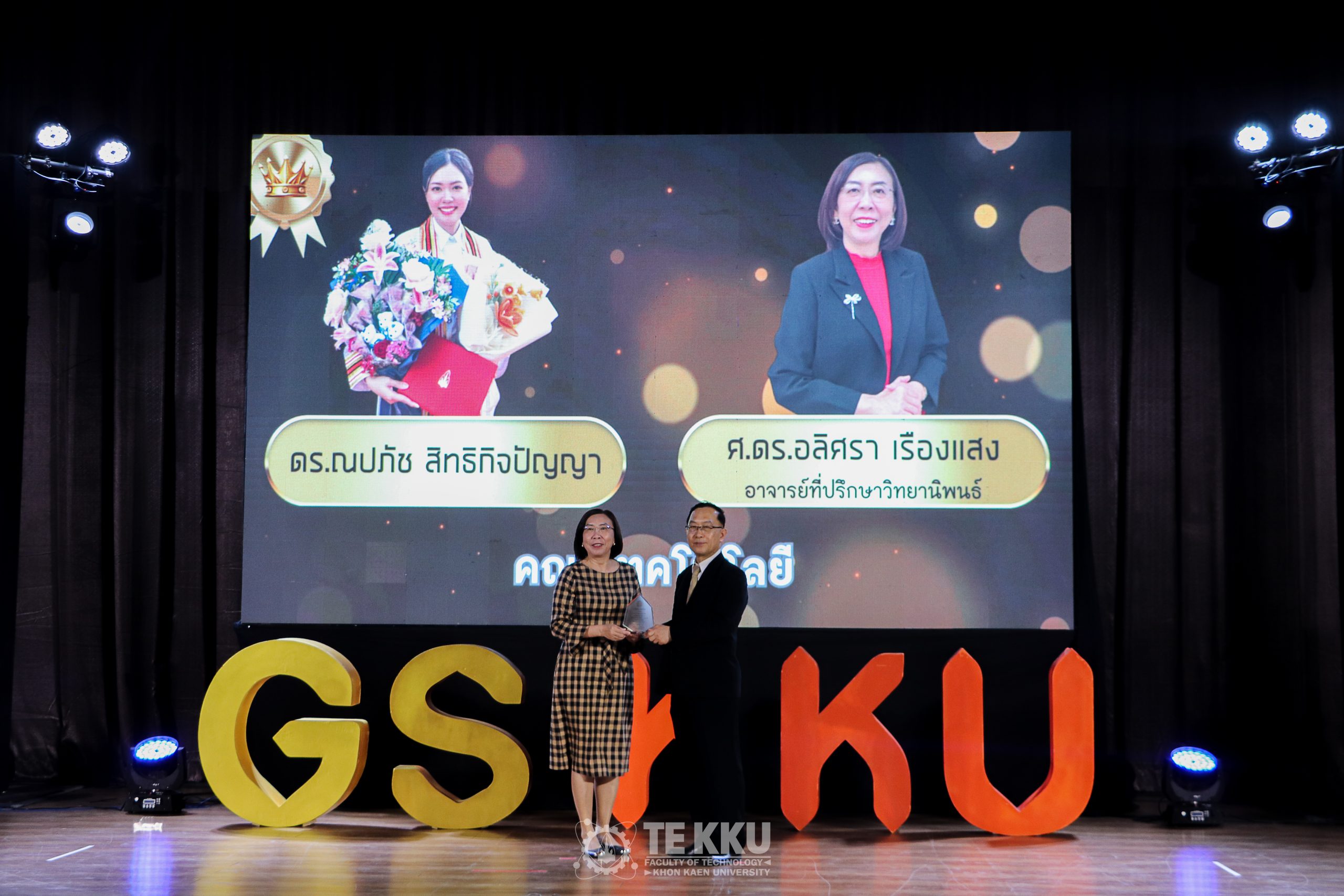 เมื่อวันที่ 31 มีนาคม 2568 คณะเทคโนโลยี มหาวิทยาลัยขอนแก่น นำโดย ผศ. ดร.อารยา เชาว์เรืองฤทธิ์ คณบดีคณะเทคโนโลยี พร้อมด้วยบุคลากรคณะเทคโนโลยี เข้าร่วมแสดงความยินดีกับ ดร.ณปภัช สิทธิกิจปัญญา และ รศ. ดร.วีระ ปิยธีรวงศ์ ในงานพิธีมอบรางวัลจัดขึ้นในงาน GS KKU Fair 2025 ซึ่งเป็นงานเชิดชูความเป็นเลิศทางวิชาการของบัณฑิตวิทยาลัย มหาวิทยาลัยขอนแก่น โดยได้รับเกียรติจาก รศ.นพ.ชาญชัย พานทองวิริยะกุล รักษาการแทนอธิการบดีมหาวิทยาลัยขอนแก่น เป็นประธานในพิธี พร้อมด้วยผู้บริหาร คณาจารย์ บุคลากร นักศึกษา และศิษย์เก่า ร่วมงานจำนวนมาก ณ ห้อง Auditorium อุทยานวิทยาศาสตร์ภาคตะวันออกเฉียงเหนือ มหาวิทยาลัยขอนแก่น