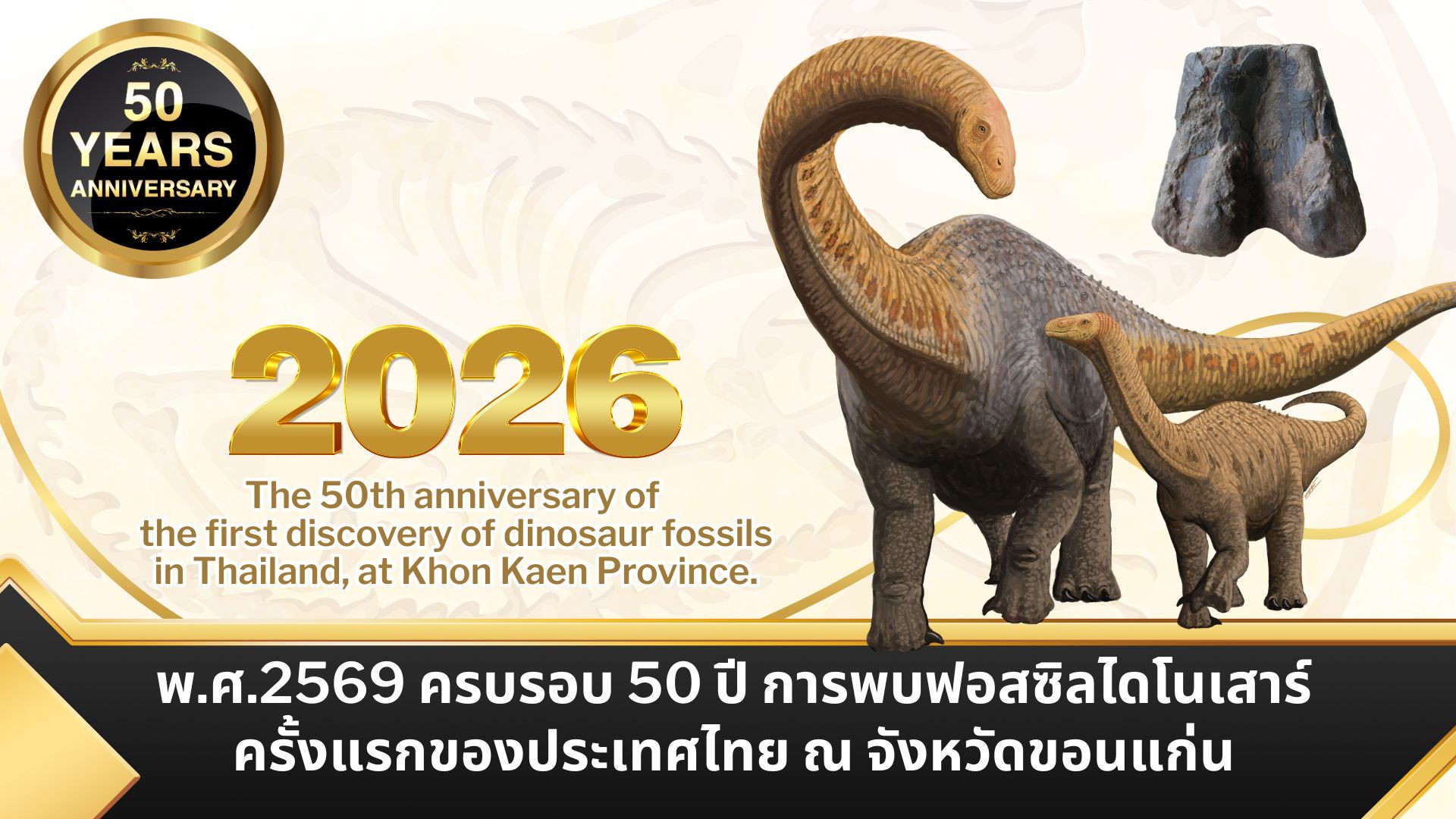 เมื่อวันที่ 16 พฤษภาคม 2568 เวลา 13.30 – 16.30 น. ณ ห้องประชุมพุทธศิลป์ คุ้มสีฐาน มหาวิทยาลัยขอนแก่น คณะเทคโนโลยี มหาวิทยาลัยขอนแก่น นำโดย ผู้ช่วยศาสตราจารย์ ดร.อารยา เชาว์เรืองฤทธิ์ คณบดีคณะเทคโนโลยี พร้อมด้วย ผู้ช่วยศาสตราจารย์ เกียรติศักดิ์ ศรภิรมย์ หัวหน้าสาขาวิชาเทคโนโลยีธรณี, และอาจารย์ ดร.พิทักษ์สิทธิ์ ดิษบรรจง เข้าร่วมประชุมความร่วมมือกับหน่วยงานภาครัฐและเอกชนระดับจังหวัดและระดับชาติ เพื่อหารือแนวทางการจัดกิจกรรมเฉลิมฉลองวาระสำคัญ “ครบรอบ 50 ปีการค้นพบฟอสซิลไดโนเสาร์ครั้งแรกของประเทศไทย”
