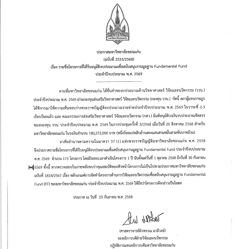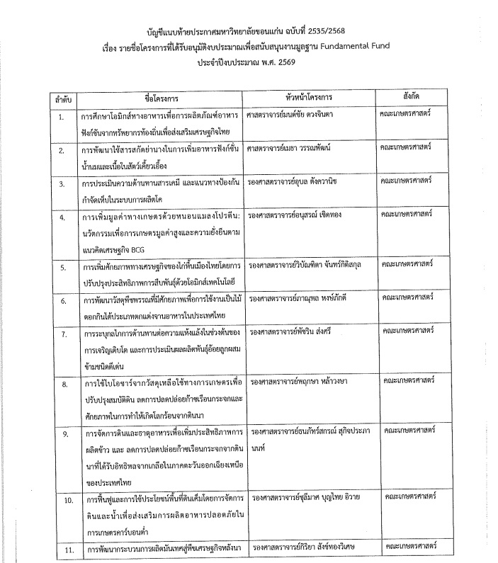 ประกาศรายคณาจารย์และชื่อโครงการของคณะเทคโนโลยี ที่ได้รับอนุมัติงบประมาณเพื่อสนับสนุนงานมูลฐาน Fundamental Fund ประจำปีงบประมาณ พ.ศ.2569 มหาวิทยาลัยขอนแก่น 2 October 20252 October 2025 Supat Boonkeaw ข่าวคณะเทคโนโลยี 9 Supat Boonkeaw