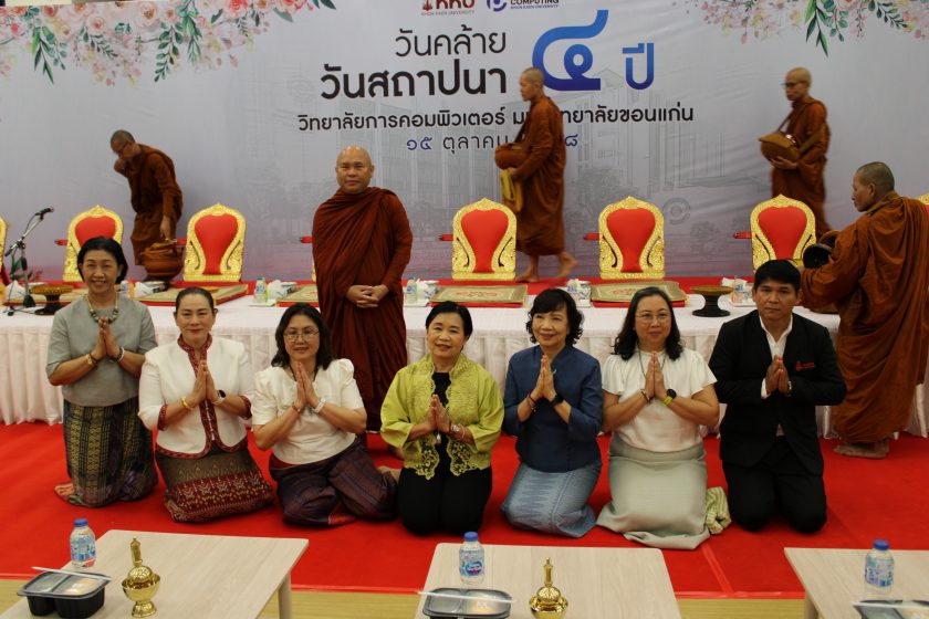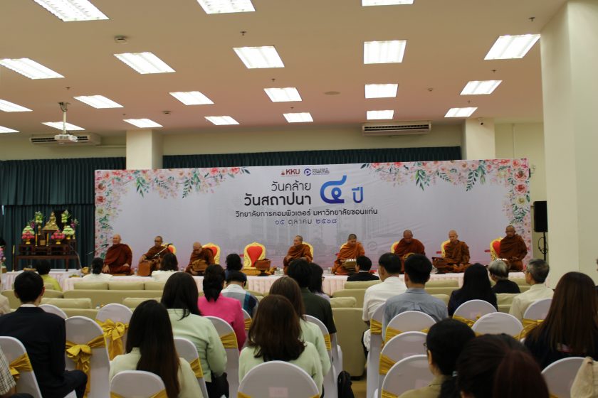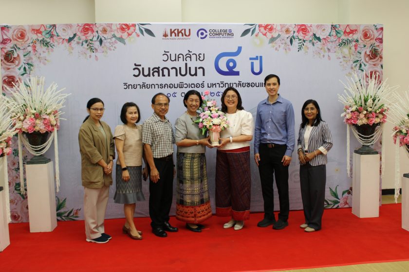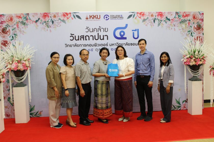 วันพุธที่ 15 ตุลาคม 2568 เวลา 07.00 น. โดย ผู้ช่วยศาสตราจารย์ ดร.อารยา เชาว์เรืองฤทธิ์ คณบดีคณะเทคโนโลยี มหาวิทยาลัยขอนแก่น พร้อมด้วยบุคลากรคณะเทคโนโลยี ได้เข้าร่วมแสดงความยินดีกับวิทยาลัยคอมพิวเตอร์ มหาวิทยาลัยขอนแก่น เนื่องในโอกาสครบรอบ 4 ปี วันคล้ายวันสถาปนา ณ ชั้น 1 อาคารวิทยาวิภาส วิทยาลัยคอมพิวเตอร์