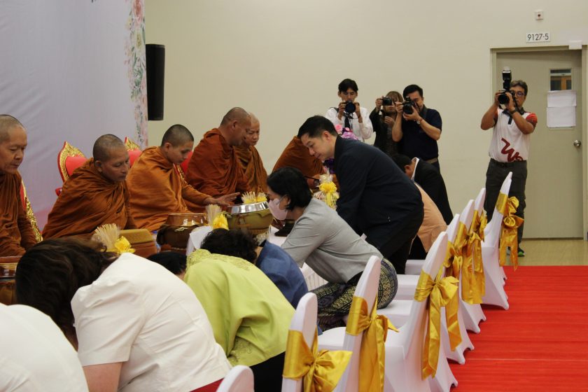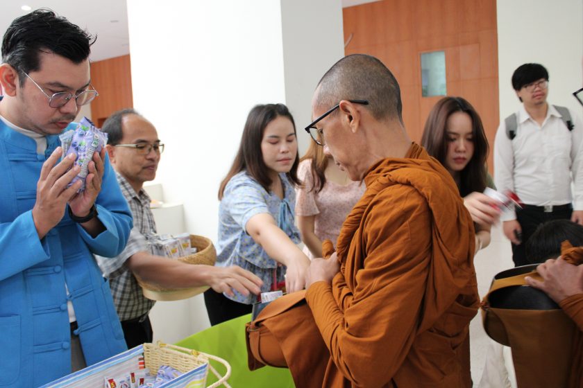 กิจกรรมเริ่มต้นด้วยการออกบิณฑบาต ณ ลานอเนกประสงค์ ชั้น 1 อาคารวิทยาวิภาส ตามด้วยพิธีทำบุญตักบาตรเช้า การฟังพระธรรมเทศนาโดย หลวงปู่ยูวิน ภูริปัญโญ ปิดท้ายด้วยการอนุโมทนา เจริญมงคลคาถา และการประพรมน้ำพระพุทธมนต์โดยพระสงฆ์ทั้ง 9 รูป