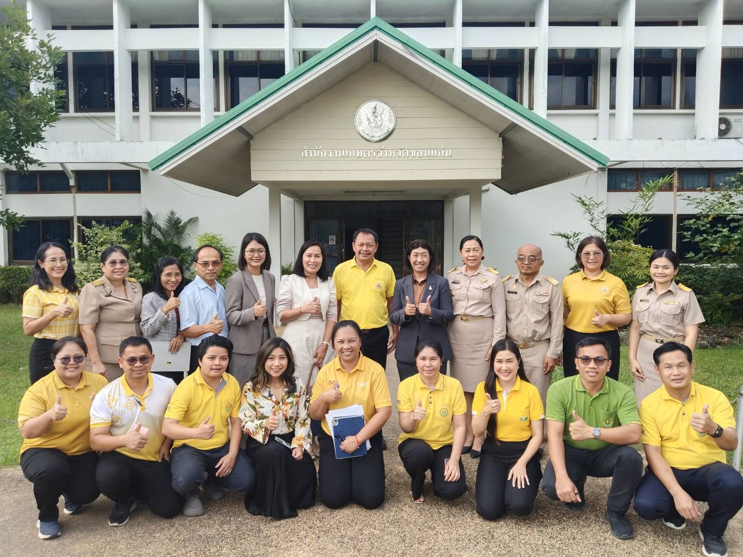 ในการนี้ นายคมกริช ศาลาน้อย เกษตรจังหวัดขอนแก่น ให้การต้อนรับอย่างอบอุ่น พร้อมด้วย นางสาวสุนันทา หมื่นแก้วณภา หัวหน้ากลุ่มยุทธศาสตร์และสารสนเทศ, นายประยูรภัทร์ ศรีศักดิ์นอก หัวหน้ากลุ่มยุทธศาสตร์และสารสนเทศ, นางสุดารัตน์ ทองเดือน หัวหน้ากลุ่มอารักขาพืช, นางณัฐนันท์ อุทัยชัย หัวหน้ากลุ่มส่งเสริมและพัฒนาเกษตรกร และ นางสาวปวีณญา สุขปัน หัวหน้าฝ่ายบริหารทั่วไป
