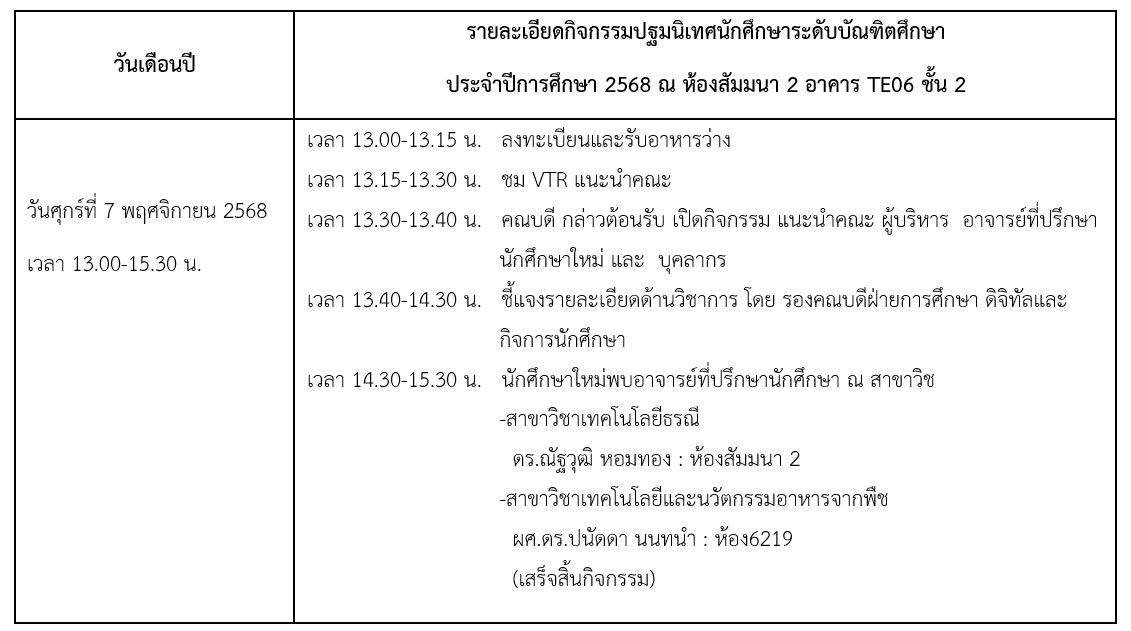 📣 ปฐมนิเทศนักศึกษาใหม่ระดับบัณฑิตศึกษา (ภาคการศึกษาปลาย ปีการศึกษา 2568)