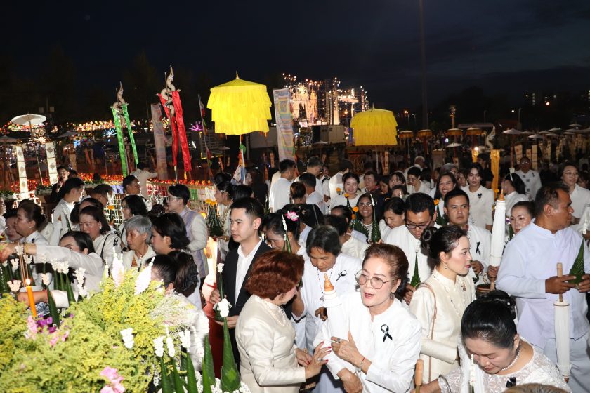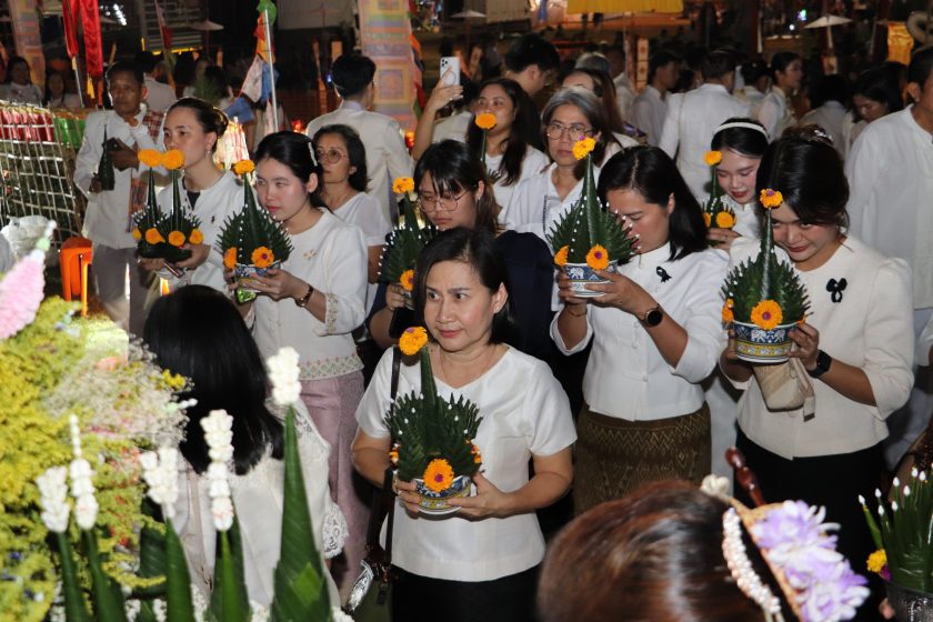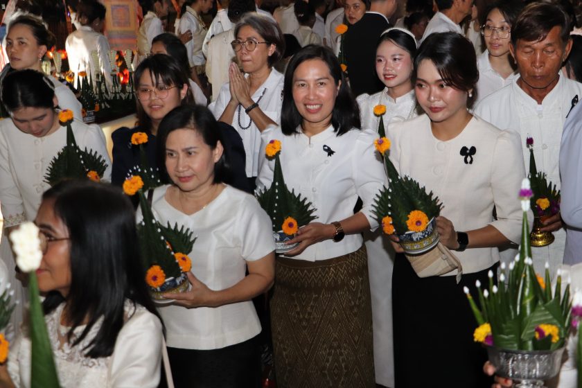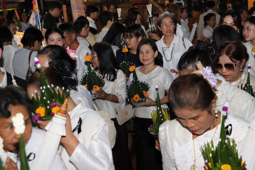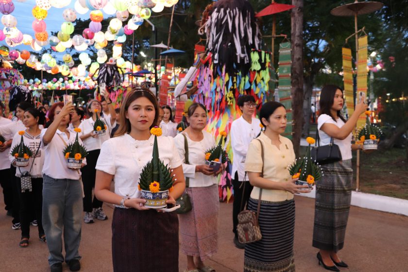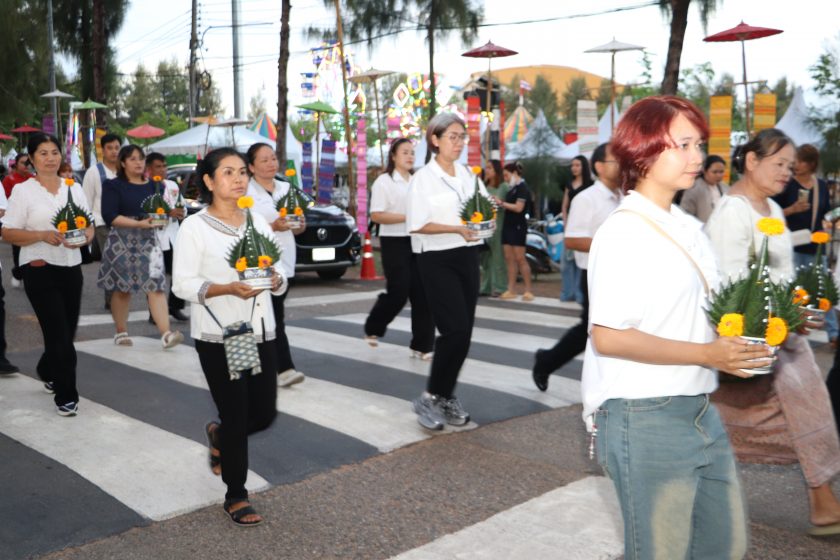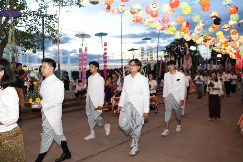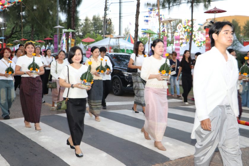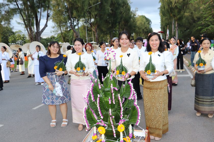 เมื่อวันจันทร์ที่ 3 พฤศจิกายน พ.ศ.2568 เวลา 17.00 น. โดย รศ.จันทิมา ภูงามเงิน รองคณบดีฝ่ายยุทธศาสตร์และสื่อสารองค์กร และ รศ. ดร.วิมลทิพย์ สิงห์เถื่อน รองคณบดีฝ่ายการศึกษา ดิจิทัลและกิจการนักศึกษา พร้อมด้วยคณาจารย์ บุคลากร นักศึกษาคณะเทคโนโลยี มข. ร่วมเดินขบวนสีฐานเฟสติวัล นานาชาติ บุญสมมาบูชานาค ประจำปี 2568” (Sithan International Festival 2025) และร่วมพิธีบำเพ็ญพระราชกุศลถวายสมเด็จพระนางเจ้าสิริกิติ์ พระบรมราชินีนาถ พระบรมราชชนนีพันปีหลวง พร้อมตักบาตรพระสงฆ์ 10 รูป และประกอบพิธีอัญเชิญพระอุปคุต พิธีสักการะหลวงพ่อพระศรี 50 ปี มข. และหลวงพ่อไทรขาว เพื่อความเป็นสิริมงคล ขบวนแห่พระบรมสารีริกธาตุ การสักการะ “พระธาตุสุคันธเจดีย์ศรีมอดินแดง” นิทรรศการ “ศิลป์ ศรัทธา และสายธารแห่งความภักดี” เพื่อถวายความอาลัยพระบรมราชชนนีพันปีหลวง สำหรับงานสีฐานเฟสติวัล นานาชาติ บุญสมมาบูชานาค ประจำปี 2568” (Sithan International Festival 2025) ภายใต้ธีม “สีฐาน นวธารา หิมาลายัน” ได้จัดขึ้นระหว่างวันที่ 3-5 พฤศจิกายน พ.ศ.2568 ณ บึงสีฐาน มหาวิทยาลัยขอนแก่น