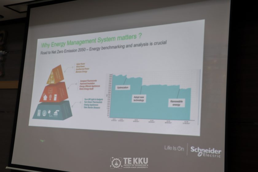 โดยคณะเทคโนโลยีได้ร่วมพูดคุยกับ บริษัท ชไนเดอร์ (ไทยแลนด์) จำกัด (Schneider Thailand Co., Ltd.) ในฐานะที่ปรึกษาด้าน EcoConsult เพื่อดำเนินการสำรวจ วิเคราะห์ และจัดการพลังงานไฟฟ้าอย่างมีประสิทธิภาพ รวมถึงวางระบบบำรุงรักษาเชิงป้องกัน (Preventive Maintenance) สำหรับอุปกรณ์ไฟฟ้าภายในอาคารเรียนและสำนักงาน เพื่อ ลดความเสี่ยงด้านอัคคีภัยและเพิ่มความปลอดภัย ทั้งในการทำงานและการจัดการเรียนการสอน