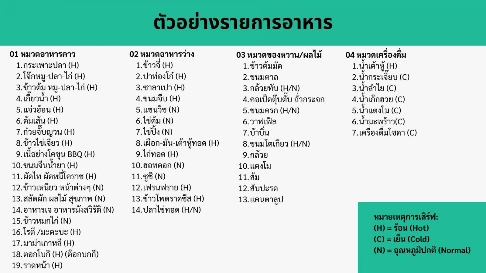 - เป็นการนำเสนออาหารเพื่อรับการตรวจคุณภาพอาหาร แบบวันให้บริการจริง