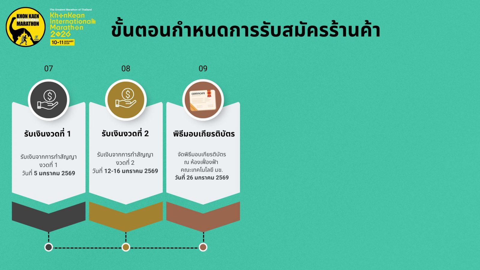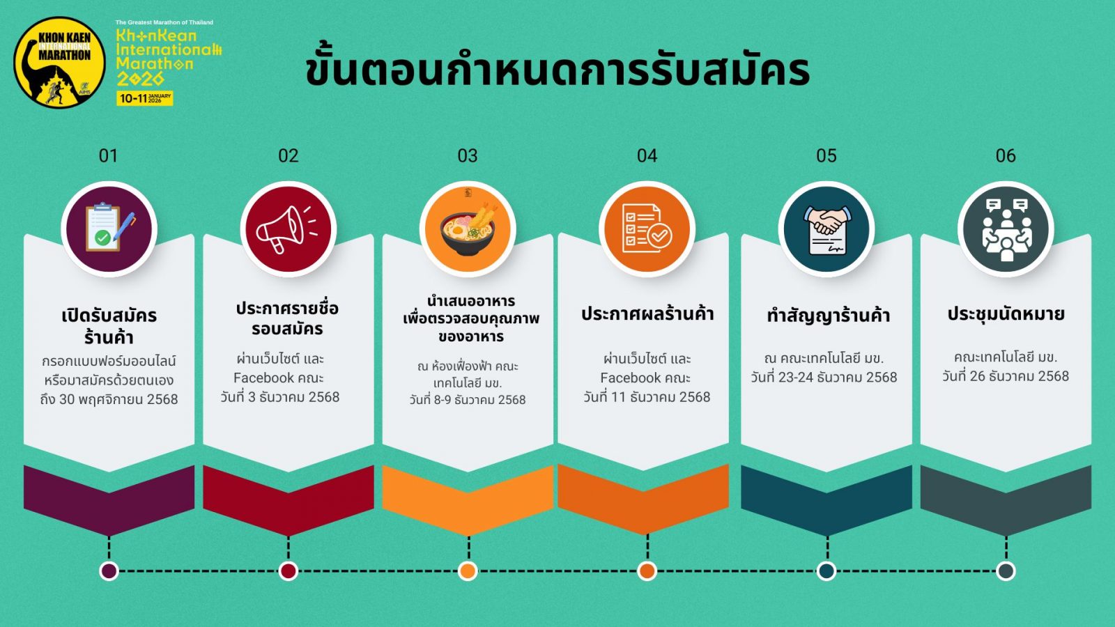 เปิดรับสมัครผู้ประกอบการร้านค้า จำหน่ายอาหาร/เครื่องดื่ม เพื่อบริการนักวิ่ง งานขอนแก่นมาราธอนนานาชาติ 2026 ตั้งแต่ วันนี้ – 30 พฤศจิกายน 2568