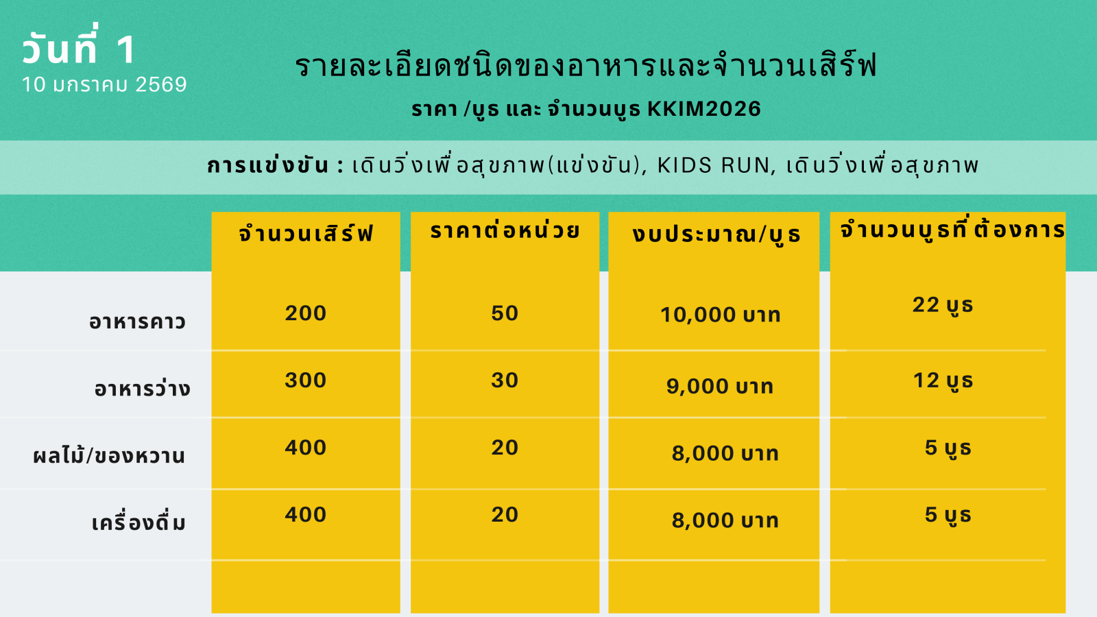 2) การจัดตั้งบูธให้บริการอาหารและเครื่องดื่ม มี 2 วัน ดังต่อไปนี้