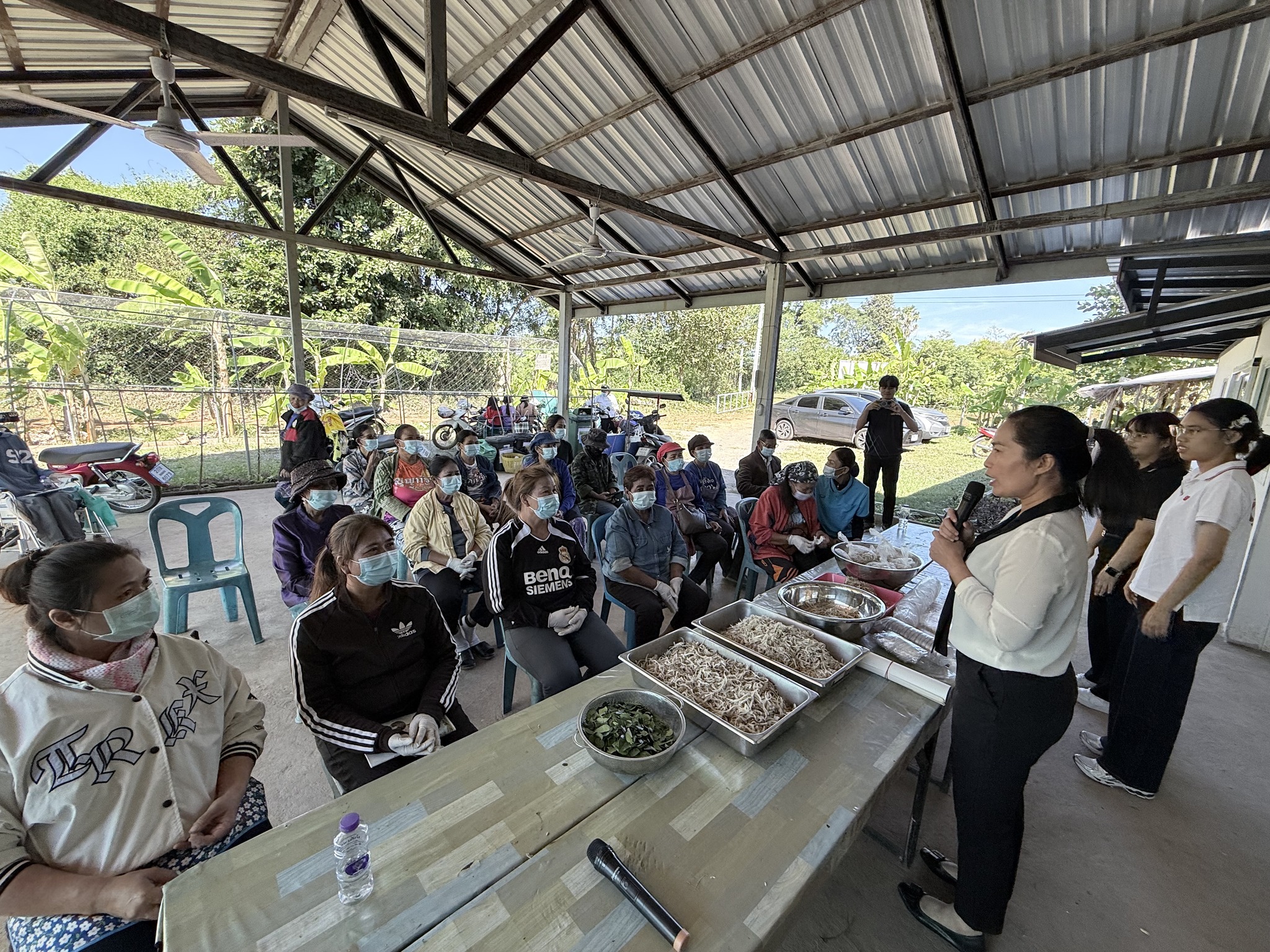 พร้อมกันนี้ ได้มีการนำเสนอ ผลิตภัณฑ์ต้นแบบ ที่พัฒนาร่วมกับชุมชน ได้แก่ น้ำพริกเห็ดนางฟ้ากรอบแซ่บ โฟมเห็ดนางฟ้า (Merengue เห็ดนางฟ้า) ซึ่งเป็นนวัตกรรมอาหารจากวัตถุดิบท้องถิ่นที่ช่วยเพิ่มโอกาสทางอาชีพและสร้างมูลค่าให้แก่ผลิตภัณฑ์ของชุมชน