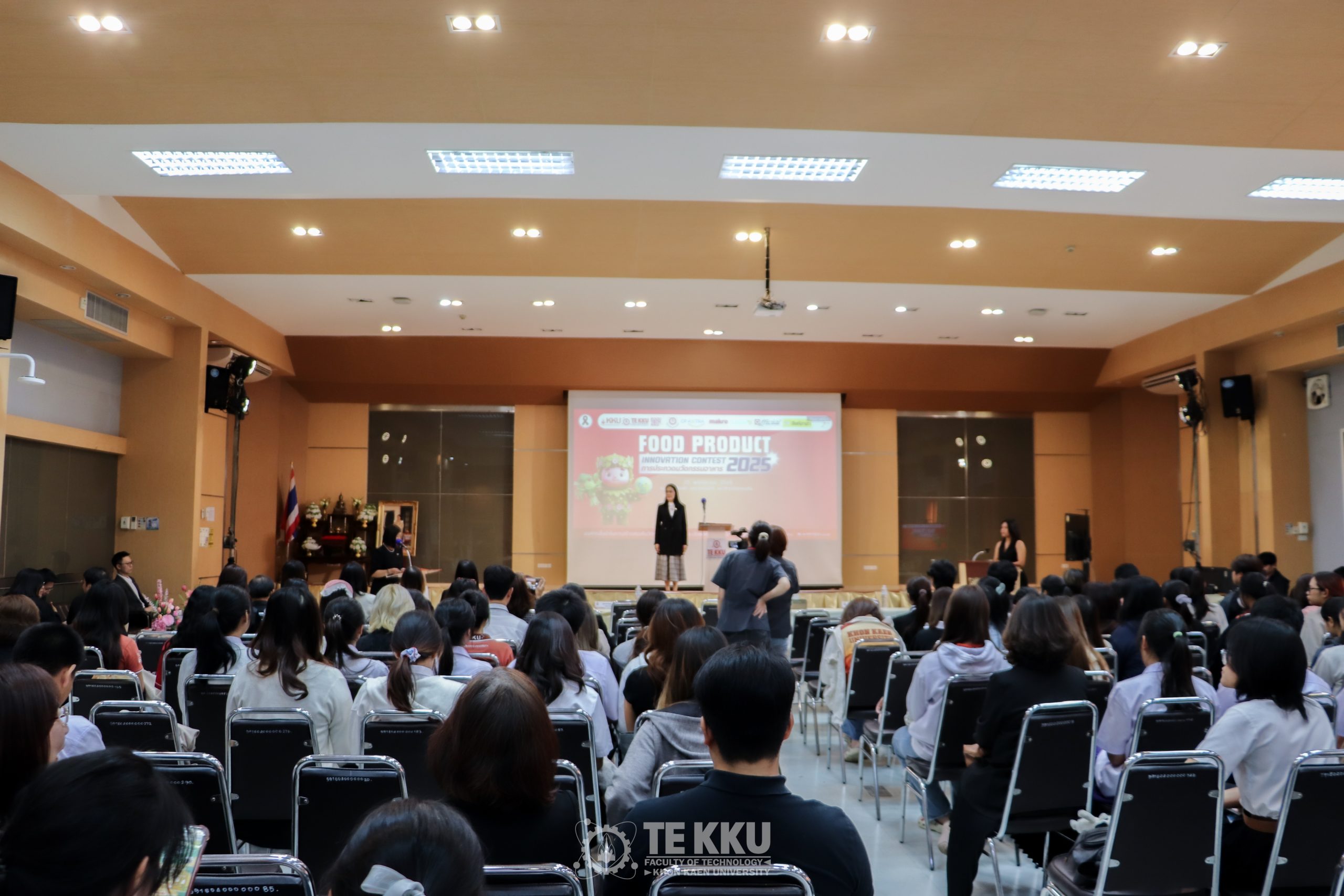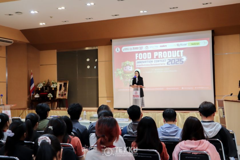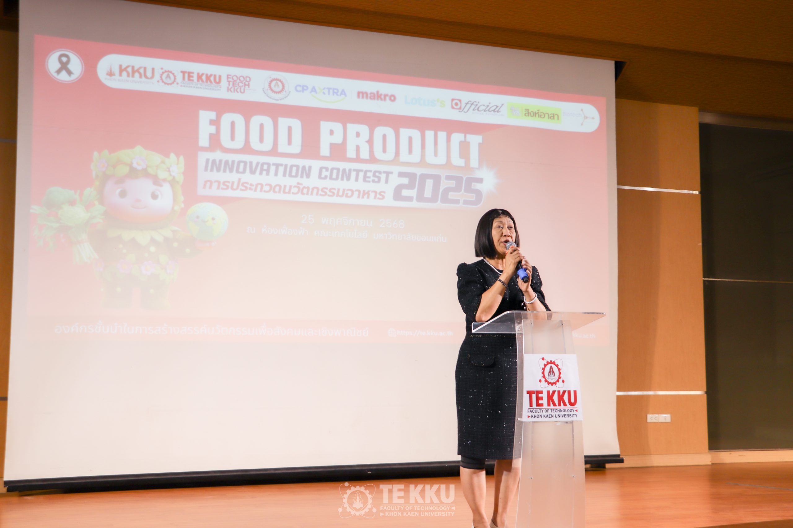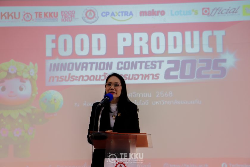 วันที่ 25 พฤศจิกายน 2568 สาขาวิชาเทคโนโลยีการอาหาร คณะเทคโนโลยี มหาวิทยาลัยขอนแก่น ได้จัดกิจกรรม “การประกวดนวัตกรรมอาหาร (Food Product Innovation Contest) ครั้งที่ 3” ณ ห้องเฟื่องฟ้า คณะเทคโนโลยี มหาวิทยาลัยขอนแก่น โดยมี ผู้ช่วยศาสตราจารย์ ดร.อารยา เชาว์เรืองฤทธิ์ คณบดีคณะเทคโนโลยี พร้อมด้วย ผศ. ดร.พิมพ์นิภา หิรัณย์สร หัวหน้าสาขาวิชาเทคโนโลยีการอาหาร คณาจารย์ บุคลากร นักศึกษา และทีมผู้เข้าแข่งขันจากทั่วประเทศเข้าร่วมอย่างคับคั่ง สะท้อนถึงความตื่นตัวของเยาวชนและนิสิตนักศึกษาที่ให้ความสนใจด้านนวัตกรรมอาหารในระดับอุดมศึกษาทั่วประเทศ