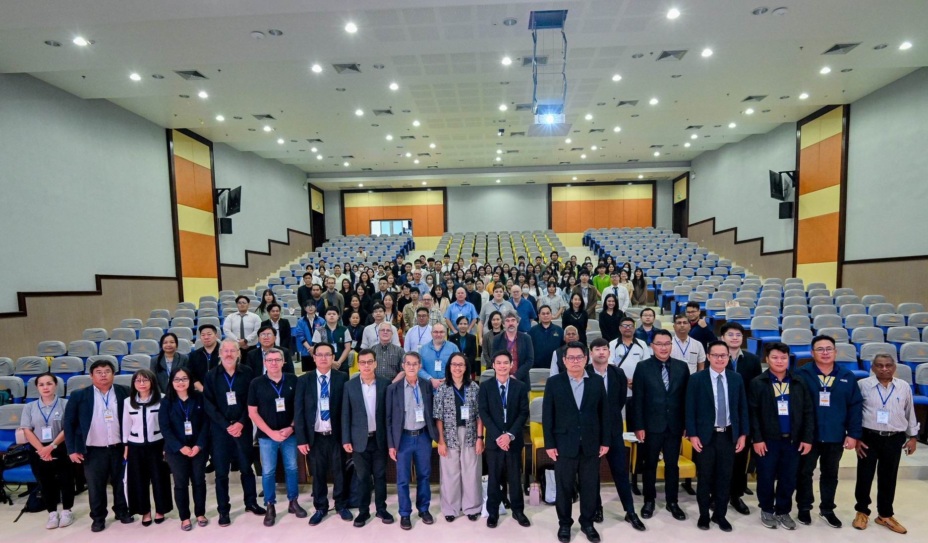 อาจารย์ ดร.พิทักษ์สิทธิ์ ดิษบรรจง ตัวแทนสาขาวิชาเทคโนโลยีธรณี มข. เข้าร่วมพิธีเปิดและรับมอบของที่ระลึกจากคณะผู้จัด ในฐานะภาคีเครือข่ายสำคัญของการประชุมฯ ทั้งนี้การประชุมจัดขึ้นระหว่างวันที่ 22-29 พฤศจิกายน 2568 ณ มหาวิทยาลัยมหาสารคาม และอุทยานธรณีโลกสตูล มีวัตถุประสงค์เพื่อส่งเสริมการเผยแพร่ผลงานวิจัยด้านบรรพชีวินวิทยา แลกเปลี่ยนองค์ความรู้ ประสบการณ์ และสร้างเครือข่ายความร่วมมือในระดับภูมิภาคและนานาชาติ โดยมีผู้แทนจาก 15 ประเทศเข้าร่วม มีผลงานนำเสนอทั้งรูปแบบการนำเสนอปากเปล่าและโปสเตอร์ รวม 50 ผลงาน กิจกรรมแบ่งเป็น 3 ส่วน คือ 1) ปฏิบัติการศึกษาธรณีวิทยาภาคสนามก่อนการประชุมหลัก 2) การประชุมหลักระหว่างวันที่ 25-26 พฤศจิกายน ณ มหาวิทยาลัยมหาสารคาม และ 3) การประชุมพิเศษด้านอุทยานธรณีและปฏิบัติการศึกษาธรณีวิทยาภาคสนามหลังการประชุมหลัก ณ อุทยานธรณีโลกสตูลและพื้นที่ข้างเคียง