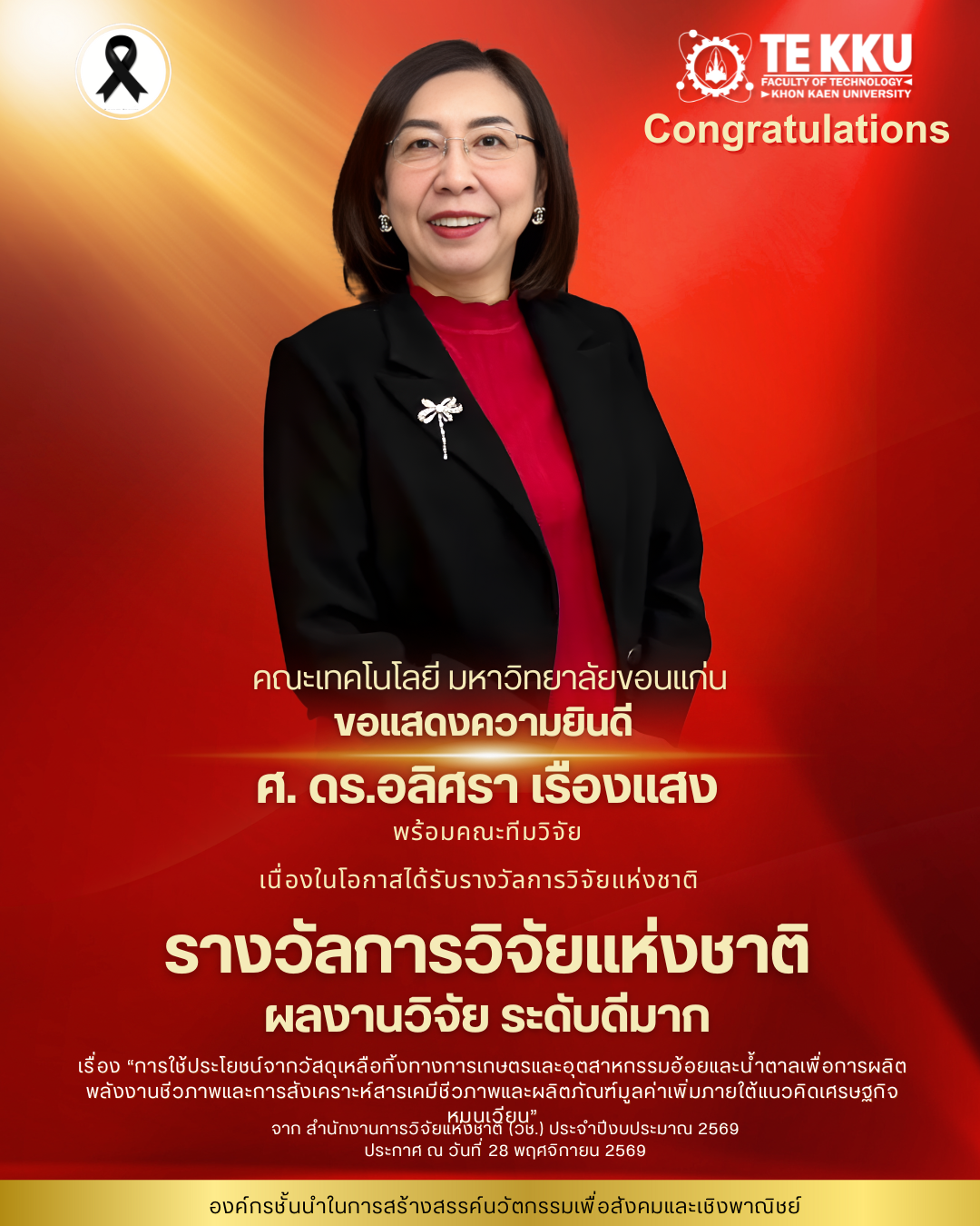 ผลงานนี้สะท้อนถึงศักยภาพด้านการวิจัยของคณะเทคโนโลยี ที่มุ่งเน้นการพัฒนาองค์ความรู้เพื่อนำไปสู่ความยั่งยืนของภาคการเกษตรและอุตสาหกรรมไทยอย่างแท้จริง