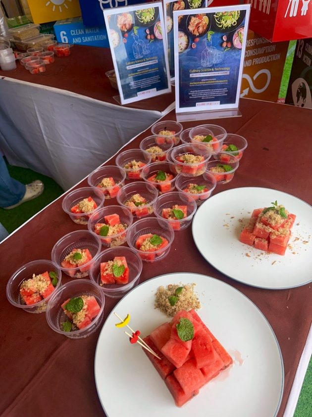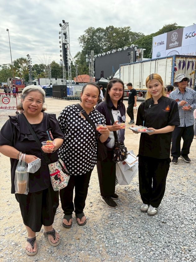 บรรยากาศงานเต็มไปด้วยประชาชนและนักท่องเที่ยวจำนวนมาก โดยทีมคณะเทคโนโลยีได้จัด สาธิตการทำอาหารไทยเมนู “แตงโมปลาแห้ง” และแจกให้ผู้ร่วมงานได้ลองชิมรสชาติอาหารไทยดั้งเดิมอย่างใกล้ชิด เมนูนี้สะท้อนอัตลักษณ์ Thai Soft Power โดยมีการพัฒนานวัตกรรมด้านศาสตร์การประกอบอาหารและวัฒนธรรมอาหารไทย และยังเชื่อมโยงกับวิสัยทัศน์ของคณะเทคโนโลยีในการก้าวสู่การเป็น “องค์กรชั้นนำในการสร้างสรรค์นวัตกรรมเพื่อสังคมและเชิงพาณิชย์”