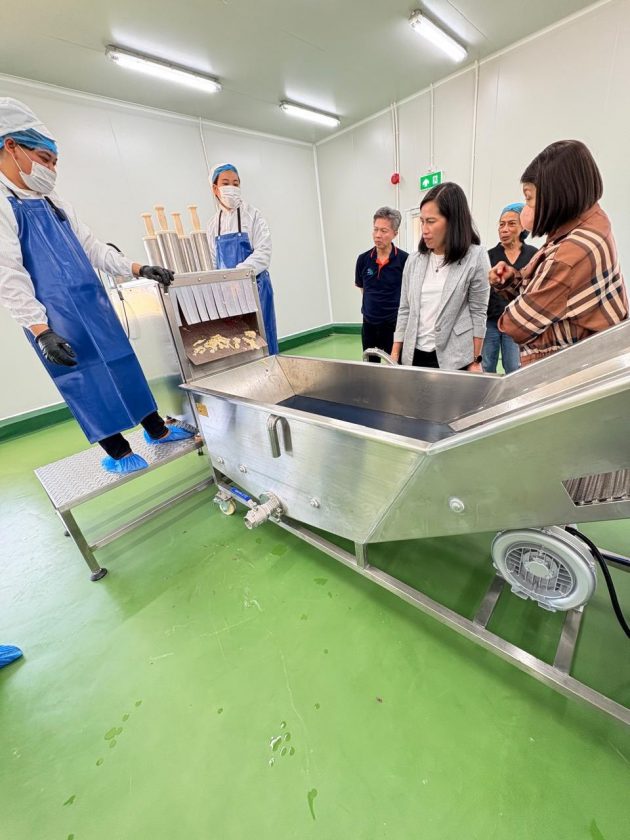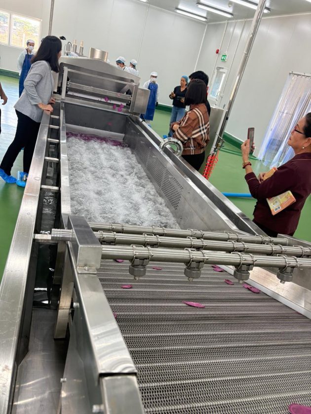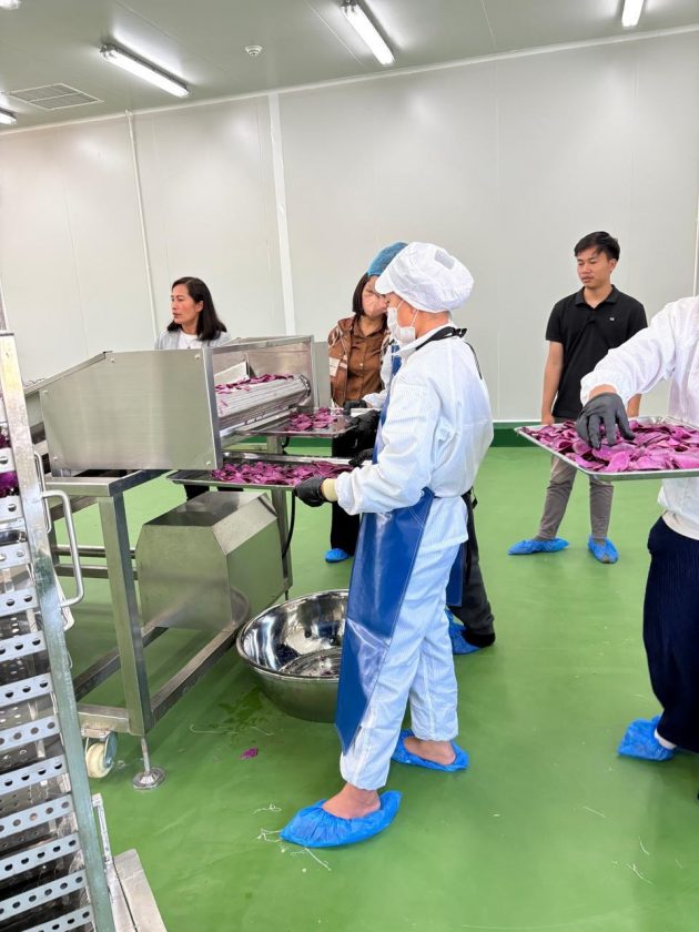ผู้ช่วยศาสตราจารย์ ดร.อารยา เชาว์เรืองฤทธิ์ คณบดีคณะเทคโนโลยี พร้อมด้วย รองศาสตราจารย์ ดร.จันทิมา ภูงามเงิน นักวิจัยผู้พัฒนาผลิตภัณฑ์มันม่วงอบกรอบ ได้ลงพื้นที่ตรวจสอบระบบเครื่องจักรภายในโรงงานแปรรูปผลไม้อบกรอบ SUPAWAT Group Sole Co., Ltd. เขตไซท้าย นครหลวงเวียงจันทน์ สาธารณรัฐประชาธิปไตยประชาชนลาว นอกจากนี้คณะนักวิจัยยังได้ให้คำแนะนำด้านการปรับปรุงกระบวนการผลิต เพื่อเพิ่มประสิทธิภาพและความสม่ำเสมอของผลิตภัณฑ์ ตลอดจนยกระดับมาตรฐานการผลิตให้พร้อมขยายสู่ตลาดอุตสาหกรรมอาหารในภูมิภาค