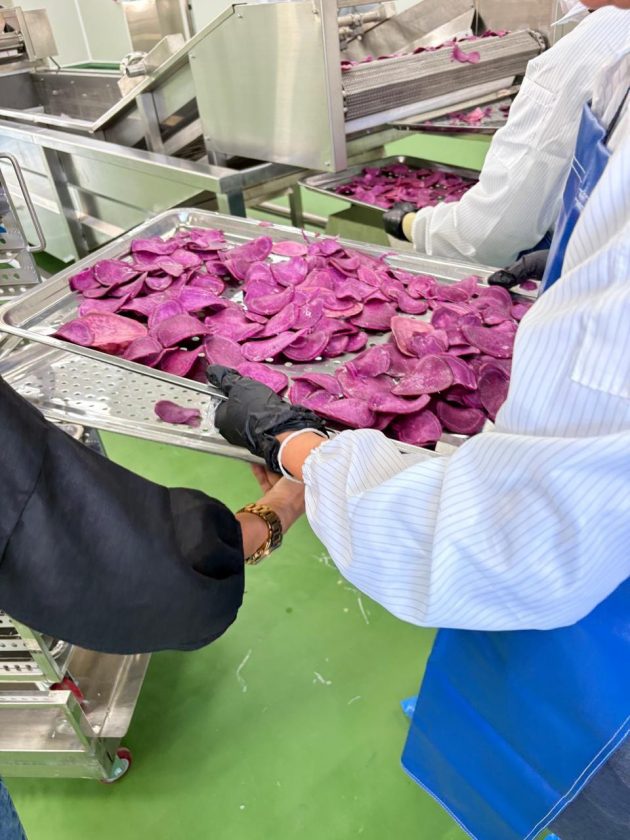 รองศาสตราจารย์ ดร.จันทิมา ภูงามเงิน รองคณบดีฝ่ายยุทธศาสตร์และสื่อสารองค์กร หลักสูตรสาขาวิชาเทคโนโลยีการอาหาร กล่าวว่า ความร่วมมือกับบริษัทเอกชนครั้งนี้ ตนได้รับมอบหมายจากท่านคณบดีคณะเทคโนโลยี ท่านคณบดีจึงส่งโจทย์มาให้อาจารย์ผู้เชี่ยวชาญด้านนวัตกรรมและเทคโนโลยีอาหารรับผิดชอบ เพื่อขอความช่วยเหลือพัฒนาศักยภาพการผลิตมันม่วงอบกรอบ เนื่องจากเห็นว่าลาวมีวัตถุดิบทางการเกษตรอุดมสมบูรณ์ จึงต้องการแปรรูปสินค้าเกษตรเพื่อเพิ่ม โดยเลือกใช้เทคโนโลยี Vacuum Fried ซึ่งแตกต่างจากการทอดปกติที่ใช้อุณหภูมิ 160-180 องศาเซลเซียส เทคโนโลยี Vacuum Fried นี้ใช้หลักการดึงบรรยากาศให้เป็นสุญญากาศทำให้จุดเดือดของน้ำมันลดลง จึงทอดที่อุณหภูมิต่ำเพียง 60-80 องศาเซลเซียส ส่งผลให้คงคุณค่าสารอาหาร และยังใช้น้ำมันน้อย คงสี กลิ่น รส ใกล้เคียงวัตถุดิบเดิม