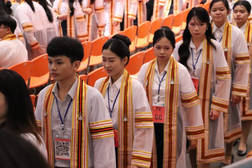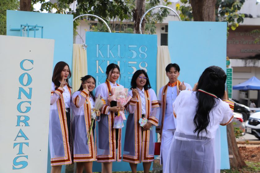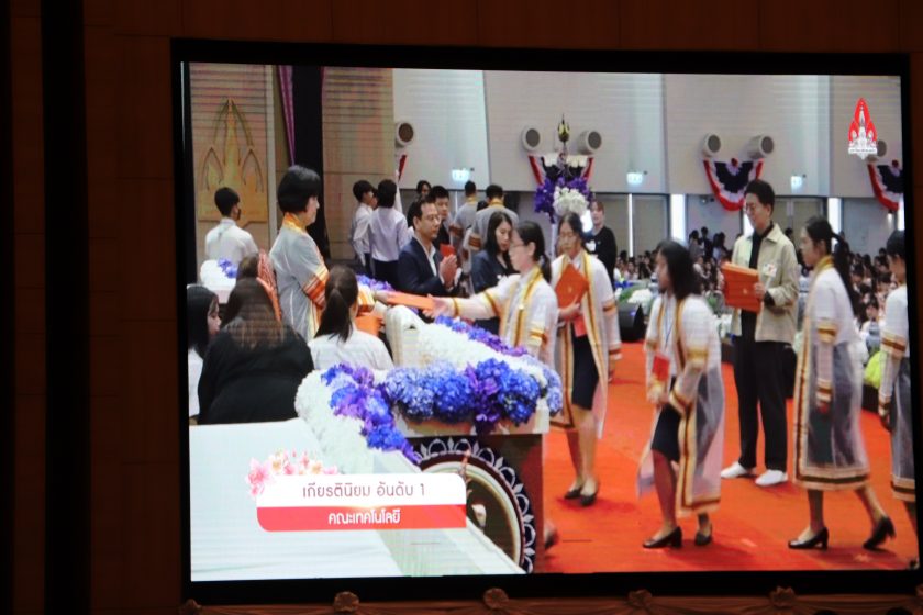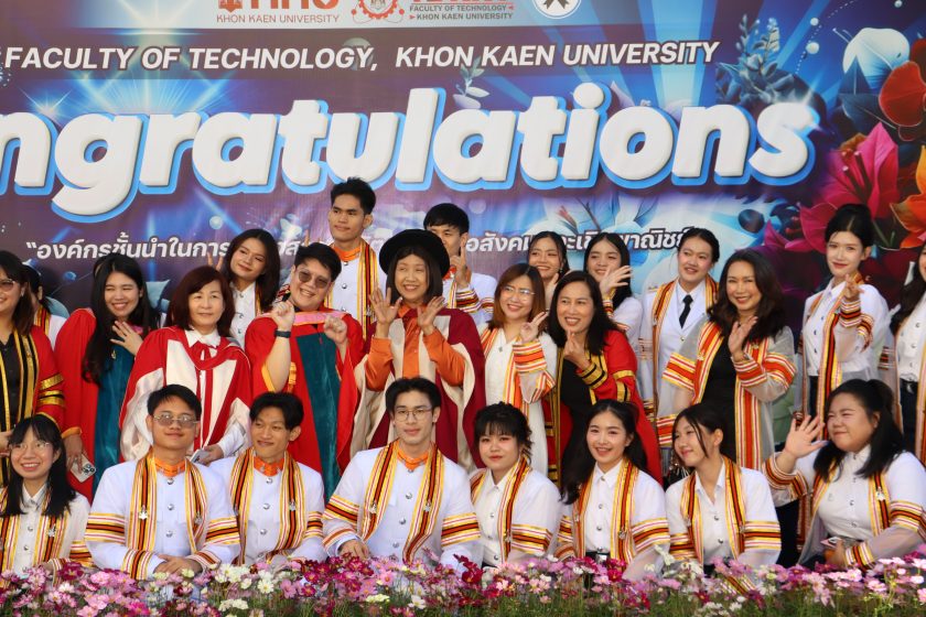 เมื่อวันพฤหัสบดีที่ 18 ธันวาคม พ.ศ.2568 โดย ผศ.ดร.อารยา เชาว์เรืองฤทธิ์ คณบดี คณะเทคโนโลยี มข. พร้อมด้วย คณะผู้บริหาร คณาจารย์ และ บุคลากรคณะเทคโนโลยี มข. ได้นำ บัณฑิต มหาบัณฑิต ดุษฏีบันฑิต เข้าร่วมรับพระราชทานปริญญาบัตร ประจำปี 2568 ณ ศูนย์ประชุมอเนกประสงค์กาญจนาภิเษก มหาวิทยาลัยขอนแก่น และร่วมถ่ายภาพหมู่คณะ โดยมีจำนวนทั้ง 207 ท่าน แบ่งเป็น บัณฑิต 196 ท่าน มหาบัณฑิต 9 ท่าน ดุษฏีบันฑิต 2 ท่าน ทางคณะเทคโนโลยี มข. ขอแสดงความยินดีกับความสำเร็จในครั้งนี้ ขอให้นำความรู้นำไปพัฒนาช่วยเหลือสังคมในศาสตร์ของท่าน และได้มีกำหนดจัดกิจกรรมชื่นชมยินดีแก่นักศึกษาคณะเทคโนโลยี ผู้สำเร็จการศึกษาในปีนี้ ซึ่งมีทั้งดุษฎีบัณฑิต มหาบัณฑิต และบัณฑิตผู้สำเร็จการศึกษา พร้อมเรียนเชิญคณาจารย์ บัณฑิต มหาบัณฑิต และดุษฎีบัณฑิตทุกท่านถ่ายภาพร่วมกัน บรรยากาศเป็นไปด้วยความอบอุ่น ชื่นชม ยินดี ซึ่งได้สอดคล้องพันธกิจหลักที่สำคัญของคณะเทคโนโลยี พันธกิจหลัก คือ การผลิตบัณฑิตที่มีศักยภาพระดับสากล