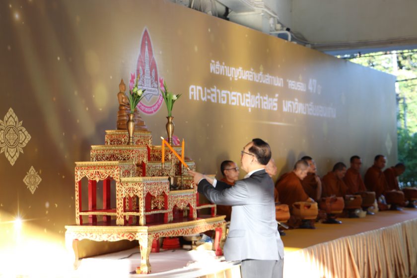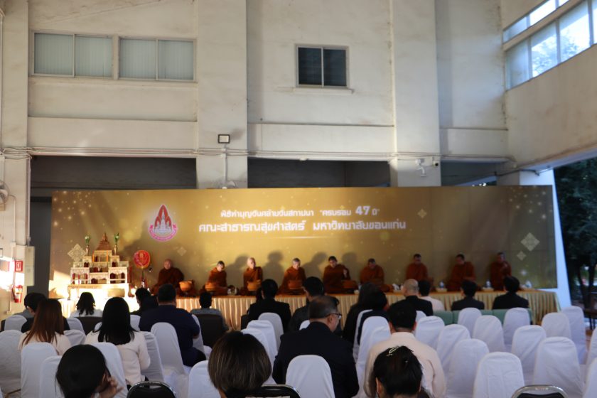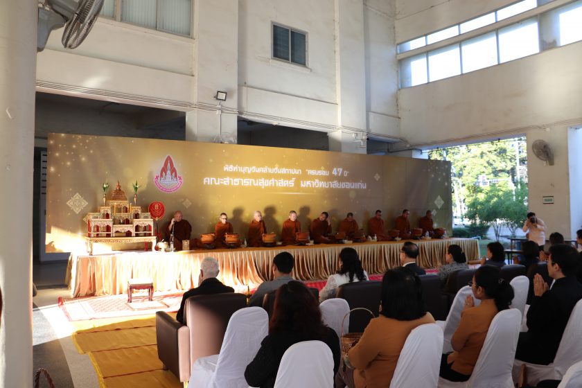 ครบรอบ 47 ปี คณะสาธารณสุขศาสตร์ มข. ในการนี้ได้รับเกียรติจาก รองศาสตราจารย์ นายแพทย์ชาญชัย พานทองวิริยะกุล อธิการบดี มข. ประธานในงาน ประธานฝ่ายสงฆ์โดย หลวงปู่ยูวิน ภูริปัญโญ และพระภิกษุสงฆ์ รวมจำนวน 9 รูป จากวัดป่าสว่างพร บ้านหนองตะนา ต.เขาสวนกวางฃ อ.เขาสวนกวาง จ.ขอนแก่น ออกเดินรับบิณฑบาต