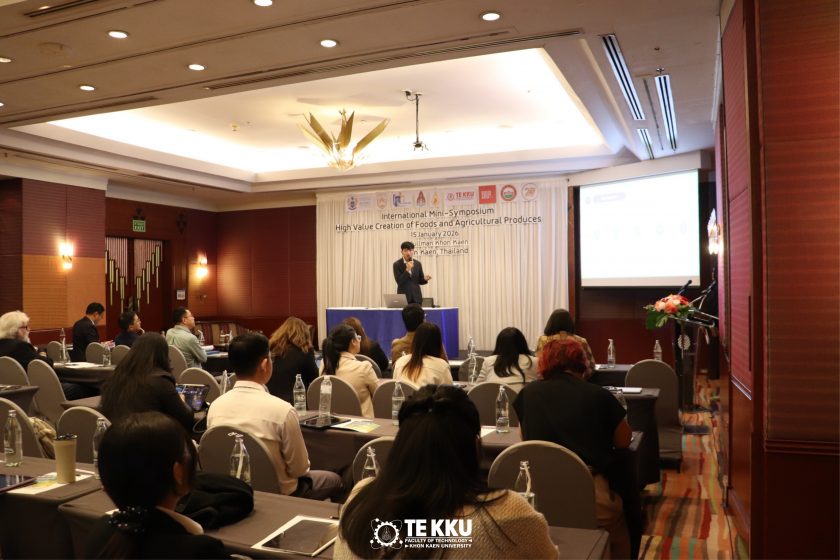คณะเทคโนโลยี มหาวิทยาลัยขอนแก่น ร่วมกับมหาวิทยาลัยแม่ฟ้าหลวง ได้จัดการประชุมสัมมนาวิชาการระดับนานาชาติ “International Mini-Symposium High Value Creation of Foods and Agricultural Produces” ภายใต้กรอบโครงการ Reinventing University 2568 เมื่อวันที่ 15 มกราคม 2569 ระหว่างเวลา 08.30 – 16.30 น. เพื่อเป็นเวทีสำคัญในการแลกเปลี่ยนองค์ความรู้และผลงานวิจัยด้านการสร้างมูลค่าเพิ่มของผลิตภัณฑ์อาหารและผลผลิตทางการเกษตรในระดับนานาชาติ