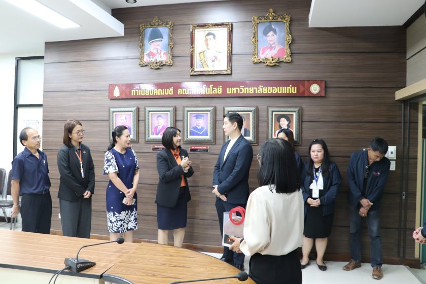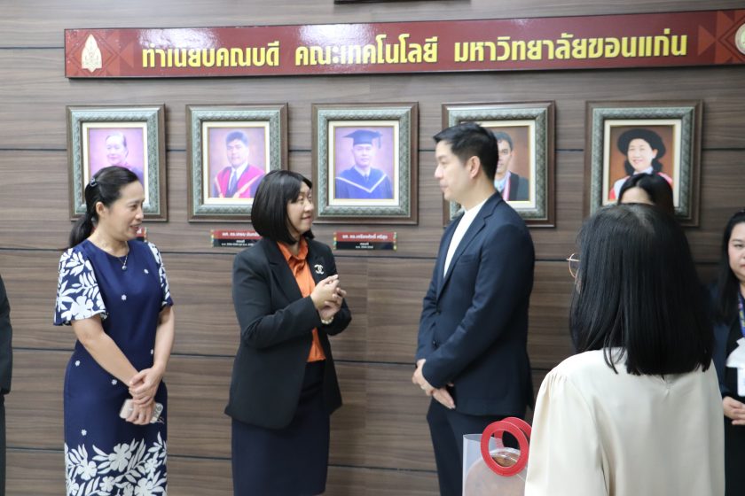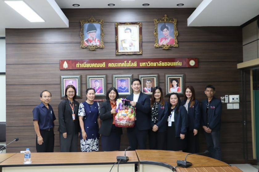 วันอังคารที่ 27 มกราคม พ.ศ.2569 เวลา 11.15 น. โดย ผศ.ดร.อารยา เชาว์เรืองฤทธิ์ คณบดีคณะเทคโนโลยี มข. พร้อมด้วย รศ.ดร.วิมลทิพย์ สิงห์เถื่อน รองคณบดีฝ่ายการศึกษา ดิจิทัลและกิจการนักศึกษา รศ.ดร.จันทิมา ภูงามเงิน รองคณบดีฝ่ายยุทธศาสตร์และสื่อสารองค์กร พร้อมด้วยคณะผู้บริหารคณะเทคโนโลยี มข. ได้ให้การต้อน ผศ.ดร.ทพ.อชิรวุธ สุพรรณเภสัช คณบดีคณะทันตแพทยศาสตร์ มข. และคณะผู้บริหารคณะทันตแพทยศาสตร์ มข. เนื่องในวาระโอกาสสวัสดีปีใหม่ ปี 2569