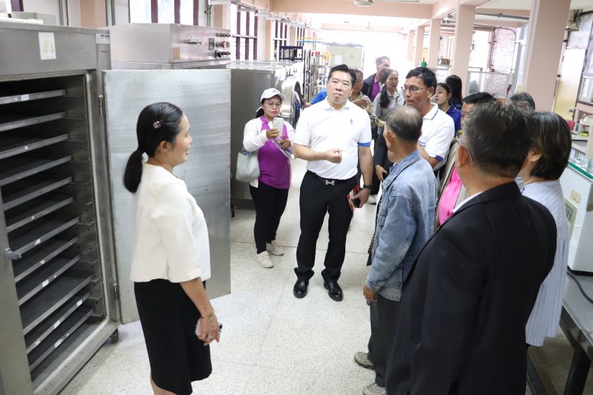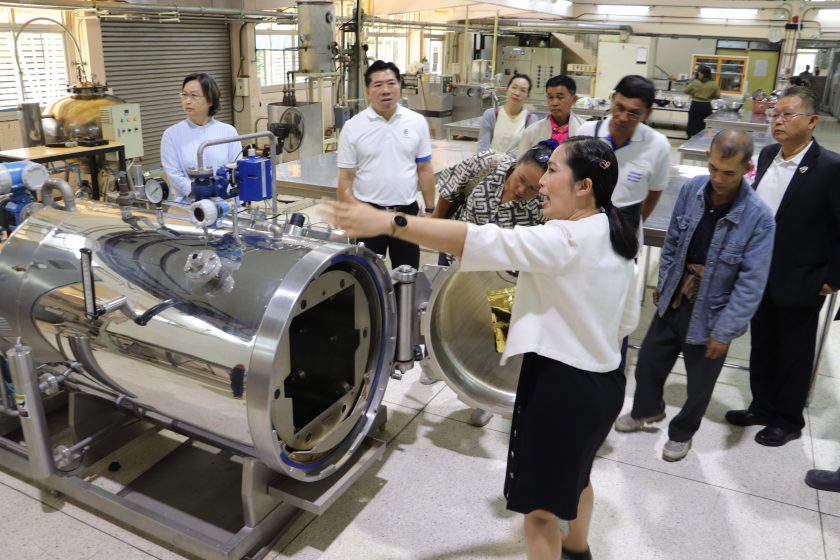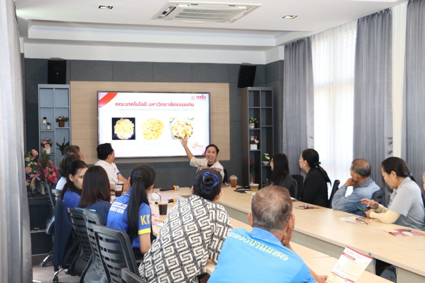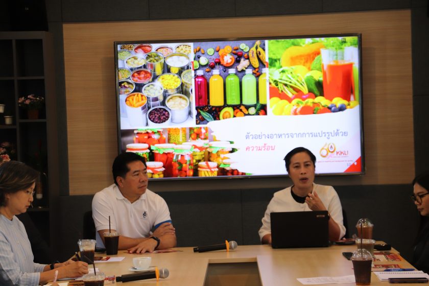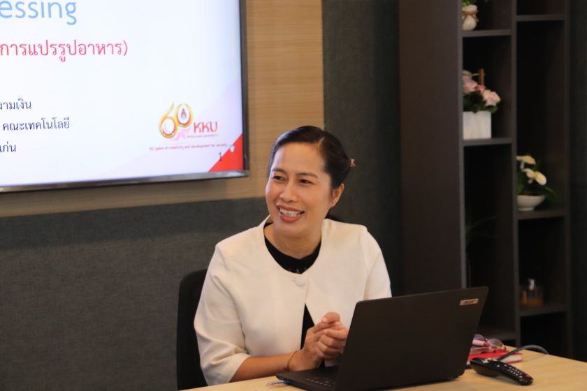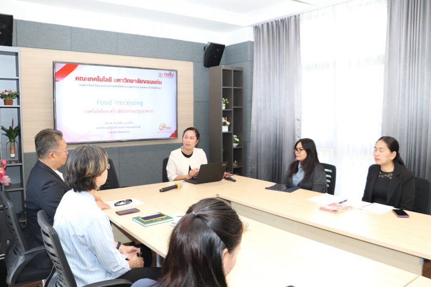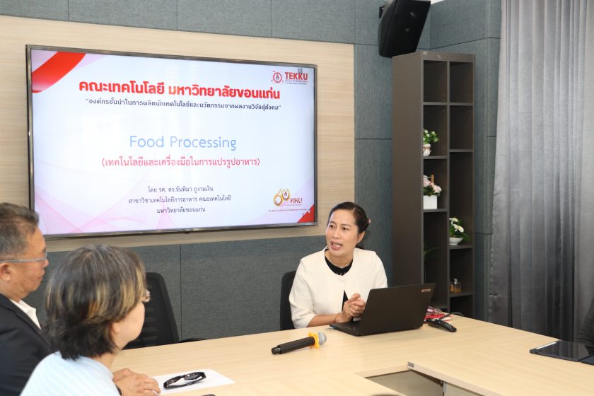 ในการนี้ รองศาสตราจารย์ ดร.จันทิมา ภูงามเงิน รองคณบดีฝ่ายยุทธศาสตร์และสื่อสารองค์กร คณะเทคโนโลยี มข. ได้บรรยายและนำเสนอ “เทคโนโลยีและเครื่องมือในการแปรรูปอาหาร” ทางด้านวิศวกรรมอาหาร พร้อมทั้งนำคณะผู้เข้าร่วมประชุมเยี่ยมชมเครื่องมือในการแปรรูปอาหารประเภทต่างๆ ภายในโรงแปรรูปอาหารของคณะเทคโนโลยี มข.