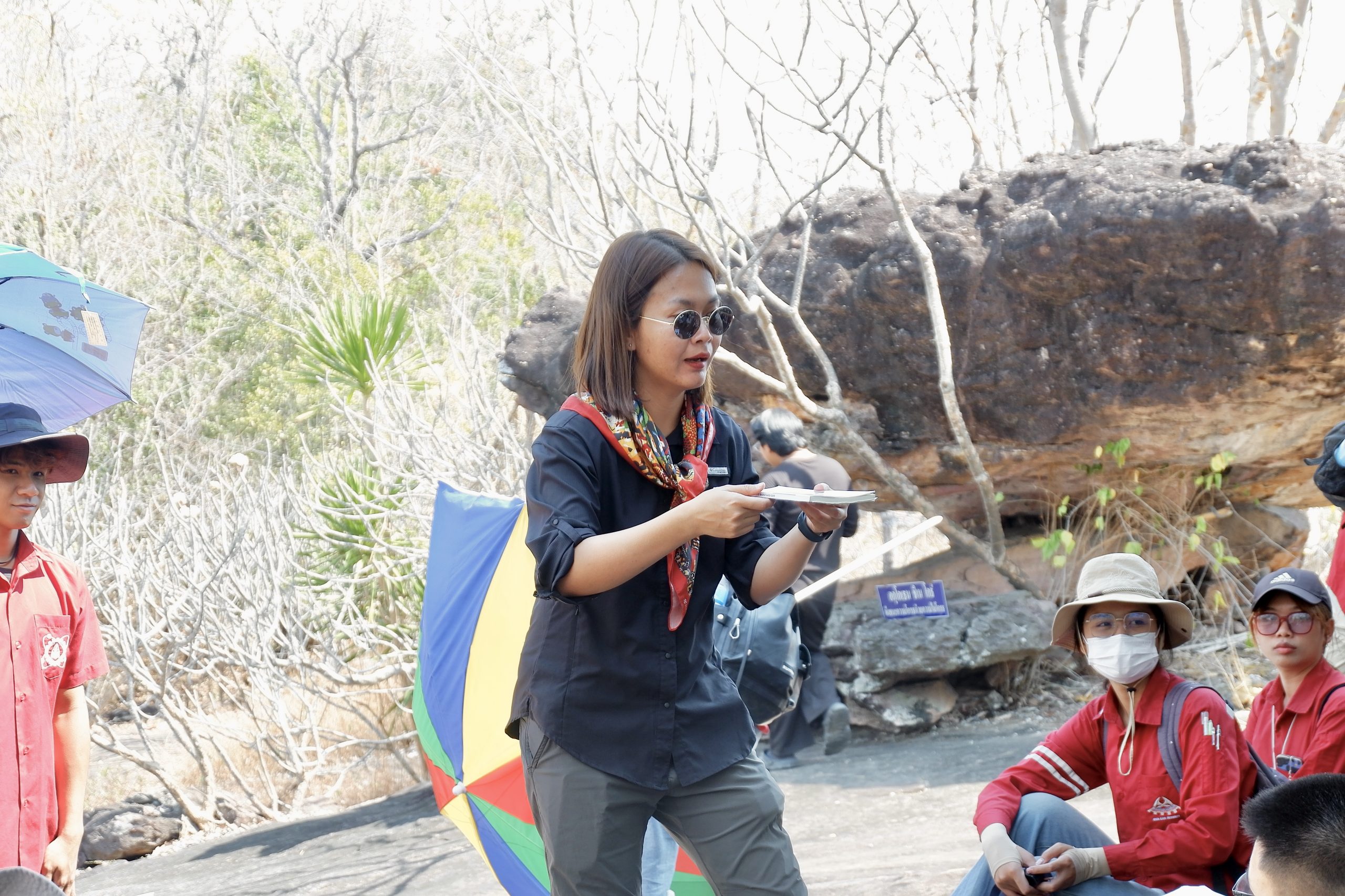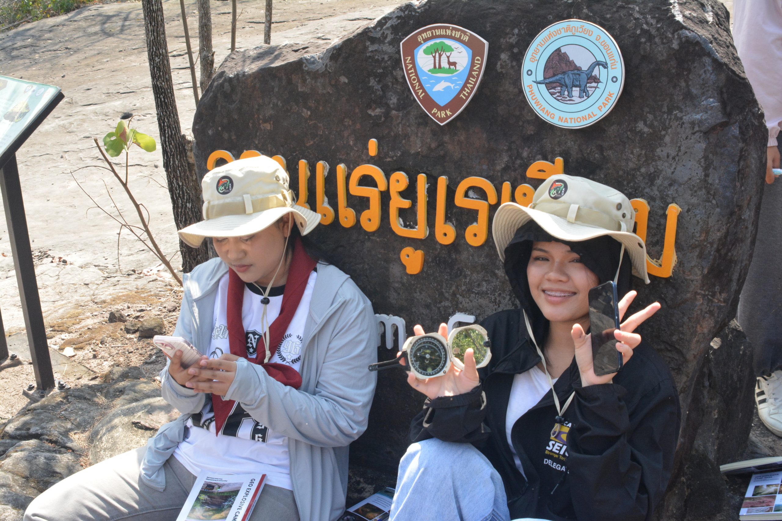 เมื่อวันที่ 14 กุมภาพันธ์ 2569 ผู้เข้าร่วมค่ายได้ลงพื้นที่ศึกษาธรณีวิทยาภาคสนาม ณ อุทยานแห่งชาติภูเวียง และ อุทยานธรณีขอนแก่น เพื่อเรียนรู้ลักษณะหินทรายของกลุ่มหินโคราช แหล่งขุดค้นซากดึกดำบรรพ์ไดโนเสาร์ ภูมิประเทศและภูมิลักษณ์หินทราย การระบุตำแหน่งบนแผนที่ ลานยูเรเนียม ตลอดจนศึกษากระบวนการผลิตเกลือสินเธาว์ของชุมชนบ้านบ่อ โดยได้รับการสนับสนุนสถานที่และวิทยากรจากเครือข่ายท้องถิ่นและหน่วยงานด้านธรณีวิทยา