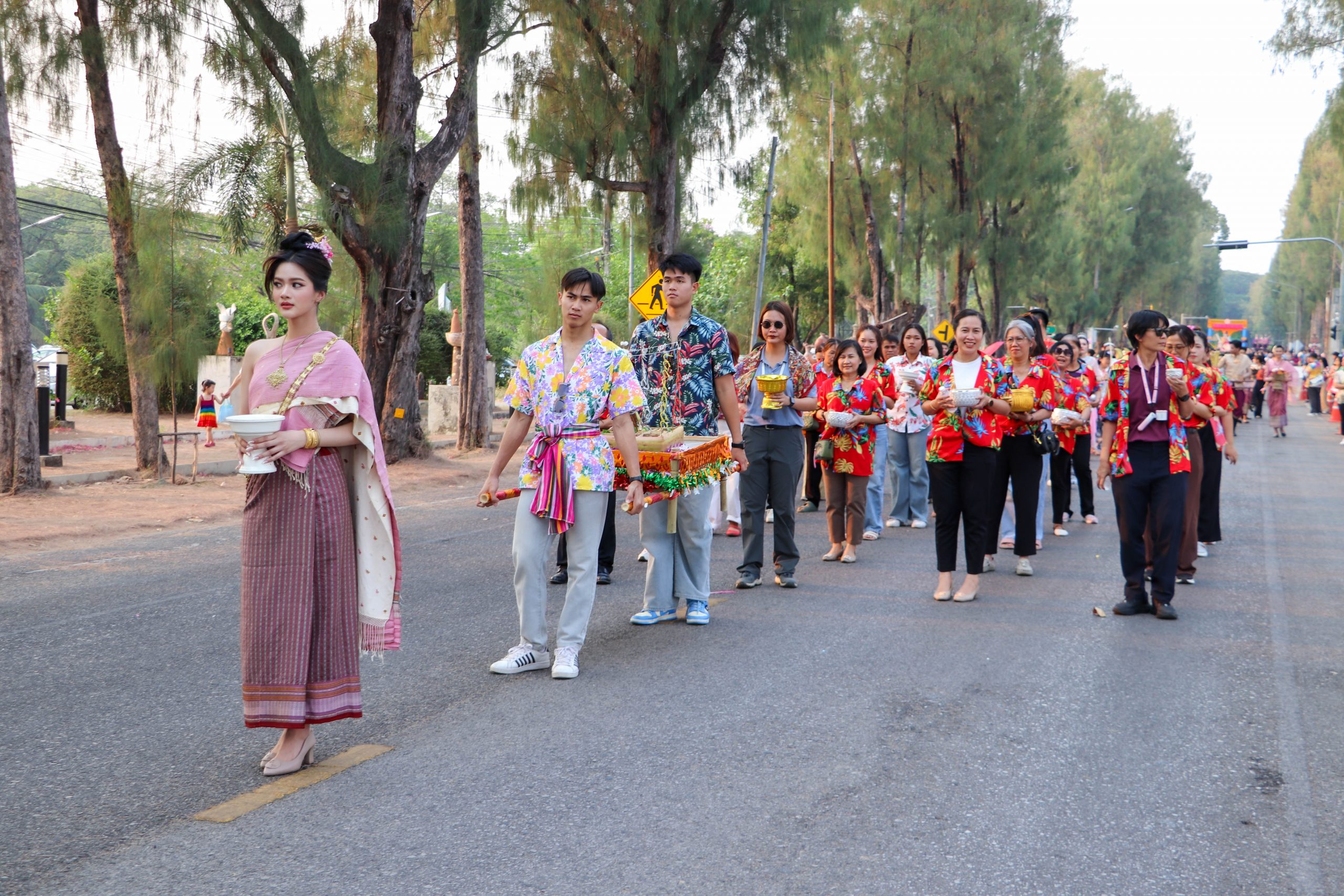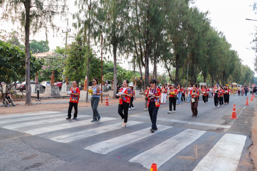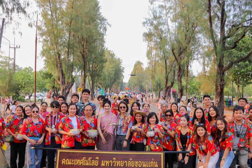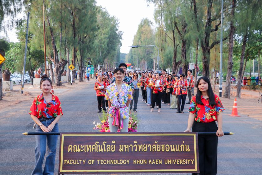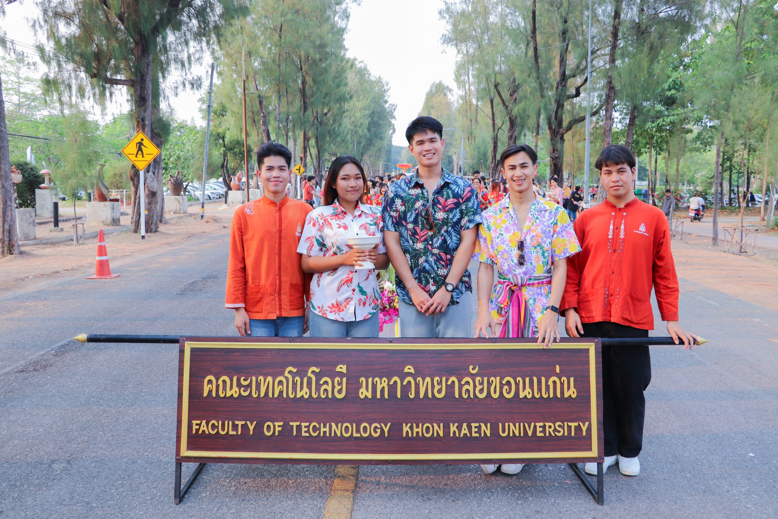 เมื่อวันที่ 8 เมษายน พ.ศ. 2569 คณะเทคโนโลยี มหาวิทยาลัยขอนแก่น ส่งผู้บริหาร บุคลากร และนักศึกษาเข้าร่วมเดินขบวนแห่ในกิจกรรม “บุญเดือน 5 แห่พุทธบูชา สมมาอาวุโส ประจำปี 2569” โดย ผู้ช่วยศาสตราจารย์ ดร.อารยา เชาว์เรืองฤทธิ์ คณบดีคณะเทคโนโลยี มอบหมายให้ รองศาสตราจารย์ ดร.จันทิมา ภูงามเงิน รองคณบดีฝ่ายยุทธศาสตร์และสื่อสารองค์กร รองศาสตราจารย์ ดร.วิมลทิพย์ สิงห์เถื่อน รองคณบดีฝ่ายการศึกษา ดิจิทัล และกิจการนักศึกษา นายสมคิด พลตื้อ ผู้อำนวยการกองบริหารงานคณะเทคโนโลยี พร้อมด้วยบุคลากรและนักศึกษาของคณะ เข้าร่วมเดินขบวนแห่อย่างพร้อมเพรียงในชุดผ้าพื้นเมืองอีสานและเสื้อลายดอกอันงดงาม ณ คุ้มศิลปวัฒนธรรม มหาวิทยาลัยขอนแก่น