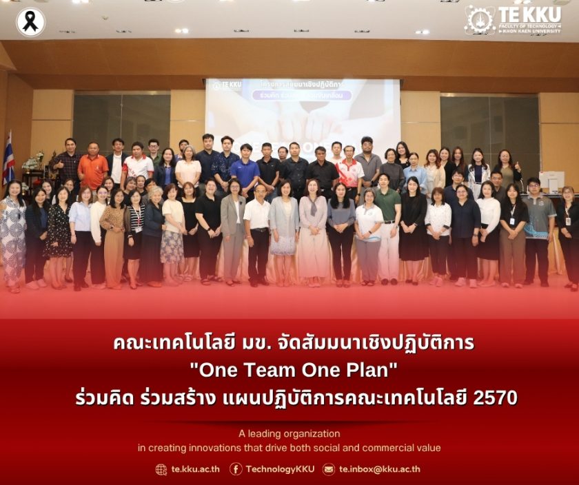 เมื่อวันพฤหัสบดีที่ 30 เมษายน พ.ศ. 2569 คณะเทคโนโลยี มหาวิทยาลัยขอนแก่น จัดโครงการสัมมนาเชิงปฏิบัติการ “การจัดทำแผนปฏิบัติการ คณะเทคโนโลยี ประจำปีงบประมาณ พ.ศ. 2570” ภายใต้แนวคิด One Team One Plan : ร่วมคิด ร่วมสร้าง แผนปฏิบัติการคณะเทคโนโลยี 2570 โดยมี ผู้ช่วยศาสตราจารย์ ดร.อารยา เชาว์เรืองฤทธิ์ คณบดีคณะเทคโนโลยี เป็นประธานกล่าวเปิดงาน พร้อมด้วยผู้บริหาร หัวหน้าสาขาวิชา คณาจารย์ และบุคลากรคณะเทคโนโลยีเข้าร่วมอย่างพร้อมเพรียง ณ ห้องเฟื่องฟ้า คณะเทคโนโลยี มหาวิทยาลัยขอนแก่น ตั้งแต่เวลา 08.30–16.30 น.