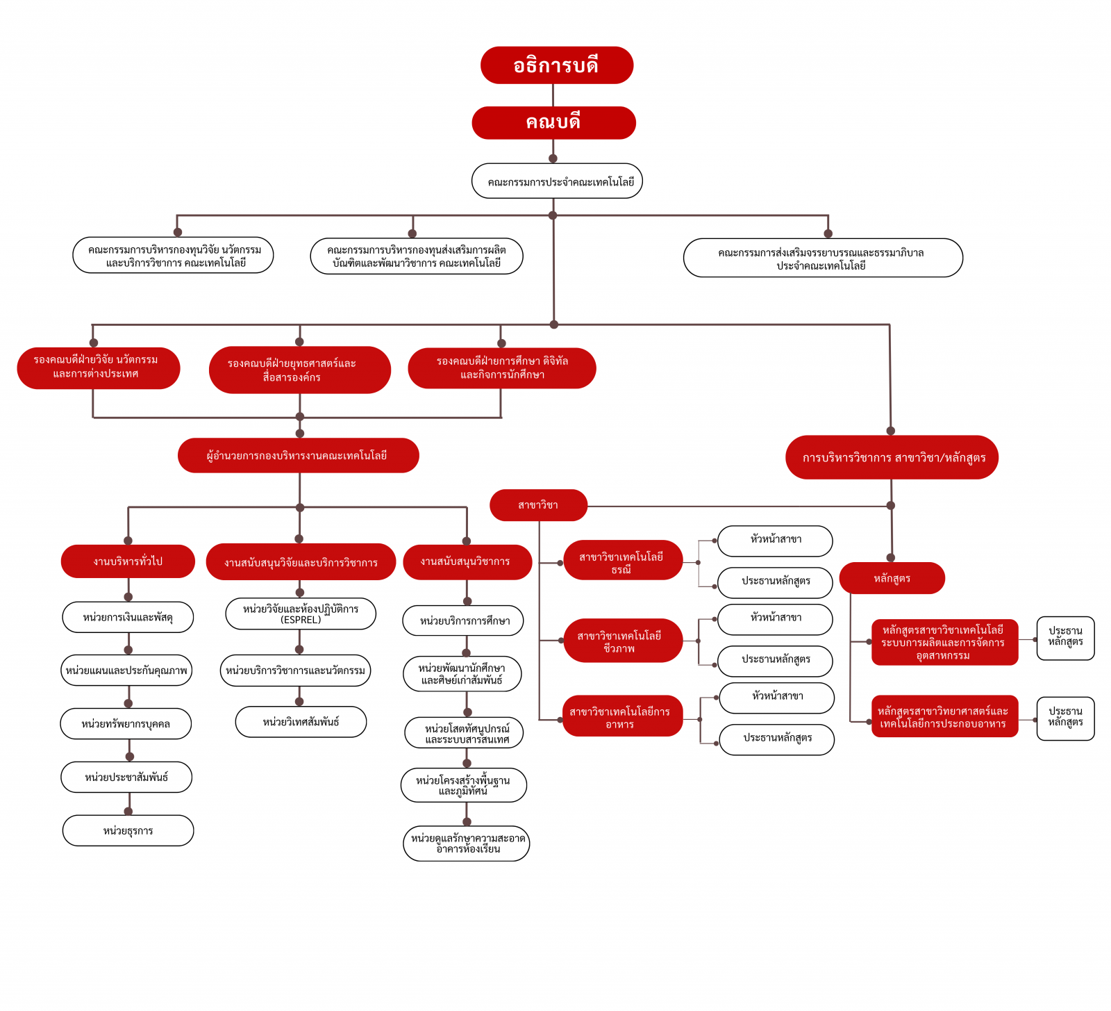 โครงสร้างองค์กรที่มีประสิทธิภาพ ออกแบบให้เกิดการบูรณาการอย่างมีระบบระหว่างส่วนสนับสนุนและส่วนวิชาการ แบ่งออกเป็น 2 ส่วนหลัก ดังนี้